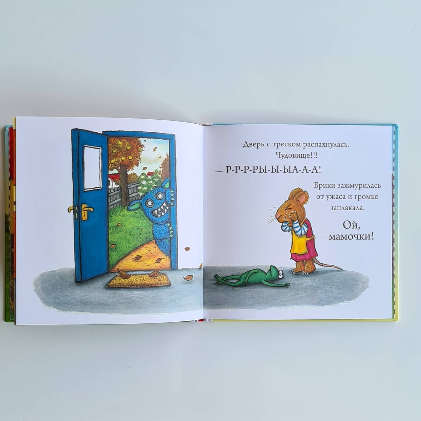 Смешная история о том, что надо разобраться, прежде чем пугаться, а ещё о том, что вместе всегда веселее! Брики преспокойно пекла кексы, как вдруг в дом ворвалось ужасное чудовище. Бедной Брики стало страшно, так страшно… пока она не догадалась, что это переодетый Чик!