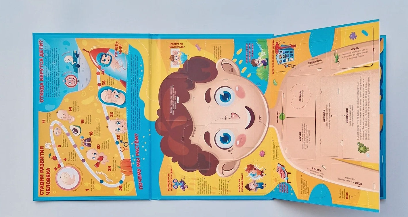 - Открывая секретные створки, ребенок сможет заглянуть внутрь своего тела!