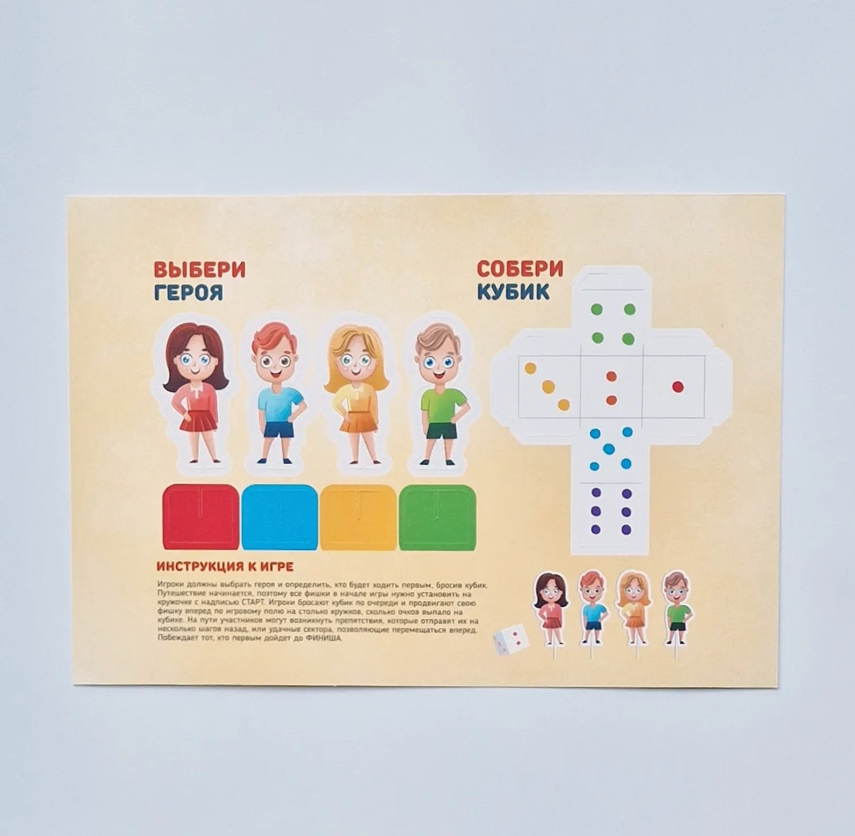 На обратной стороне располагается познавательная игра- бродилка. Кубик и фигурки для игры прилагаются в комплекте.