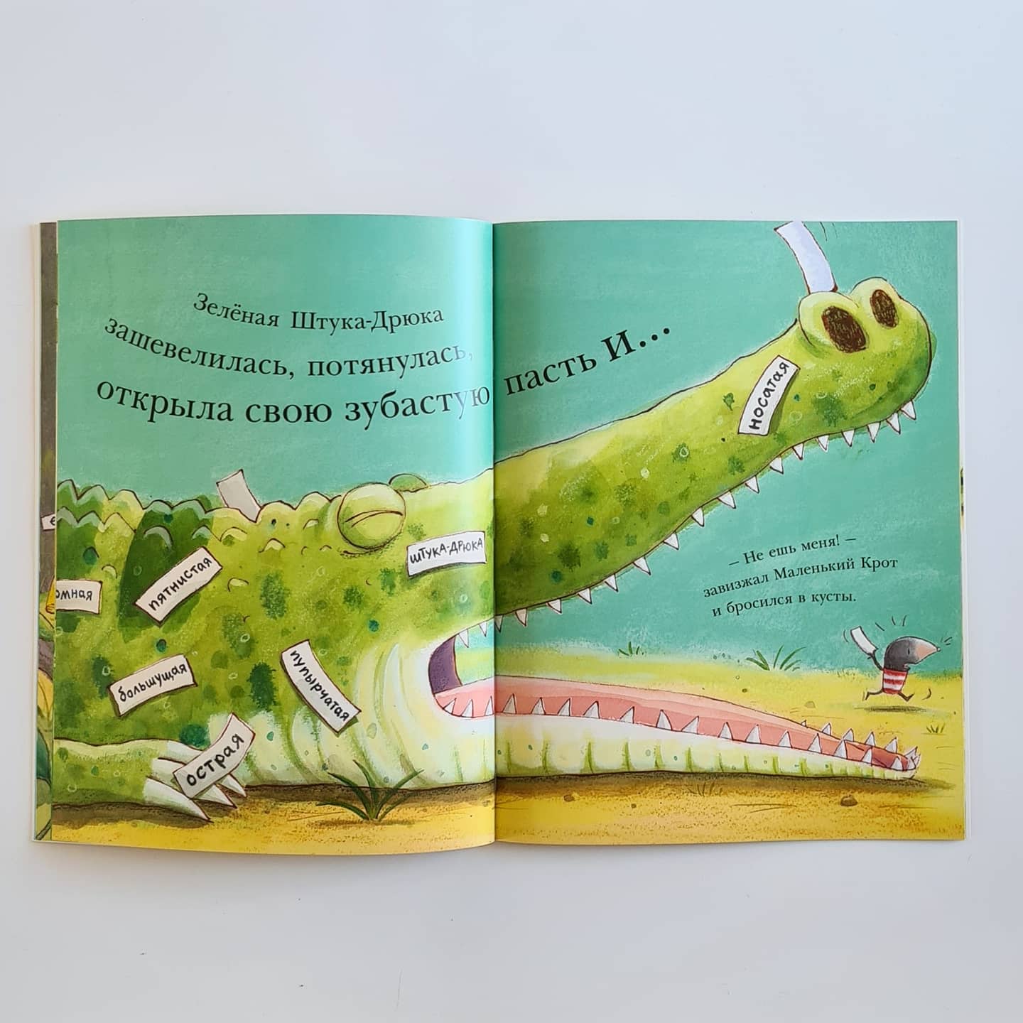 Жил-был Маленький Крот, который очень любил находить правильные слова для всего на свете. А чтобы эти слова никуда не терялись, он записывал их на листочках бумаги и расклеивал по лесу. Маленький Крот был уверен, что подписал уже всё вокруг, но однажды он увидел на полянке совершенно новую и непонятную зелёную штуковину, которую тут же назвал Штукой-дрюкой. На первый взгляд она показалась ему страшной, некрасивой и ужасно вредной, но потом произошло нечто такое, что заставило Маленького Крота переменить своё мнение.