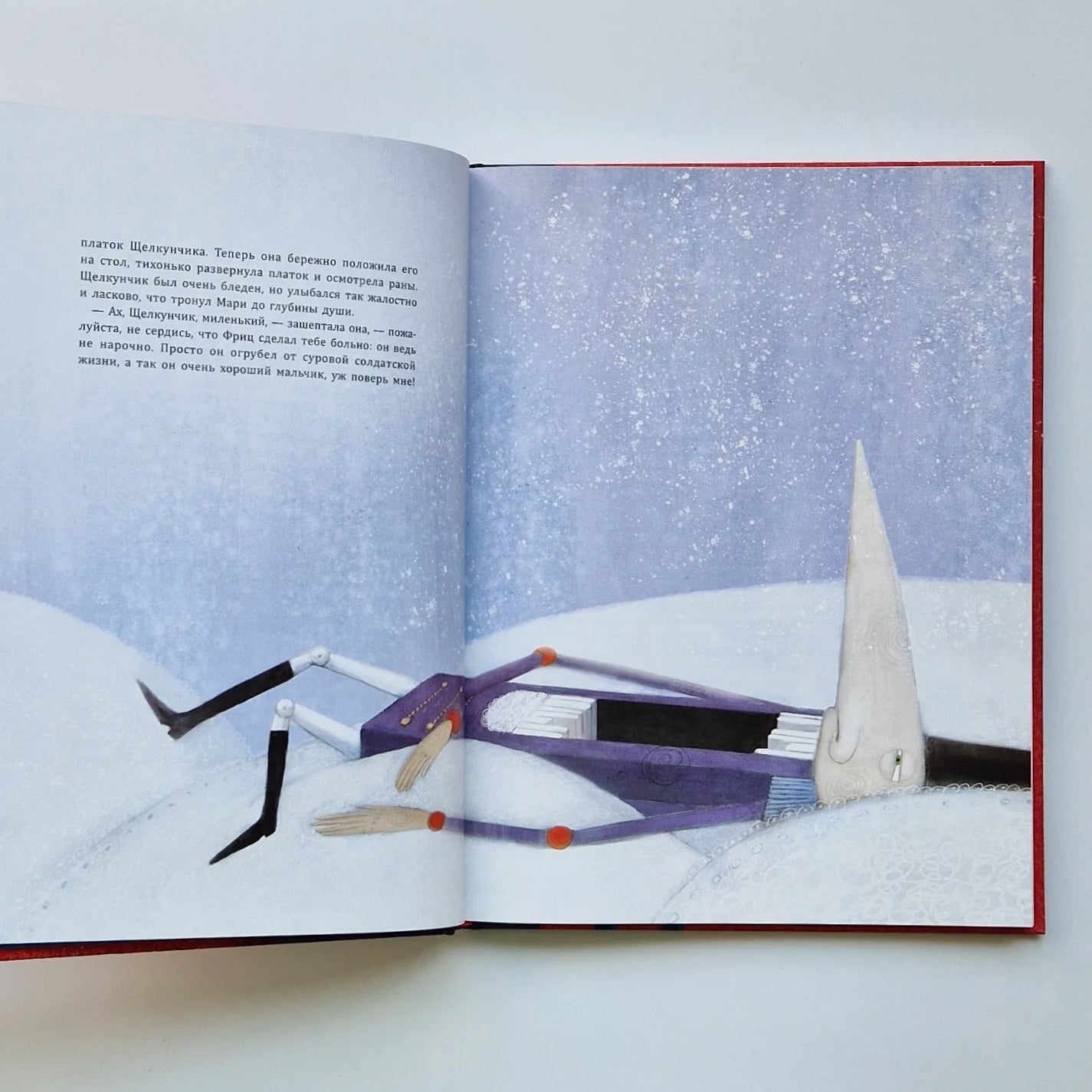 В сочельник случаются чудеса: красивая нарядная ёлка, много сладостей и… ожившие игрушки, которые увлекают брата и сестру, Фрица и Мари, в мир сказочных приключений и отважных героев, в мир волшебства и рождественской тайны. Отважный Щелкунчик, Мышиный король, нежная Мари и непоседливый Франц оживают на страницах этой удивительной книги с иллюстрациями Марии Михальской. Эти иллюстрации получили медаль на биеннале в Хорватии. Мария Михальская - лауреат множества премий, в том числе и "Образ книги". Невероятно-атмосферные, трогательные, магические иллюстрации завораживают с первого взгляда и хочется самим попасть в сказку, чтобы помочь Щелкунчику в его битве с Мышиным королём!