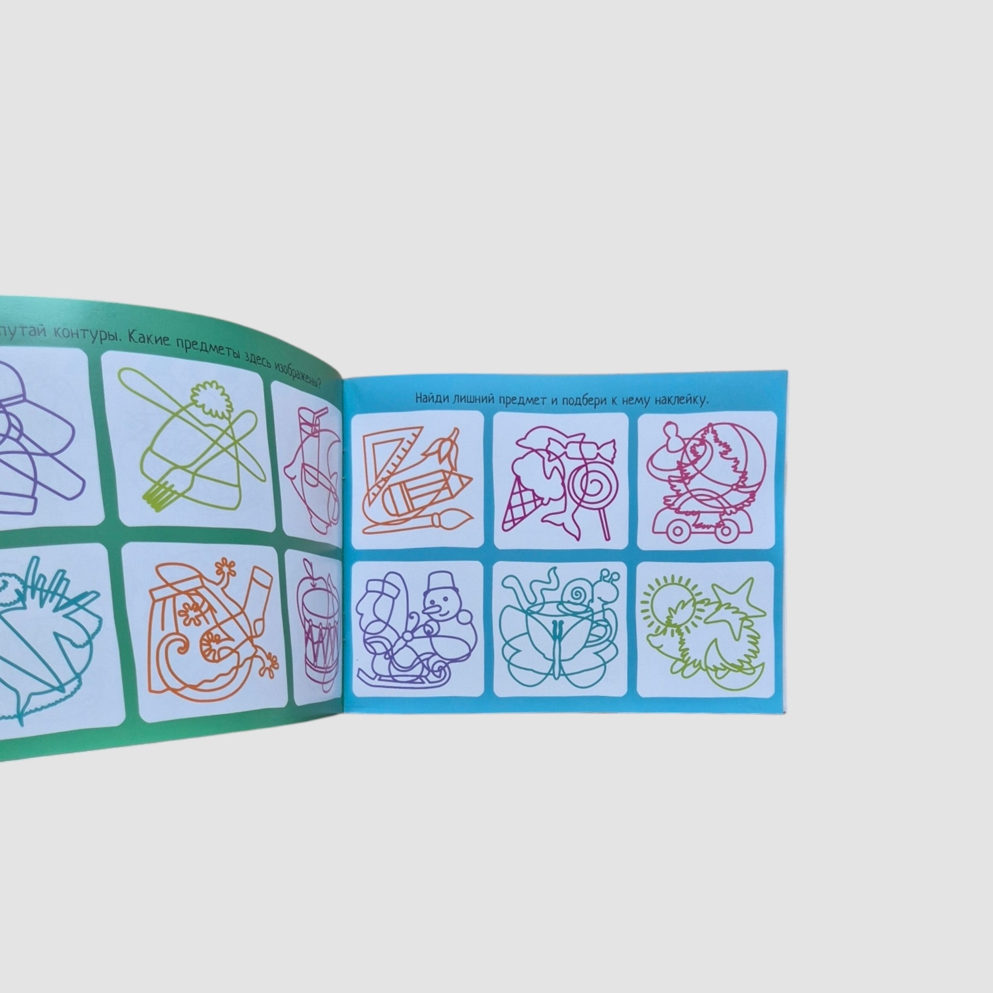IQ задачки с многоразовыми наклейками. Загадочные контуры (5+)