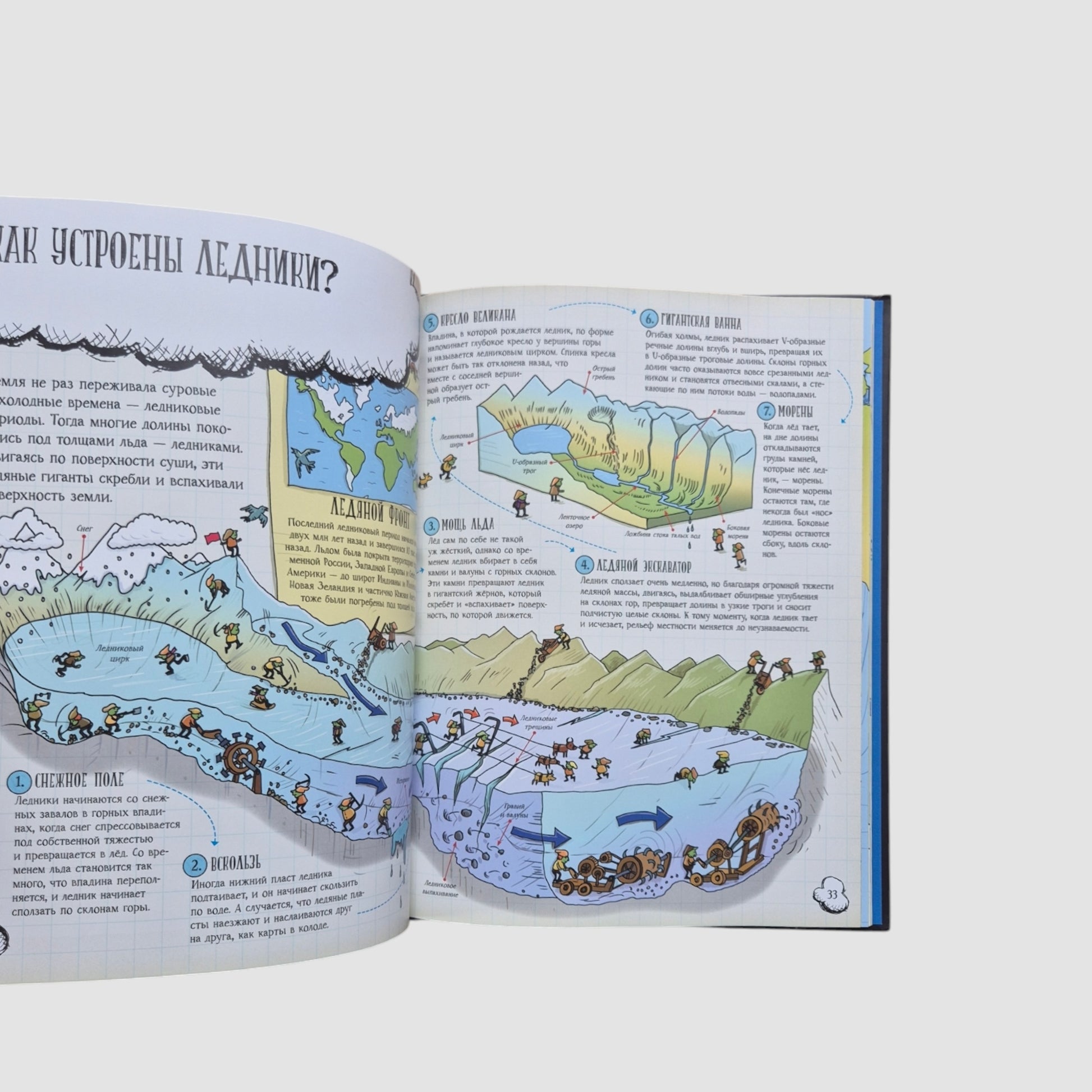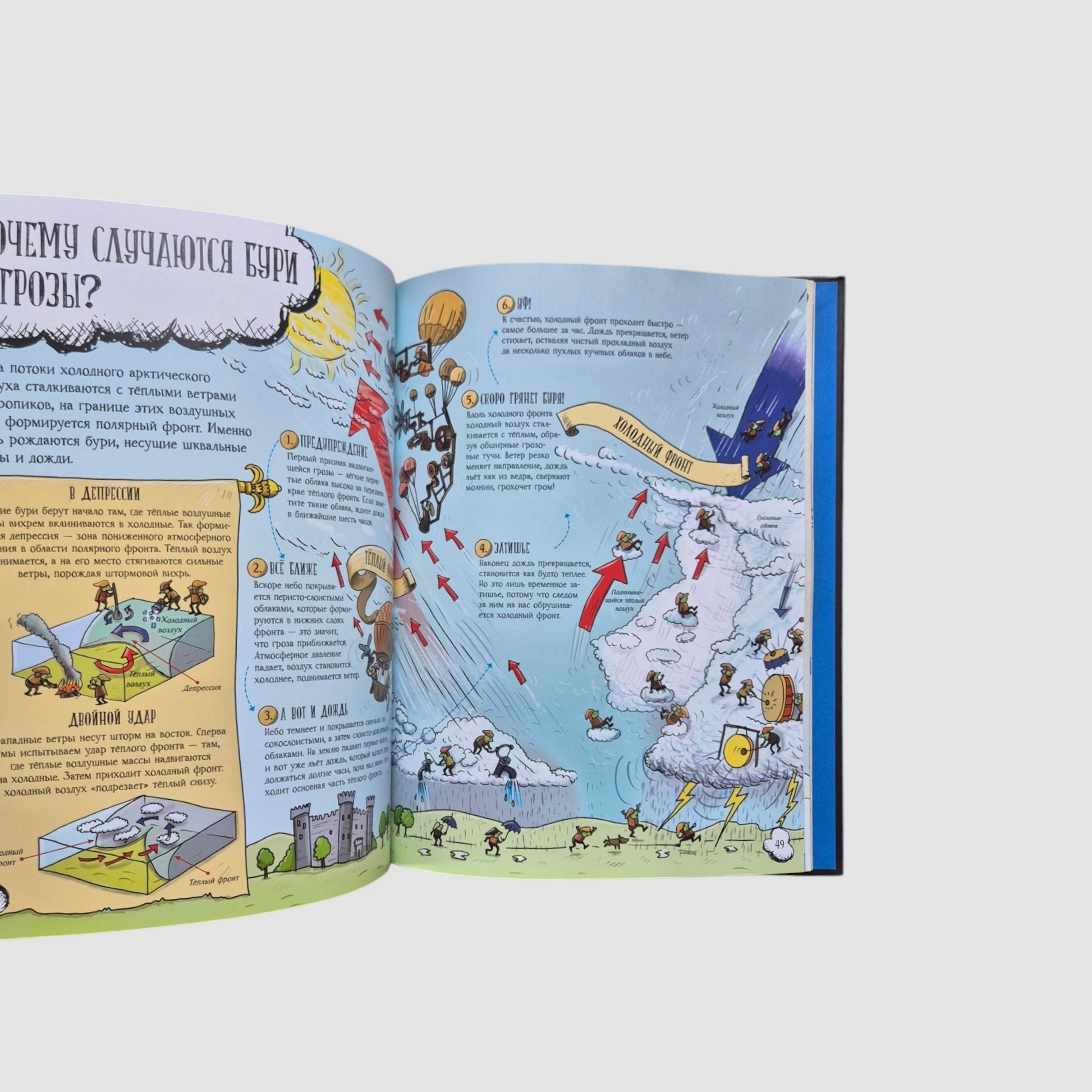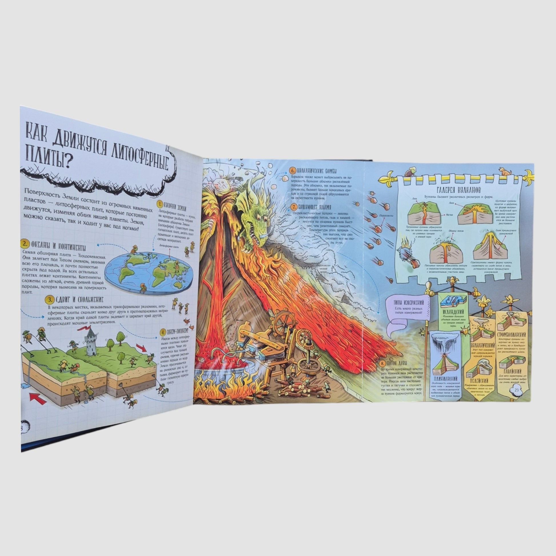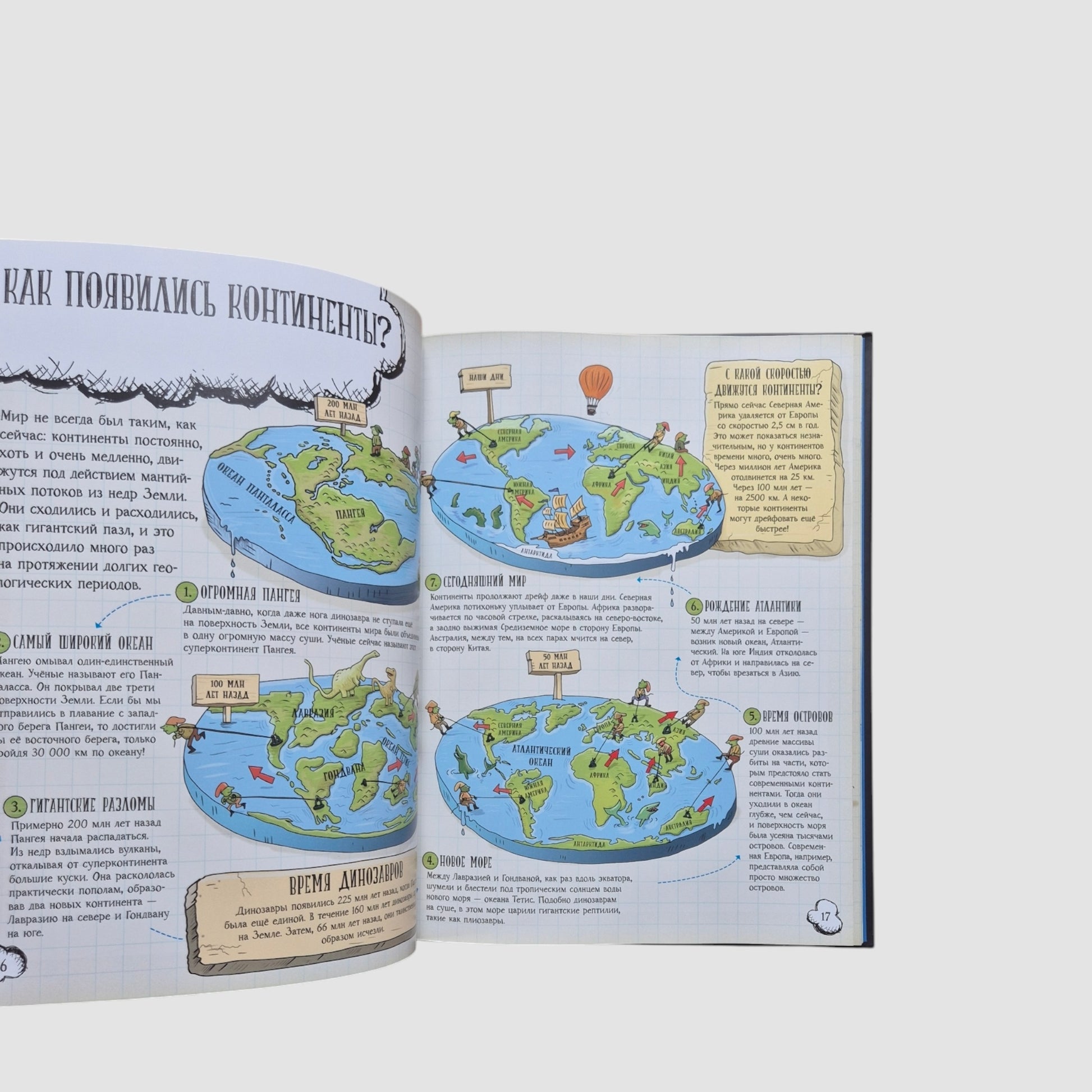 Куда движутся континенты? Что такое ледниковый цирк и глаз урагана? Почему горы превращаются в равнины? Как вода попадает на небо, а растения делают сахар из воздуха? Подробные ответы на вопросы разбиты на удобные блоки и проиллюстрированы ярко и наглядно: ярусы облаков, направления океанских течений, извергающийся вулкан в разрезе - вся планета как на ладони!