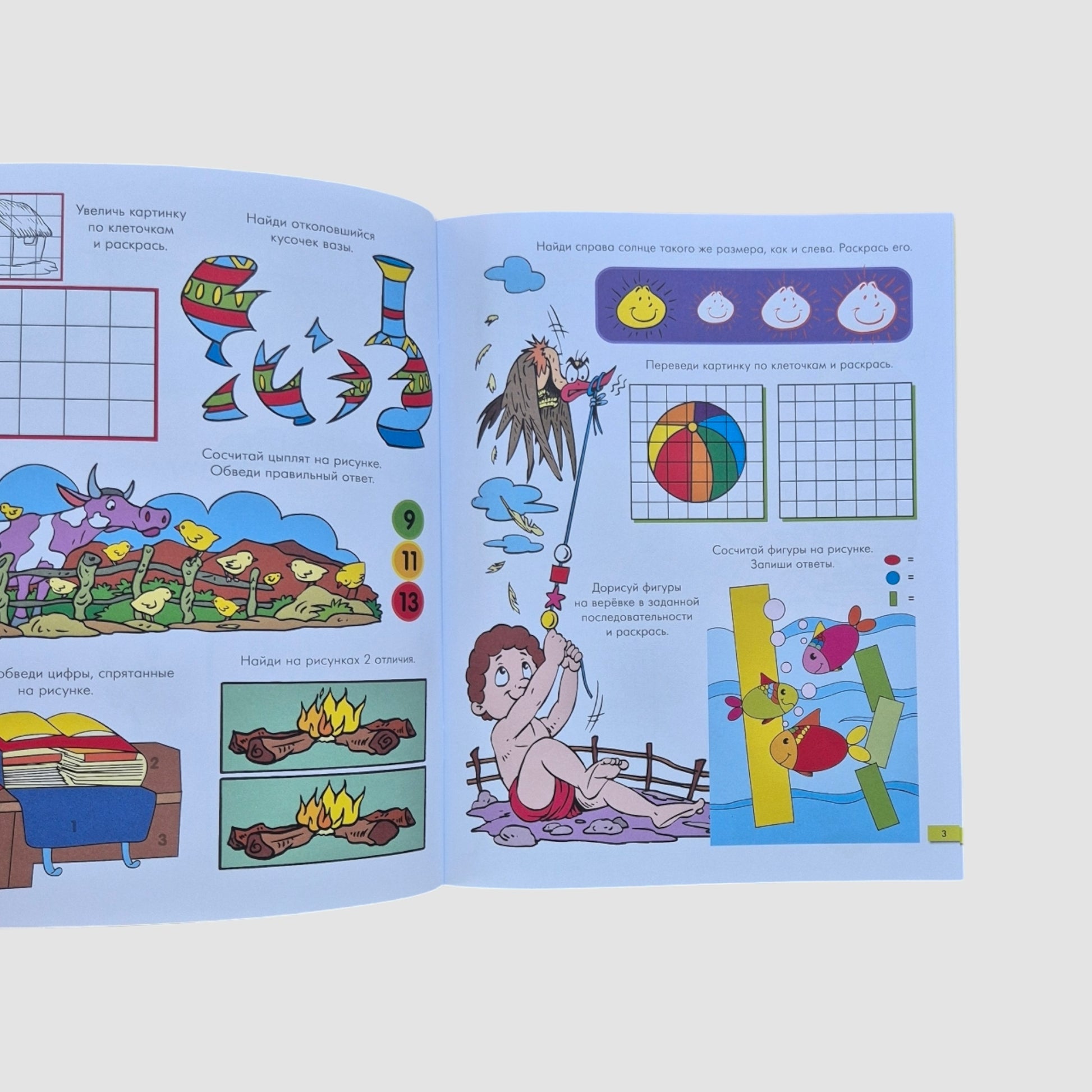 На отдыхе, дома, в поездке или на даче решайте "Весёлые задачки" вместе с вашим ребёнком. Погружайтесь в занимательный мир лабиринтов, головоломок, раскрасок и "сравнилок". Наблюдая за малышом в игре, вы сможете оценить его способности.