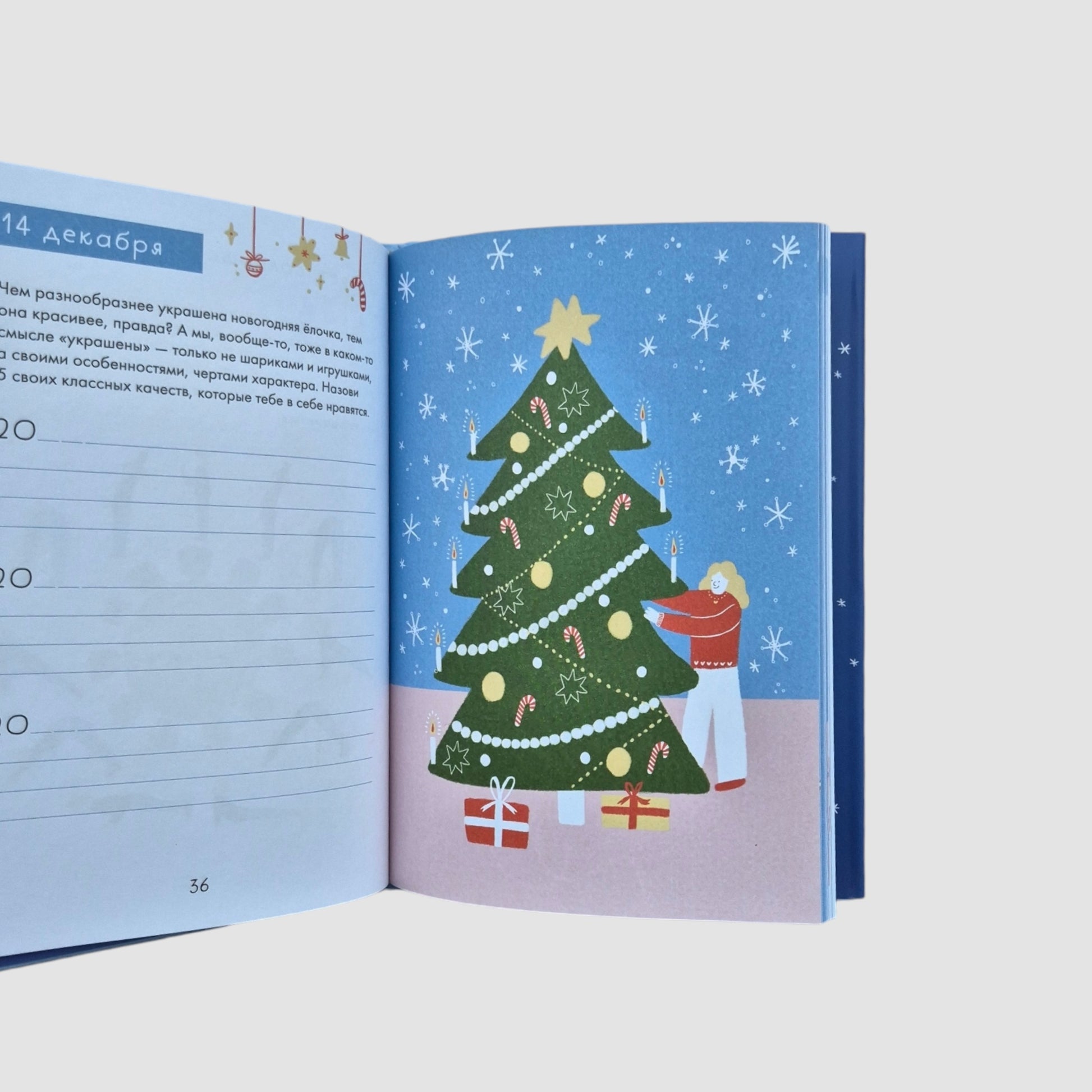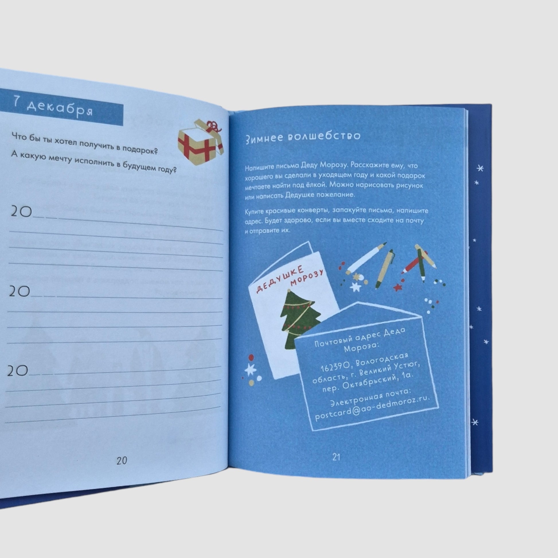 Дневник “Волшебный декабрь” создан специально для мам. Это настоящий сундучок с сокровищами – тёплыми воспоминаниями о взрослении ребёнка. Он рассчитан на 3 года и содержит 31 вопрос для обсуждения, а также творческие задания, которые помогут скоротать декабрь в ожидании праздника. Заполняя дневник каждый год вместе с ребёнком, вы сможете видеть, как он развивается, как меняются его взгляды и вкусы, начнете лучше понимать его чувства, мысли и интересы. Потратьте всего полчаса в день, растягивая удовольствие и заполняя дневник в течение месяца, или же возьмитесь за него в канун праздника и скоротайте с ним целый счастливый и уютный день. Какой бы способ вы ни выбрали, это время, которое вы проведете вместе со своим ребенком, поможет вам стать ближе, испытать много радости, научиться легко преодолевать трудности и стать по-настоящему счастливой семьей.