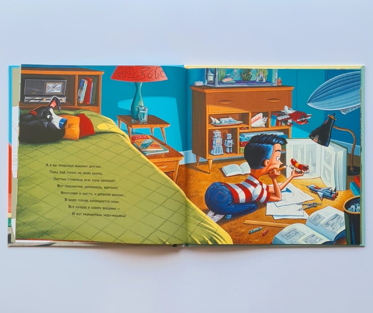 Джек сконструировал машину мечты. Вдохновляли его дирижабли и бипланы, старинные автомобили и самолёты. А какие необычные цвета, какие блестящие детали у автомобиля! Машина Джека готова отправиться в путь. В ней нашлось место для камина, бассейна и буфета. Джек рассказал нам как все устроено в его машине, и вот робот заводит мотор... А теперь Джек и его папа отправляются на самый сумасшедший тест-драйв в мире!