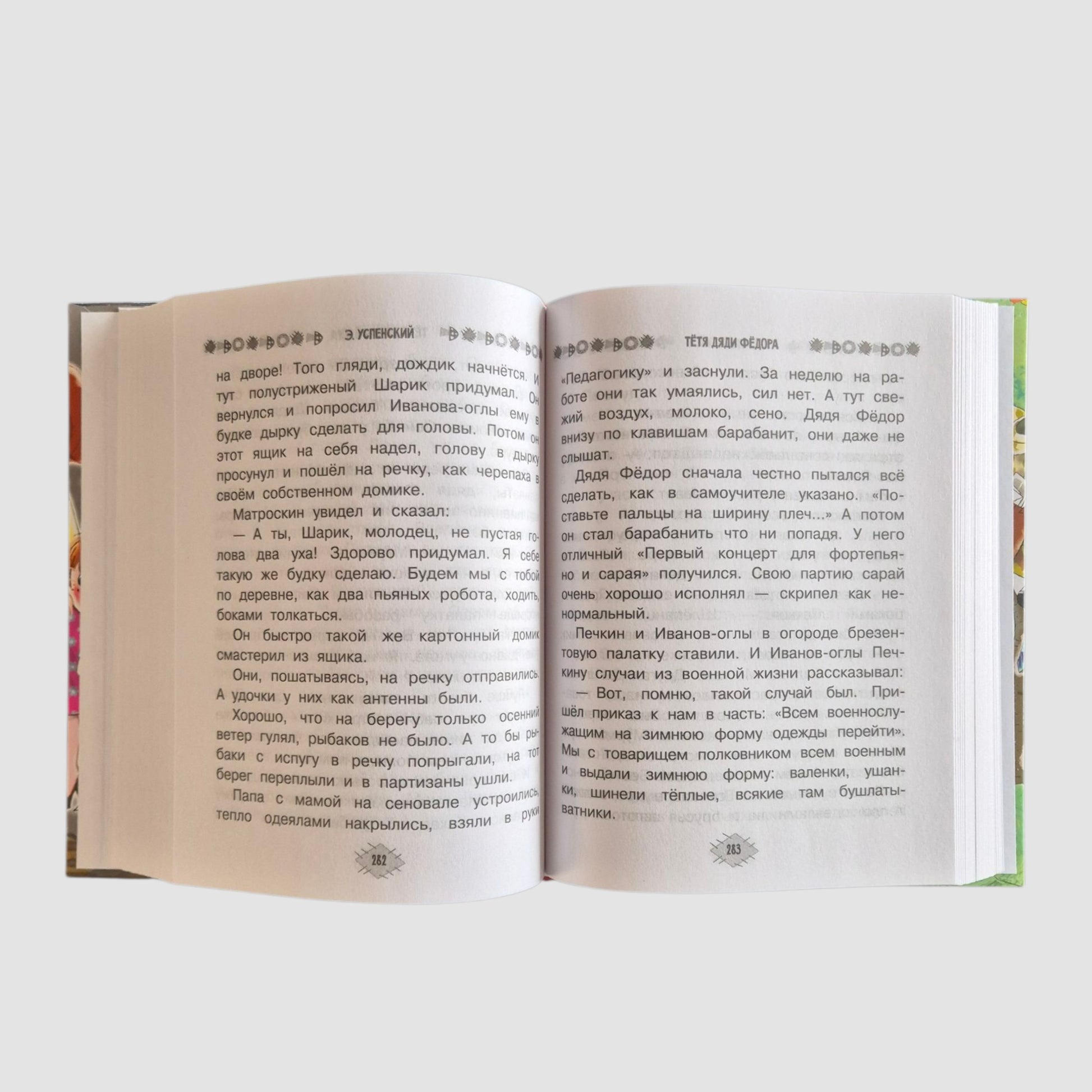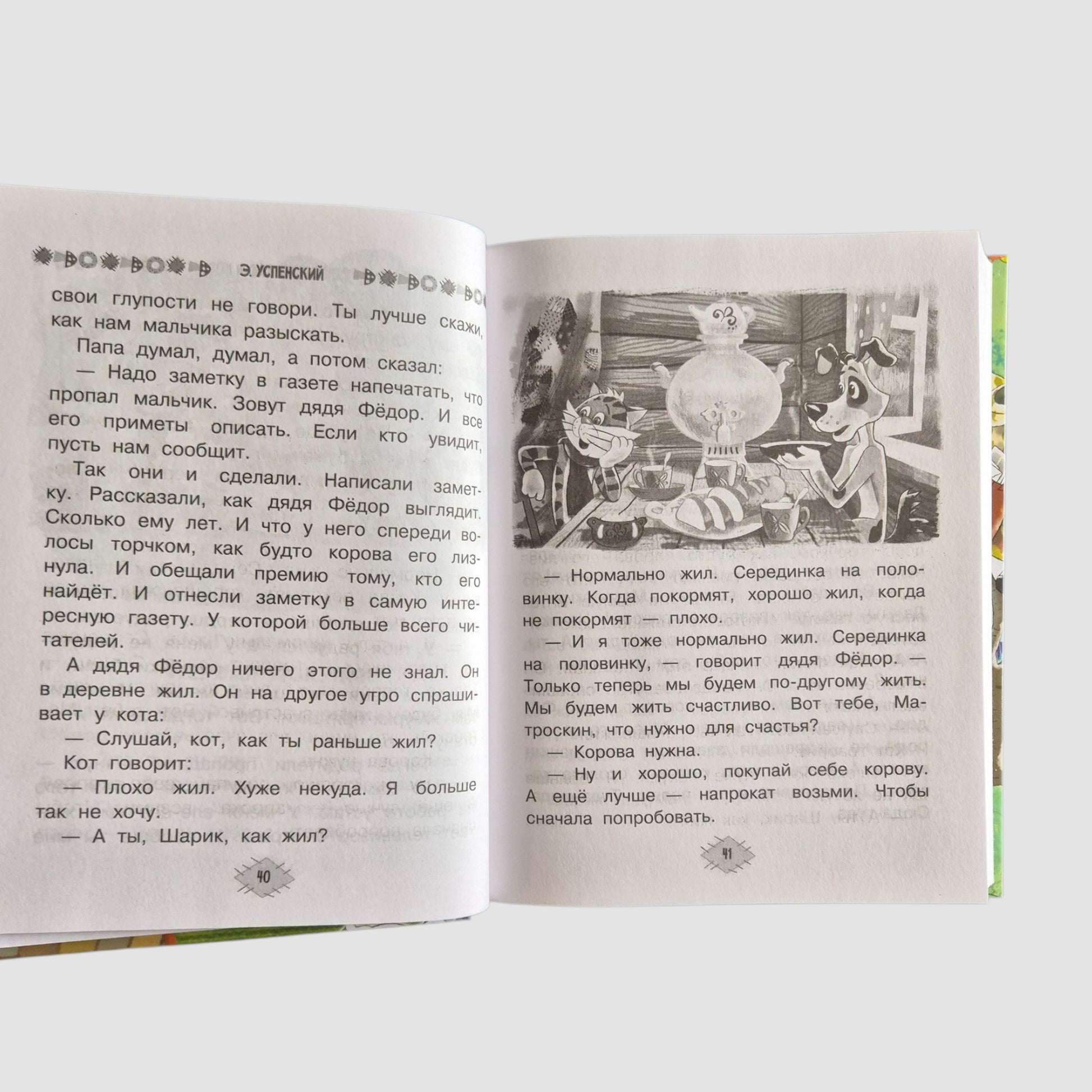 Добро пожаловать в деревню Простоквашино! Тебя ждут неразлучные друзья - дядя Фёдор, кот Матроскин и пёс Шарик! А ещё - почтальон Печкин, галчонок Хватайка, корова Мурка и телёнок Гаврюша. Круглый год жизнь простоквашинцев интересная и насыщенная. Столько событий происходит каждый день! Ты узнаешь лучшие истории о Простоквашино из повестей "Дядя Фёдор, пёс и кот", "Зима в Простоквашино", "Тётя дяди Фёдора" и "Любимая девочка дяди Фёдора", собранных в этой большой книге!