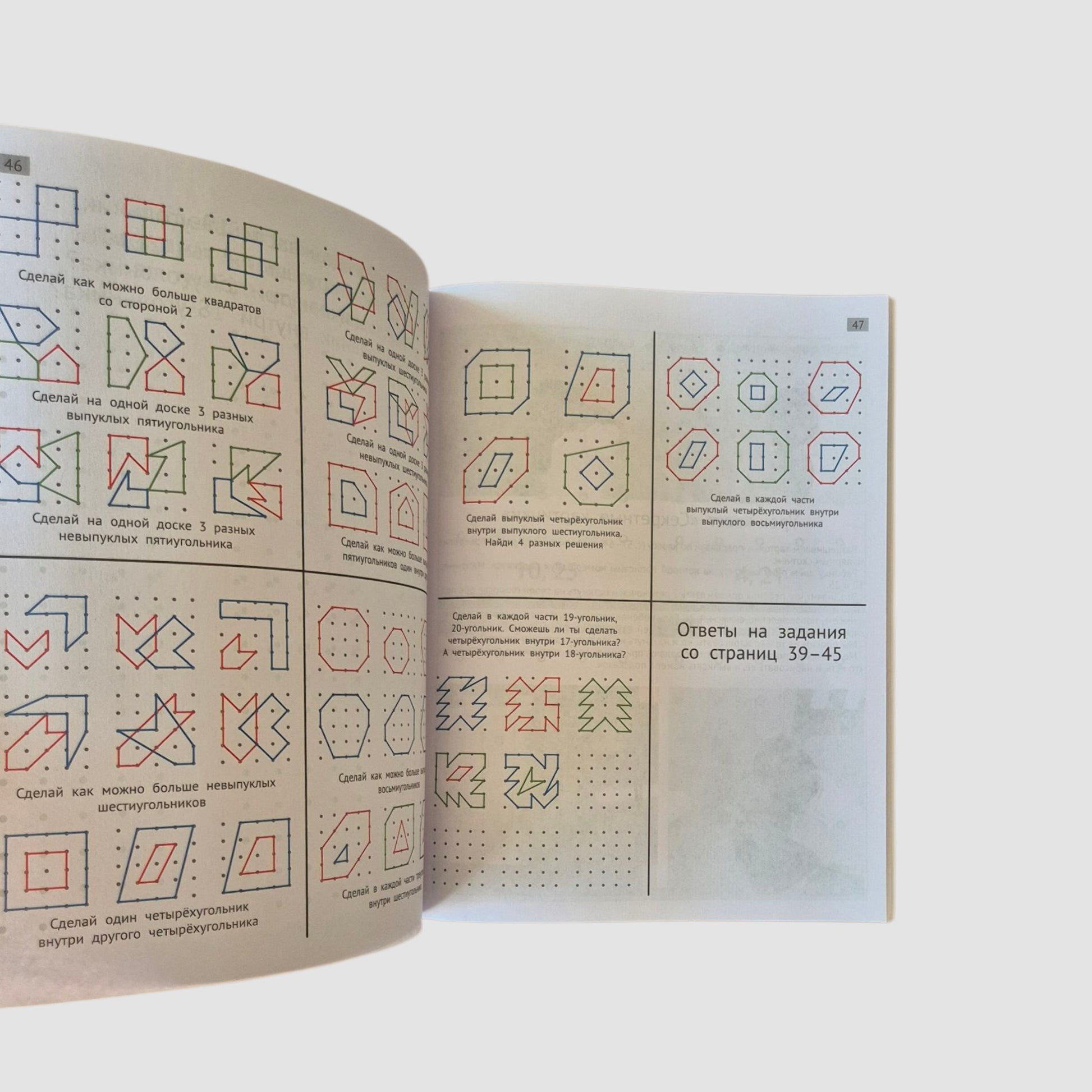 Эти задания очень полезны для развития мелкой моторики. Дети учатся соотносить нарисованную схему и изображение на дощечке, находить нужную точку по координатам, узнавать разные геометрические фигуры.