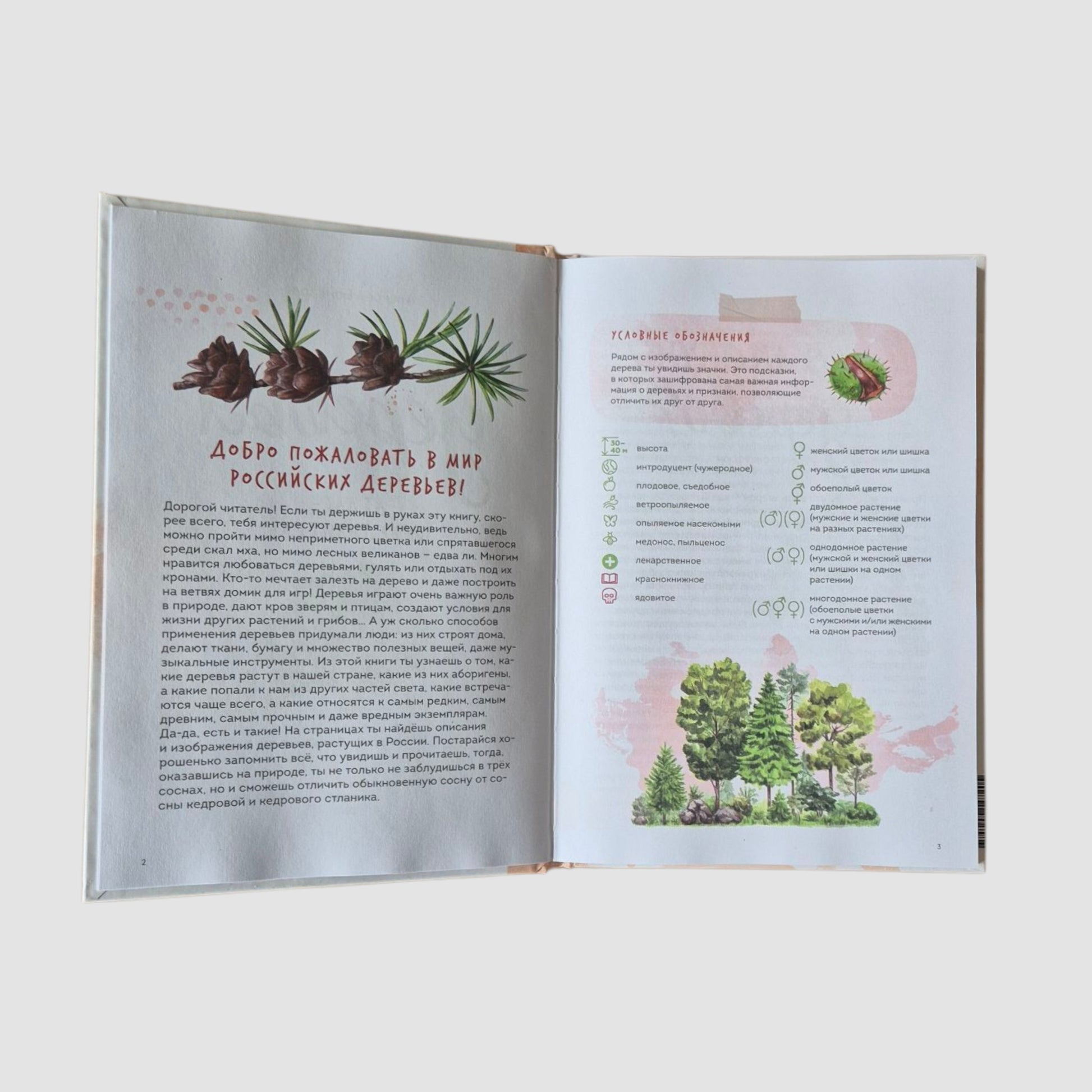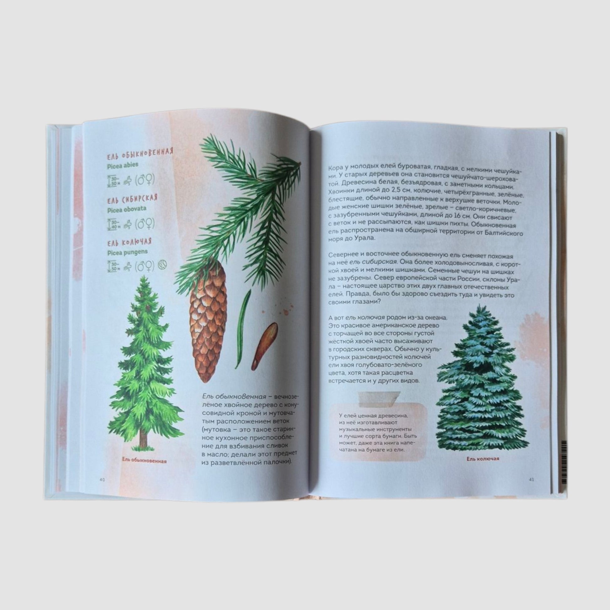 Насыщенный атлас-определитель российских деревьев с невероятными реалистичными иллюстрациями.