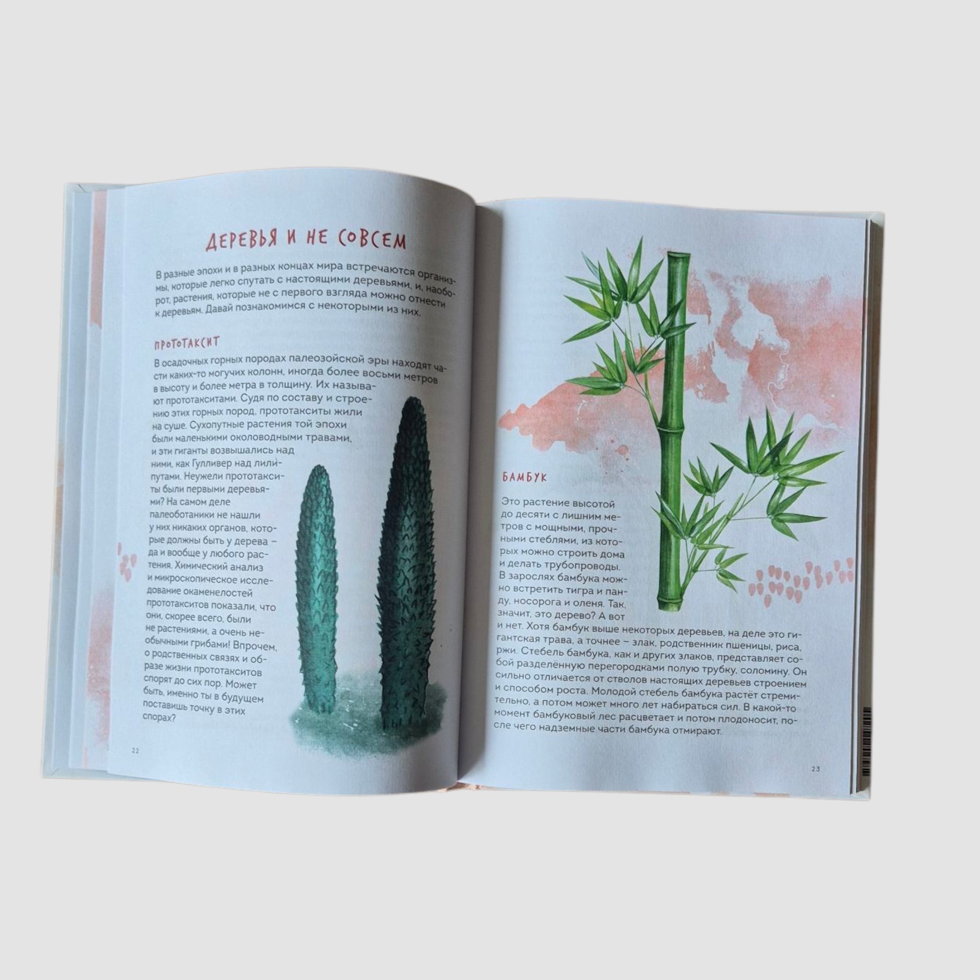 В этой красивой книге вы найдете более 45 видов российских деревьев — в том числе самые древние, прочные, редкие и даже самые вредные! Вы узнаете, что отличает деревья от других растений, научитесь определять виды по кроне, листьям или коре, разберетесь, как устроена экосистема леса и как человек взаимодействует с деревьями с древности до наших дней. Практический раздел расскажет о ремеслах, связанных с деревьями, — о плетении из бересты, резьбе и выжигании по дереву.
