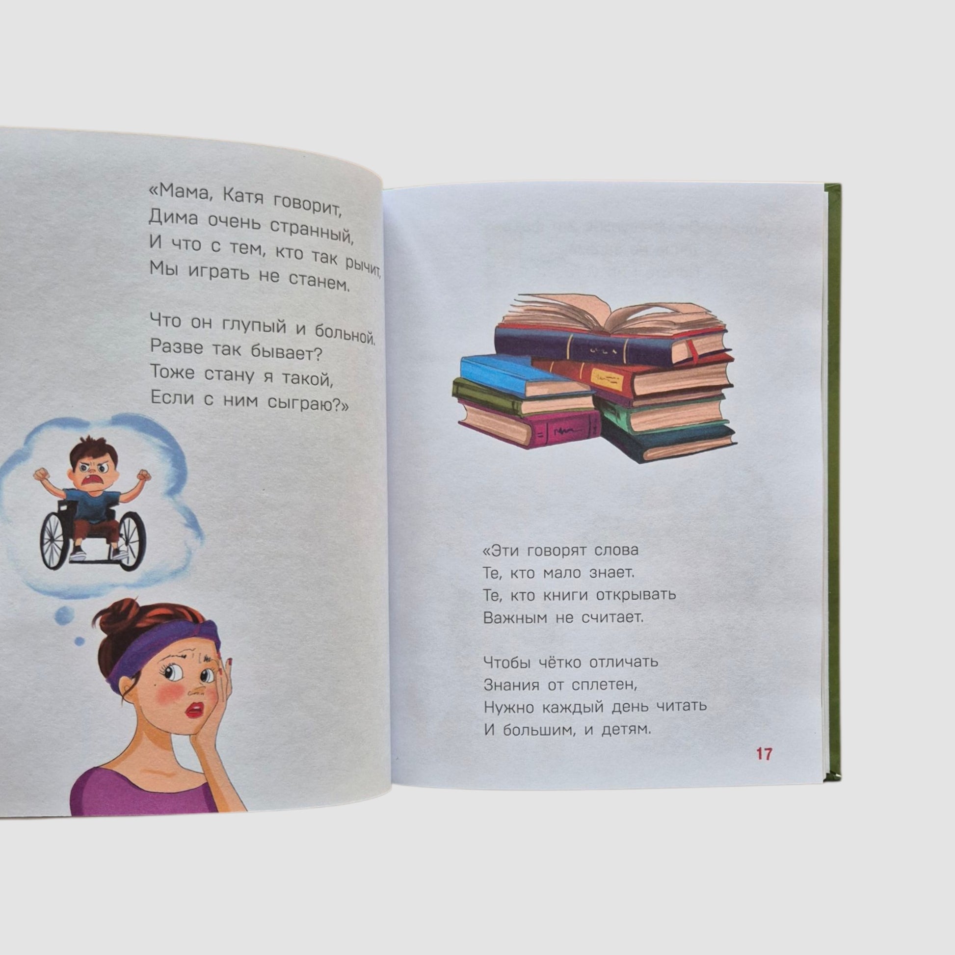 Эта книга - возможность провести время вместе с детьми и легкий способ обсудить с ними сложные вопросы. Автор поднимает 5 важных тем: отношение к старости, людям с особенностями развития, представителям другой национальности, материальным ценностям и дружбе. Свое мнение в книге высказали также психологи и эксперты по детскому воспитанию.