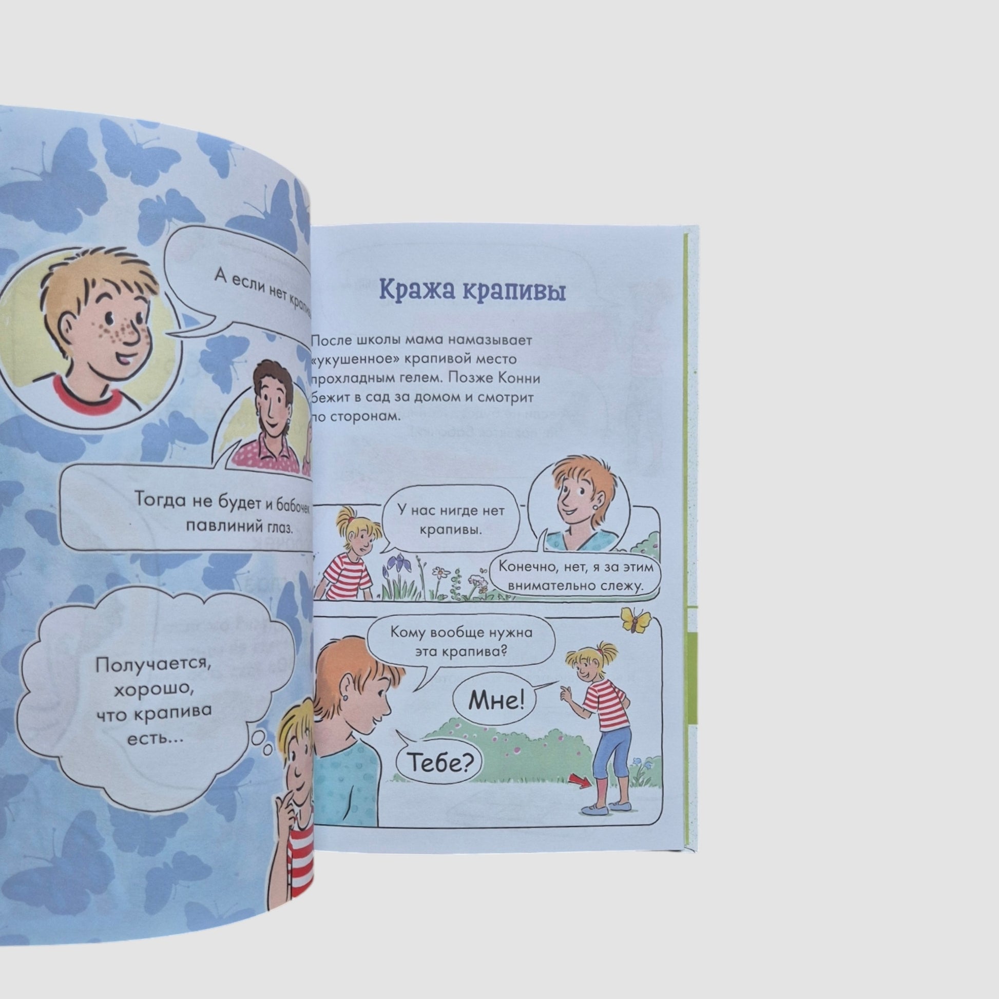 Однажды учительница приносит в школу необычное растение — крапиву. Оказывается, именно ею питаются гусеницы бабочек павлиний глаз. Теперь ребята ухаживают за необычными обитателями живого уголка. Конни это так увлекает, что она начинает вести настоящий «Дневник гусеницы»!