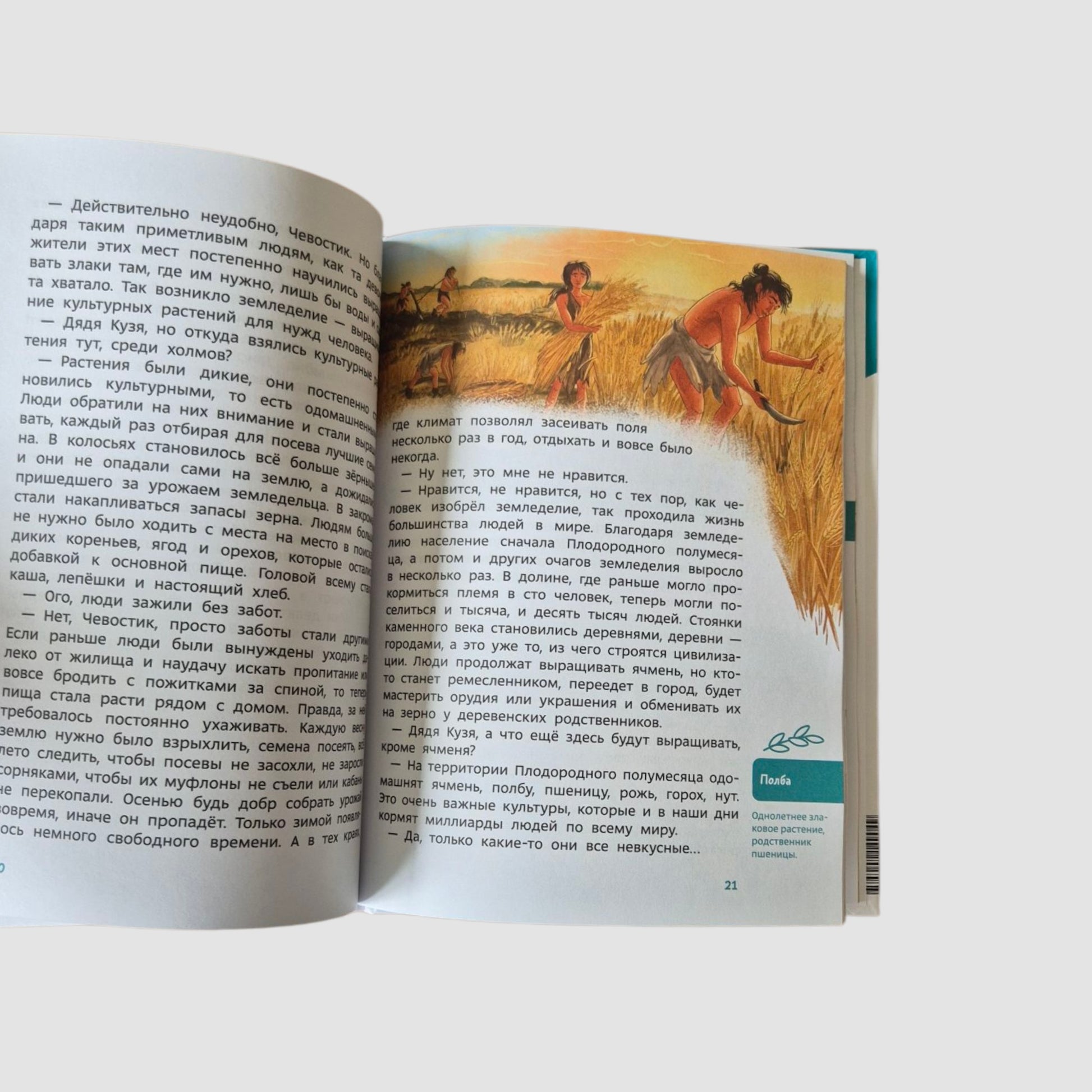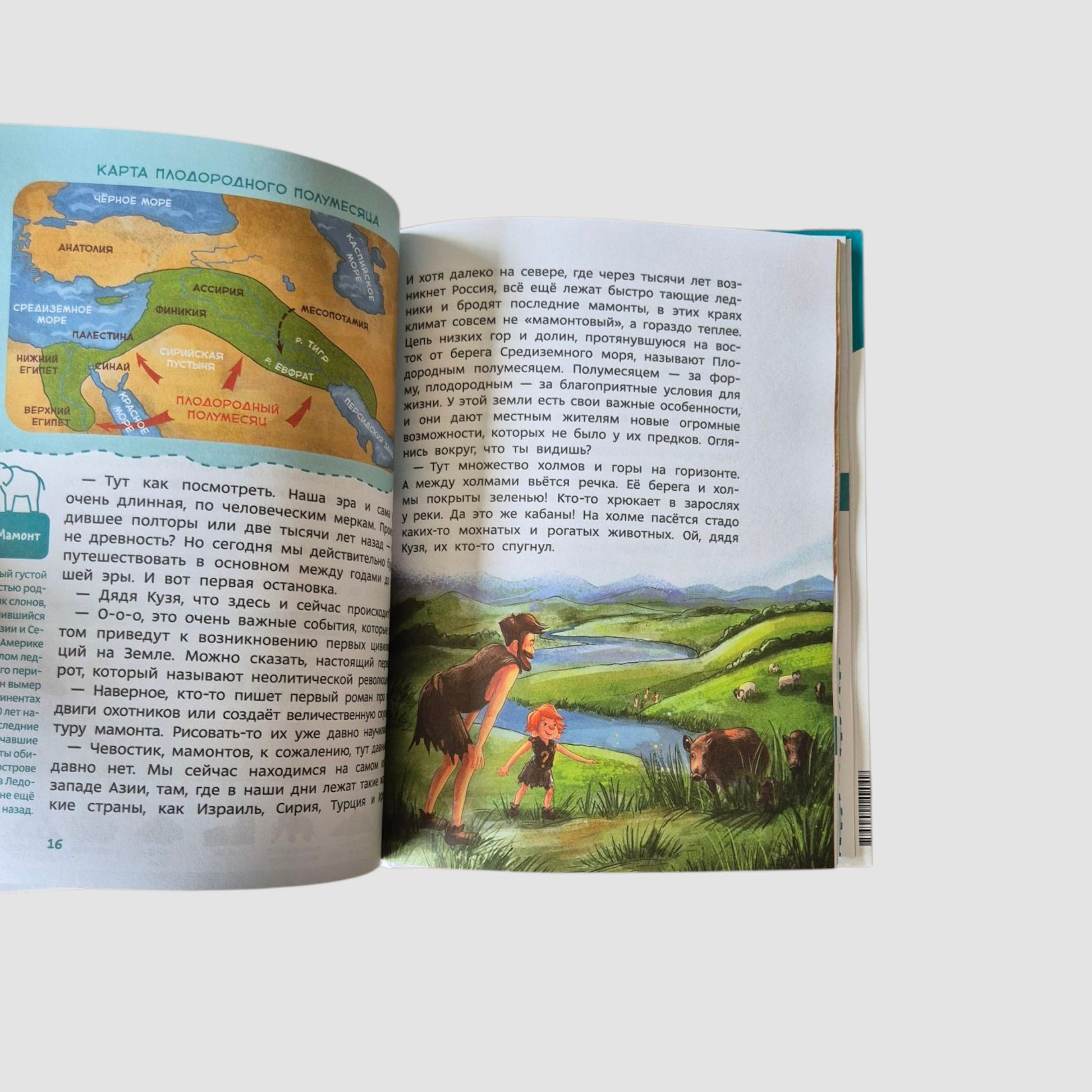 В новой книге Чевостика и дядю Кузю ждет интереснейшее путешествие, на этот раз в мир древности. Они узнают, какой город на Земле был построен первым, как колесо перевернуло мир, как дикие растения и животные помогли улучшить жизнь человека. Путешественники своими глазами увидят, где жили шумеры, персы, скифы, финикийцы, майя и другие народы, как одевались, чем питались и как проводили досуг. Присоединяйтесь к любимым героям, вас ждут полезные приключения!