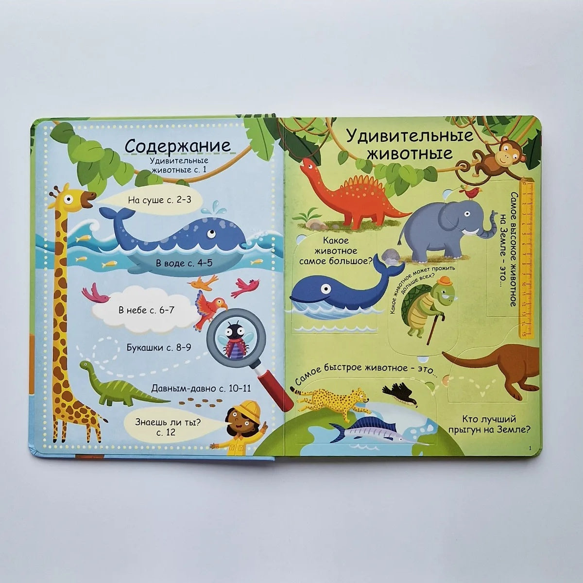 Яркие и детальные иллюстрации, а также 60 створок с интересными и удивительными фактами о животном мире.