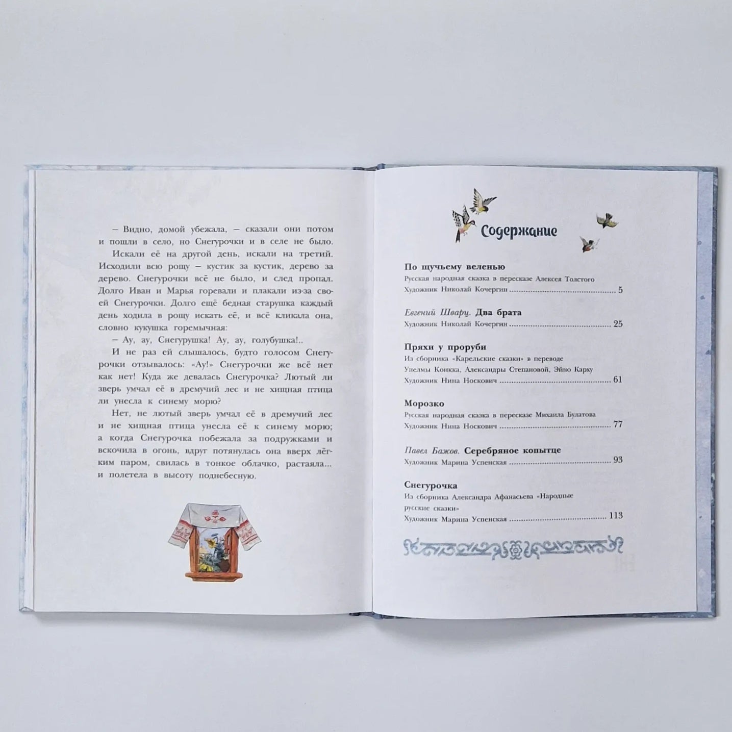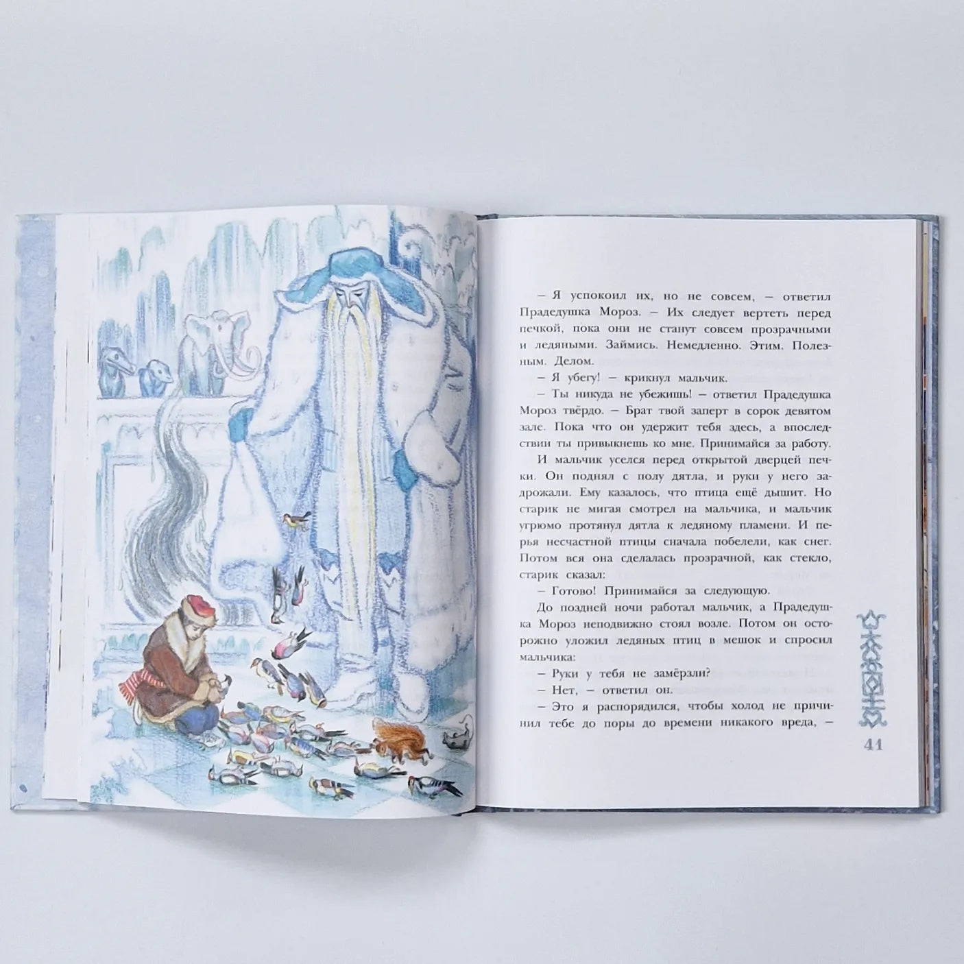 Зимой особенно хочется верить в сказку и волшебство. И чудеса случатся! Щука заговорит человечьим голосом и исполнит всякое Емелино желание; Старший брат вызволит Младшего брата из ледяного плена Прадедушки Мороза; прилежинка пряха не только не утонет в проруби, но и получит за свои труды сундук с приданым и ларец с драгоценностями; волшебник Морозко тоже будет щедрым на награды, но тоже только тем, кто неперечлив и любит трудиться; сиротка Дарёнка встретит-таки козлика с серебряным копытцем на правой передней ножке, и он одарит её и дедушку Кокованю камнями драгоценными; дед с бабкой выйдут во двор, слепят из снега куклу, а она вдруг оживёт… Включённые в настоящий сборник сказки приводятся в рисунках выдающихся мастеров книжной иллюстрации Николая Кочергина, Нины Носкович, Марины Успенской.
