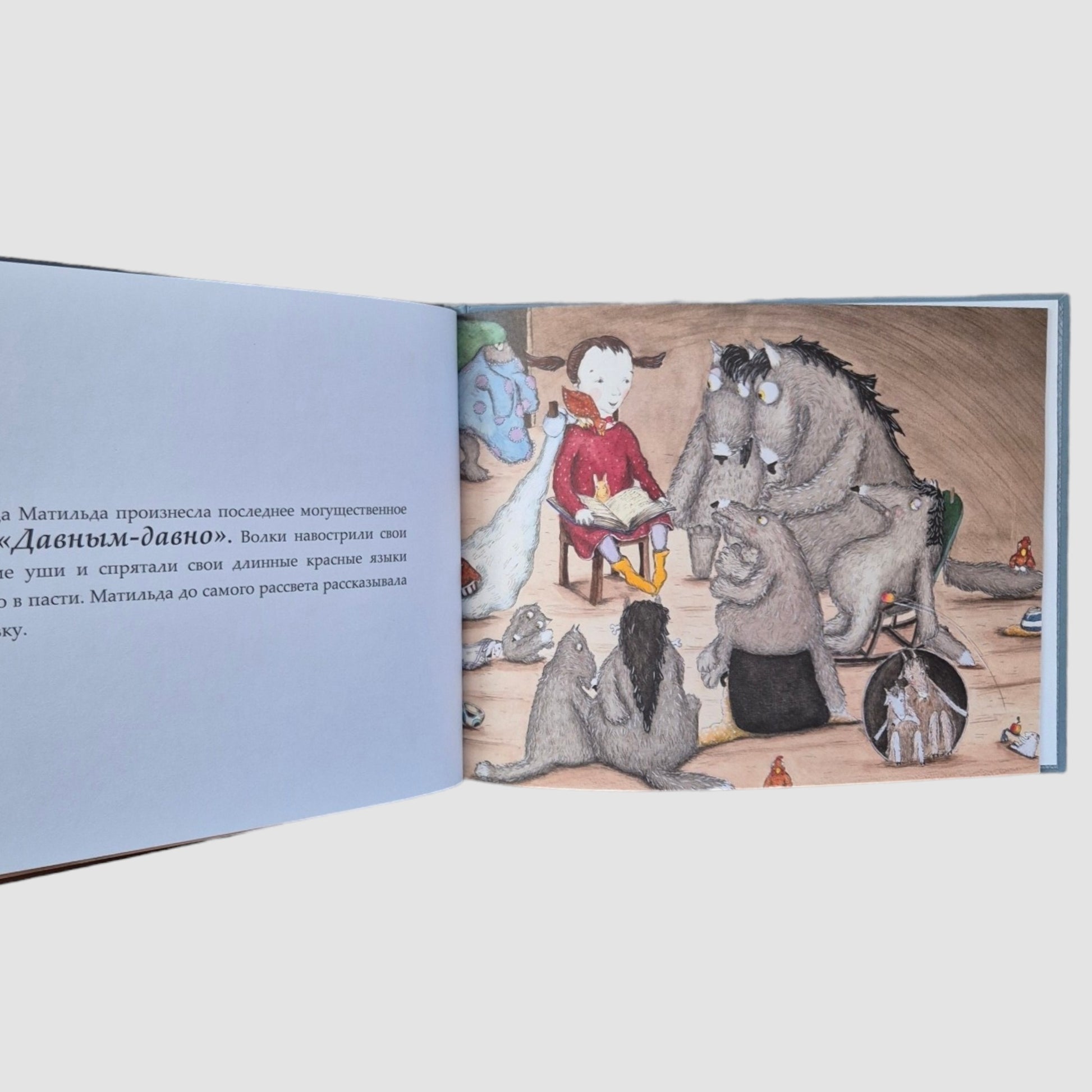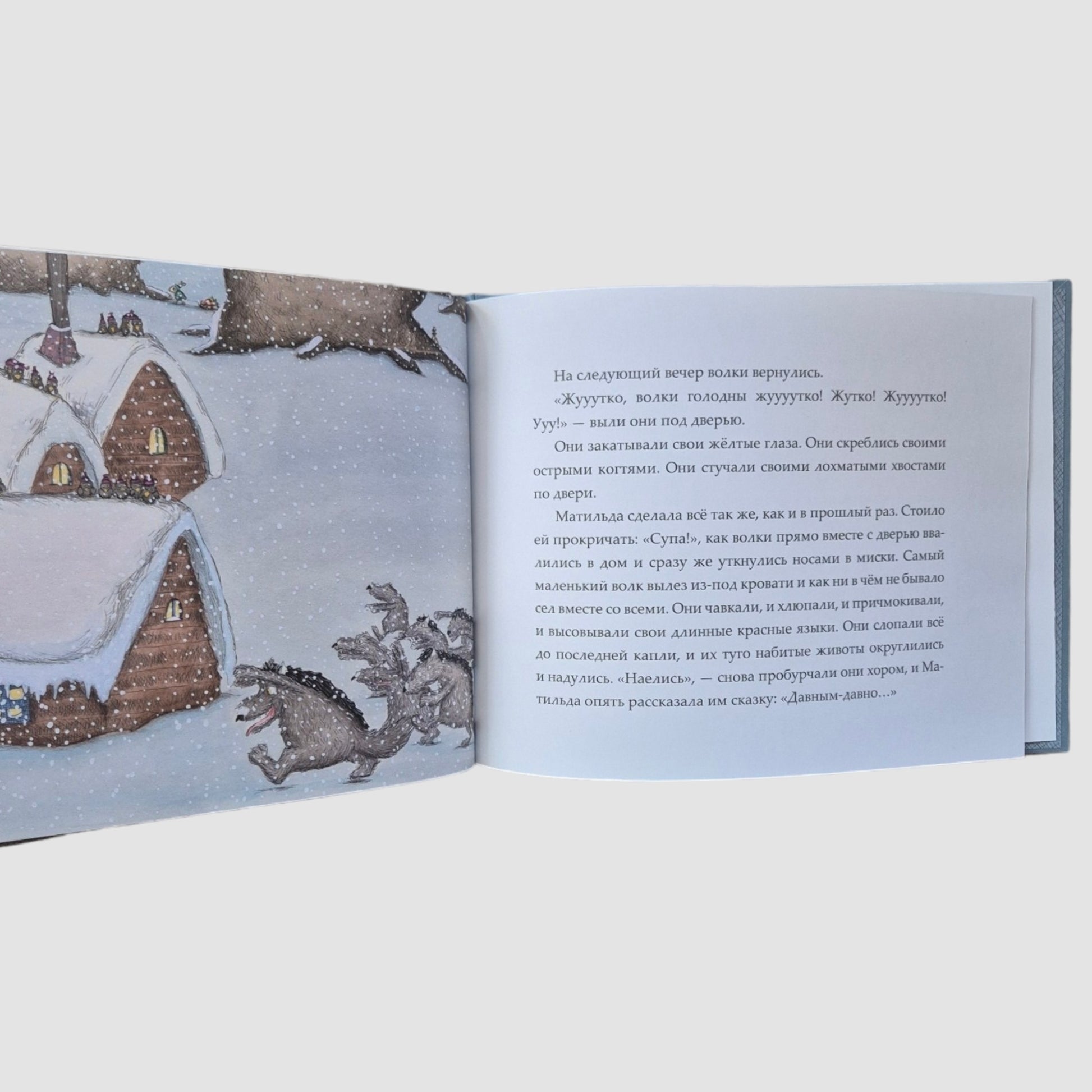 Давным-давно в дремучих лесах по соседству с людьми водилось множество свирепых волков. Люди этих волков страшно боялись, все, кроме маленькой девочки Матильды, которая знала от бабушки удивительный секрет приручения волков. Эта книга о том, как бесстрашная девочка превращает свирепых хищников в добрых друзей, а помогают ей в этом вкусный суп и увлекательные сказки - и конечно, смелость и уверенность в себе.