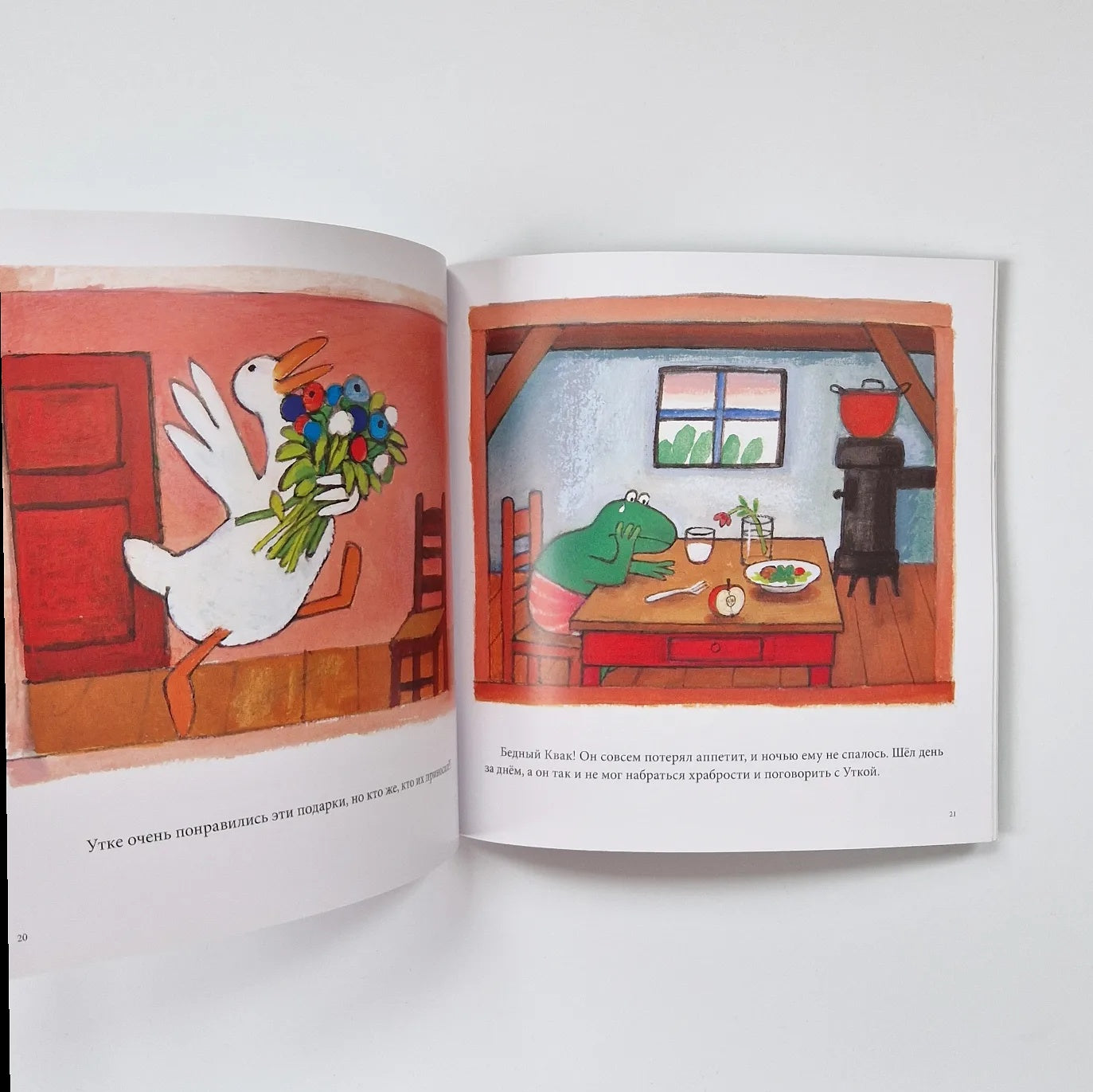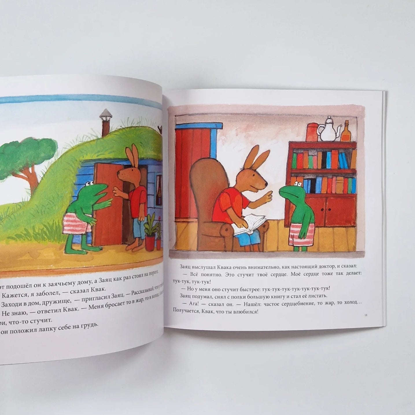 Лягушонок Квак не знает, что с ним. Грустит он или радуется? Его бросает то в жар, то в холод, а внутри что-то быстро-быстро стучит: тук-тук-тук-тук! Объяснение столь странному состоянию лягушонка находит Заяц, и оказывается, что Квак влюбился! Сначала он даже не знал в кого, а потом вспомнил: "Я влюбился в милую, красивую, чудесную белую Уточку!" Но как рассказать ей о своих чувствах? И как узнать, полюбит ли она в ответ?