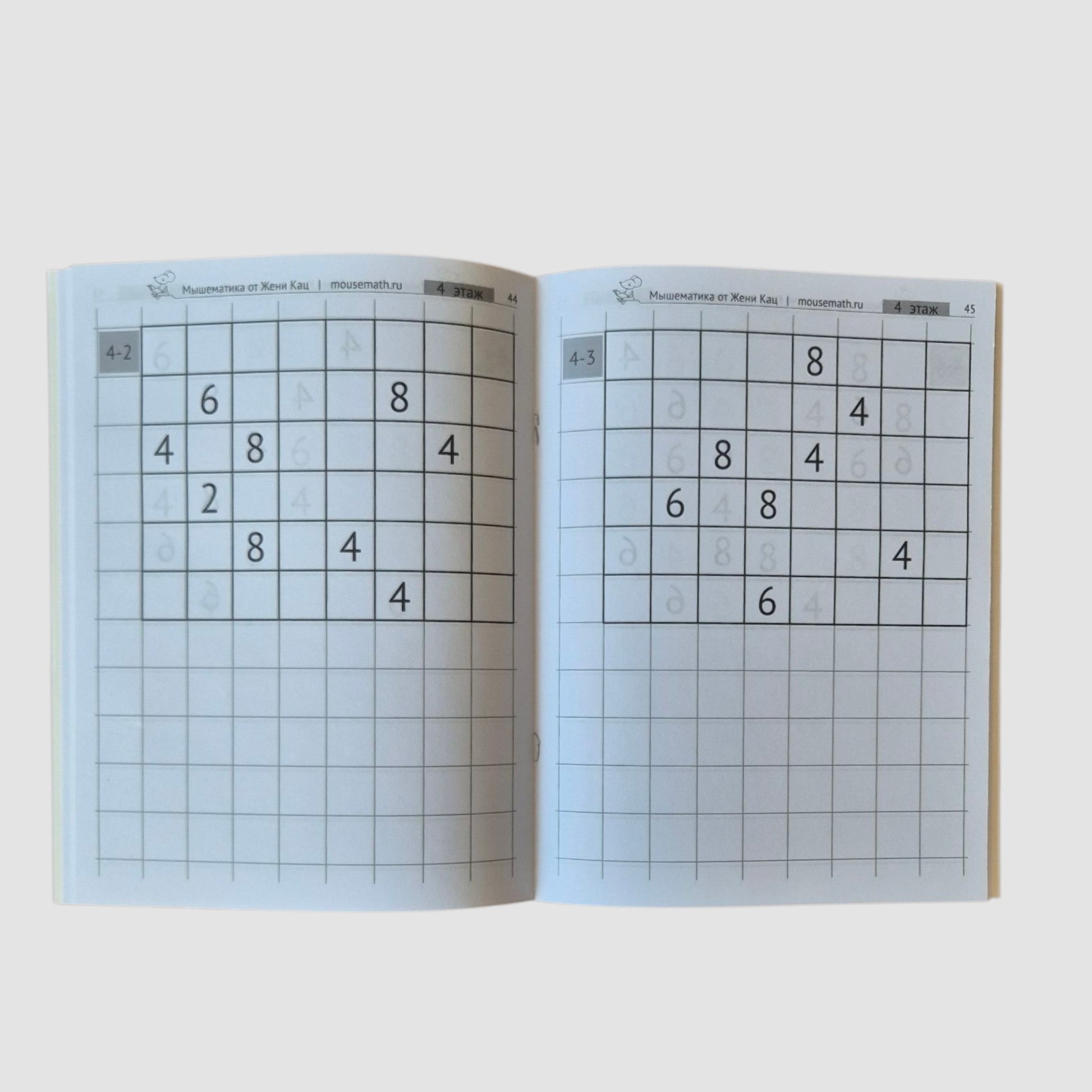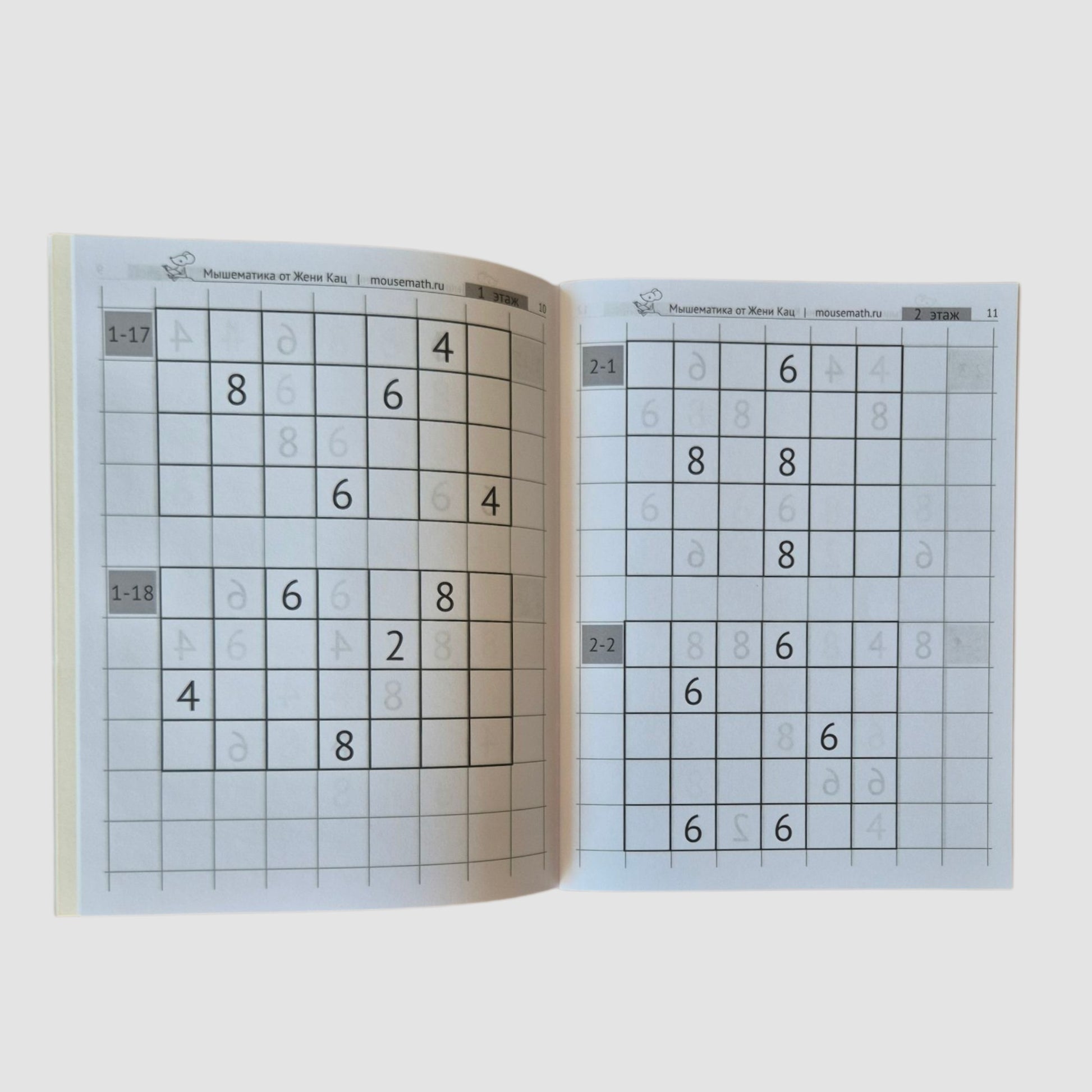 Король Квадратус живёт во дворце, в котором очень много комнат, квадратных и прямоугольных. У короля Квадратуса стали мёрзнуть ноги, и он велел слугам застелить коврами весь пол. Ковры у короля прямоугольные и квадратные. Их постелили в один слой так, чтобы они не пересекались и между ними не было пустых мест. Когда слуги мыли пол, они унесли все ковры, а на полу под каждым ковром написали, сколько клеток было в том ковре, который они унесли. Теперь нужно снова застелить пол коврами. Цифру 4 должен закрывать один ковёр из 4 клеток, цифру 6 – один ковёр из 6 клеток и т.д. В комнате может лежать несколько ковров одного размера, но разной формы: мы не знаем, узкие там были ковры или широкие. Решение каждой головоломки проще искать, когда ты держишь в руках цветные ковры, все они подходят по размеру к нашим комнатам. На вкладке есть ковры разного размера. 1 этаж — это первый уровень сложности.