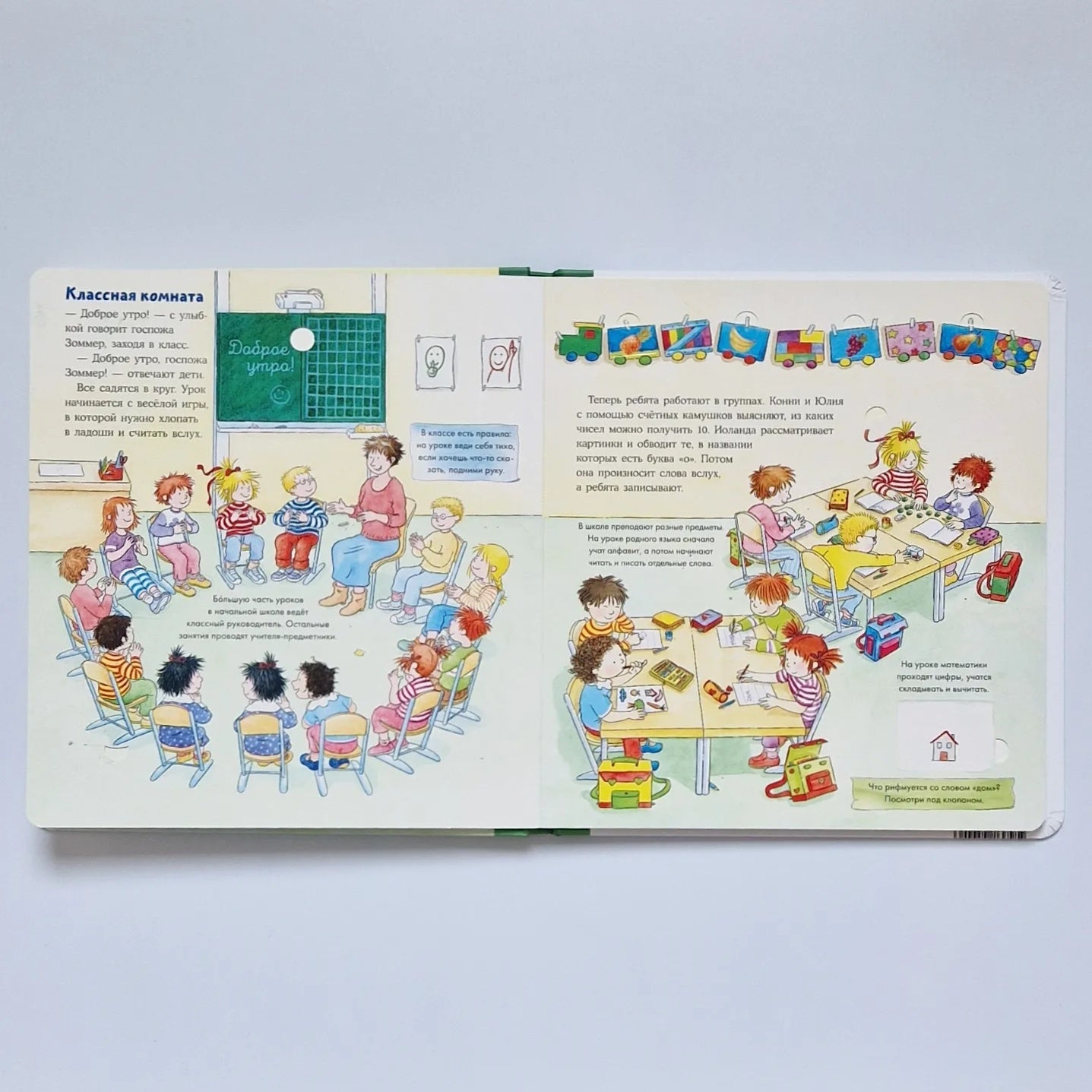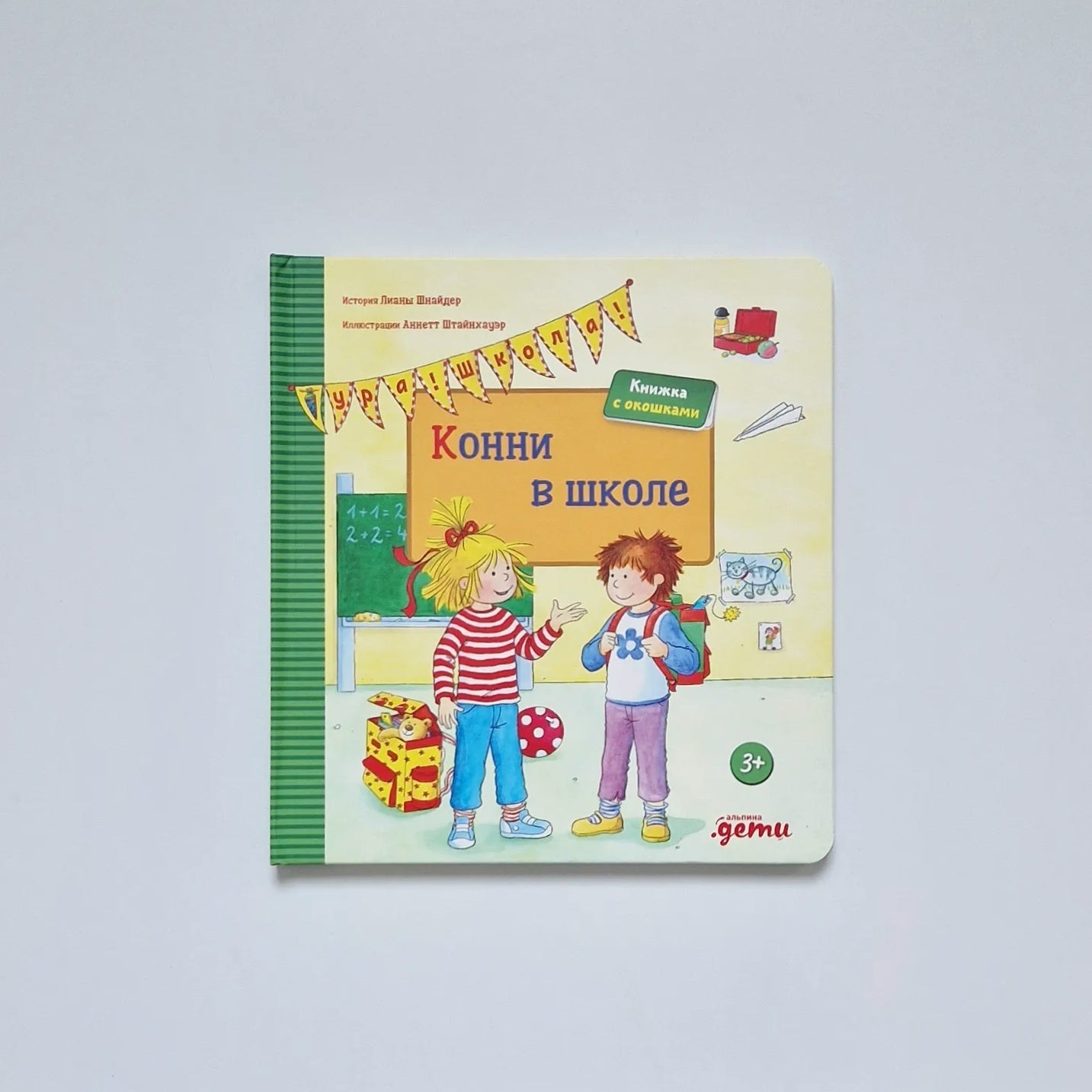Обо всём расскажем, а главное, покажем! Серия-бестселлер “Лучший друг — Конни” в новом формате картонных книг с окошками. Конни собирается в школу. Сегодня у неё в расписании математика, музыка, физкультура, рисование и окружающий мир. Интересно, что ждёт её в классе? Вместе с Конни ребёнок узнает, как организован школьный день, познакомится с основными предметами, запомнит, что нужно обязательно взять с собой на уроки. А ещё в книжке с окошками можно открыть дверь в класс, полистать учебники и поиграть вместе с Конни на школьном дворе.