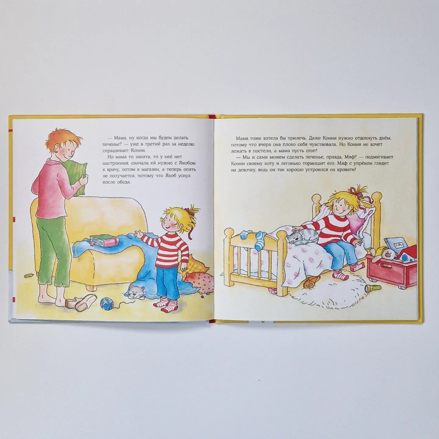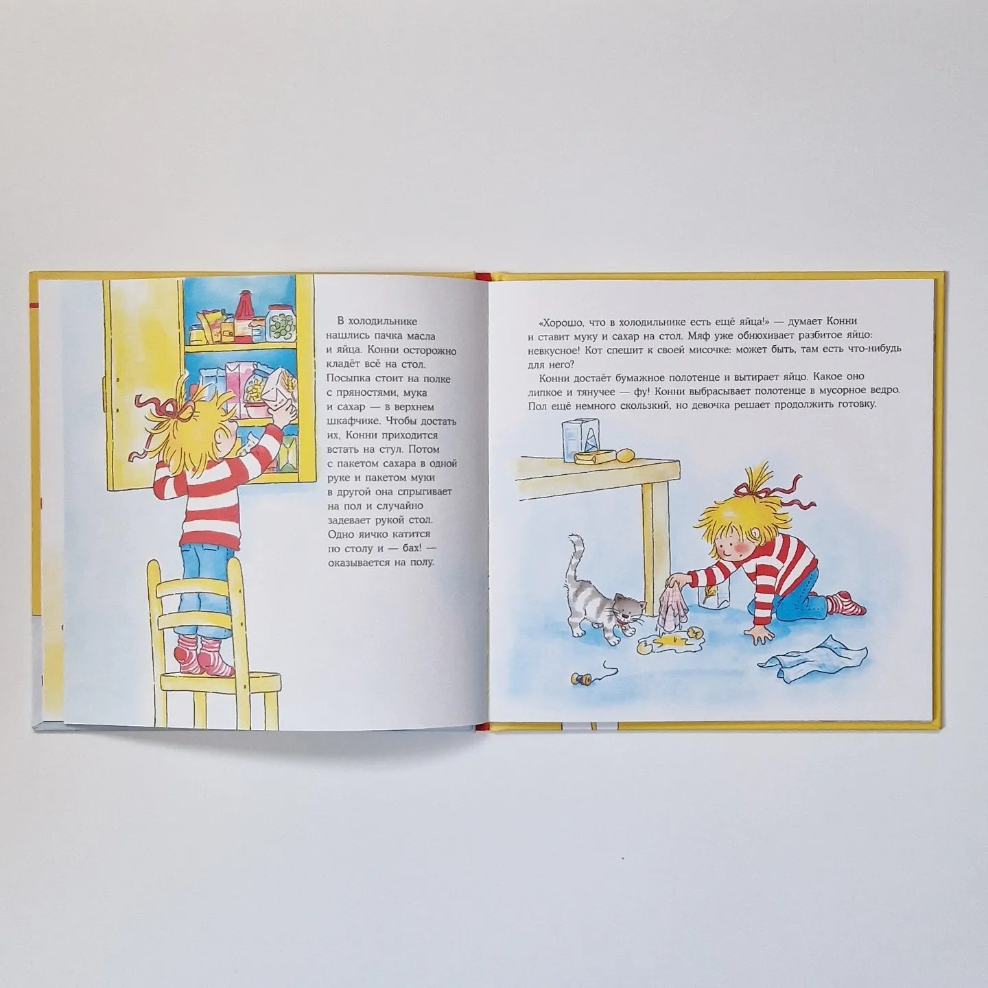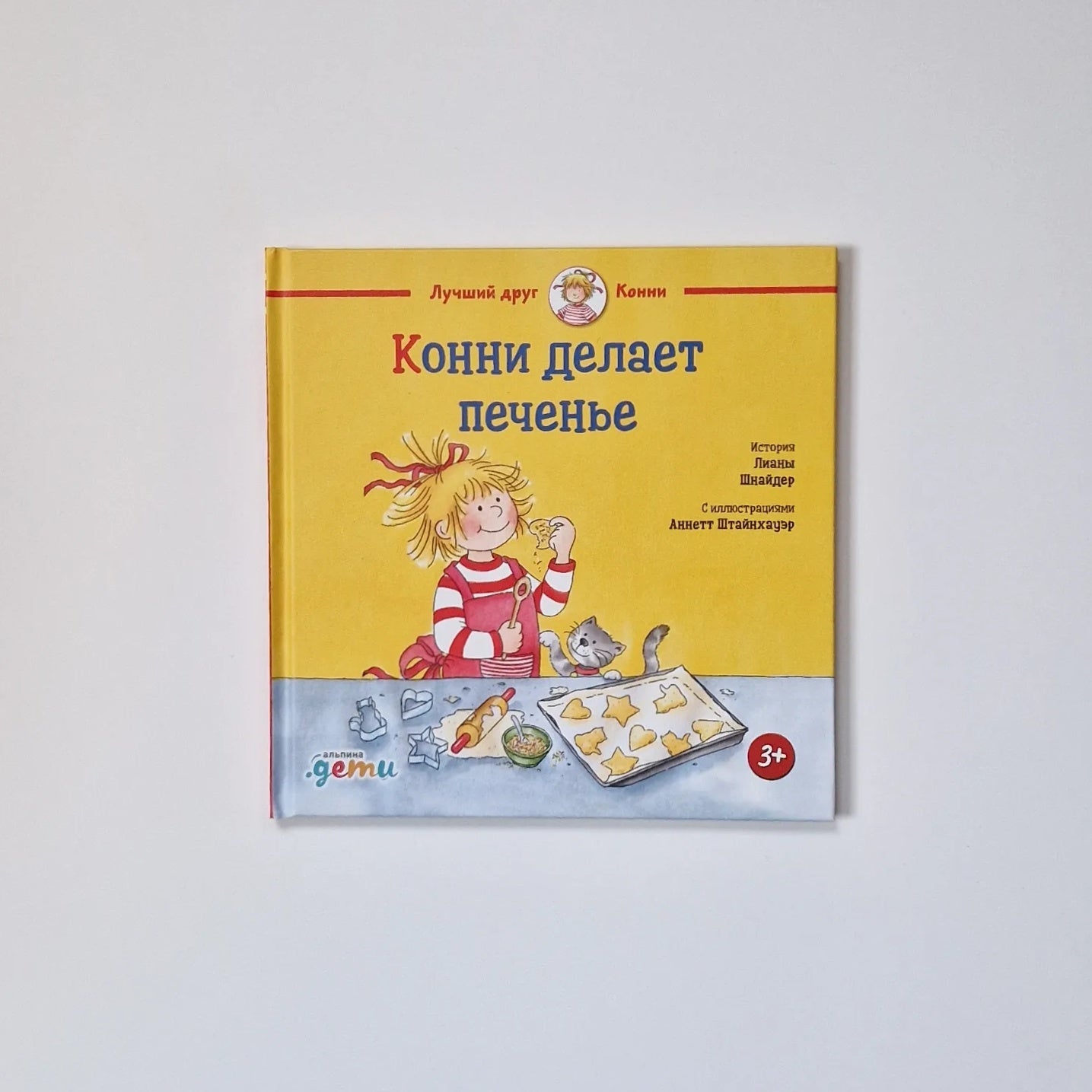 Подходит для детей от 3 лет. Особенно понравится тем, у кого уже есть другие книги серии «Лучший друг Конни» по развитию бытовых навыков, например «Конни готовит пиццу» и «Конни помогает маме».