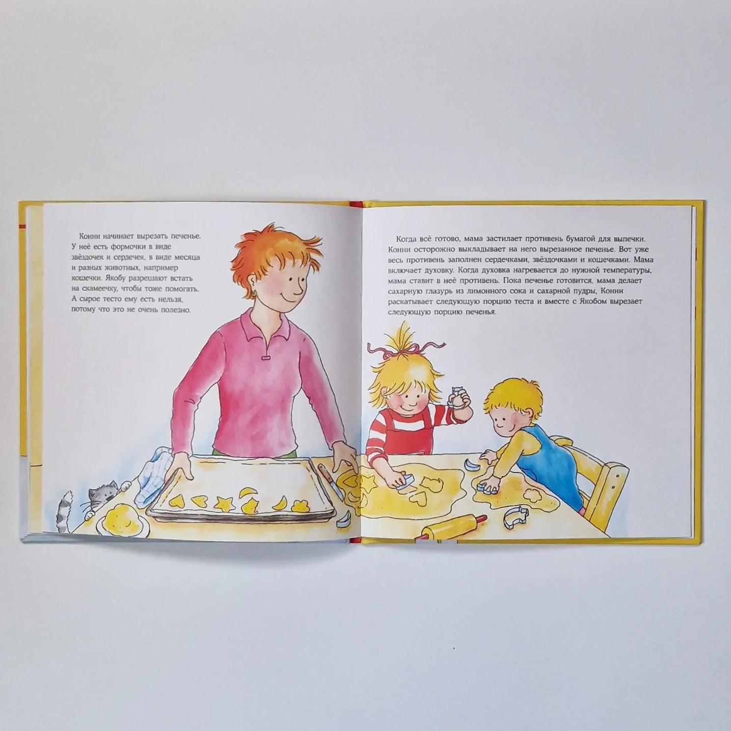 Даже если ваш малыш еще не умеет полноценно готовить самостоятельно, он вполне может помогать вам с простыми блюдами. Как это делает Конни в истории с печеньем.