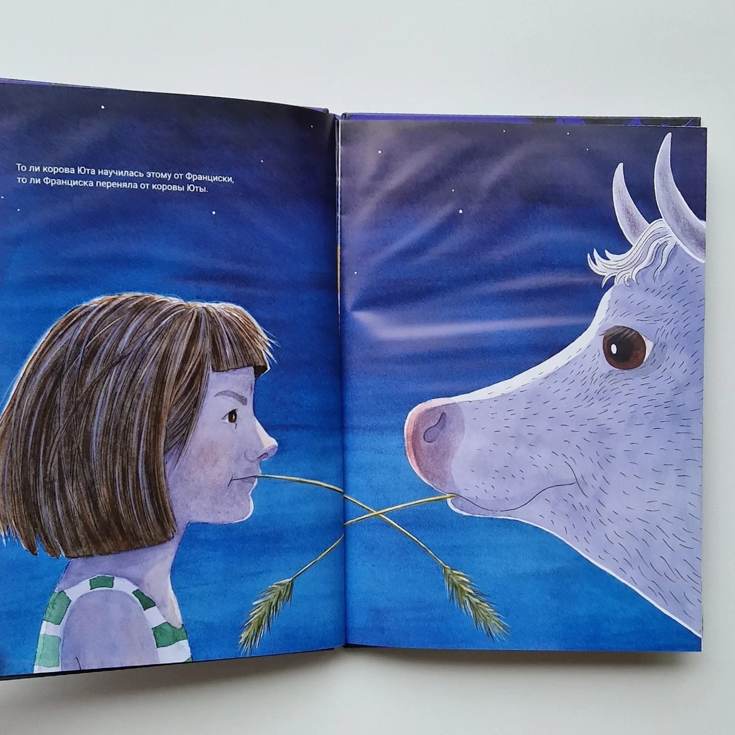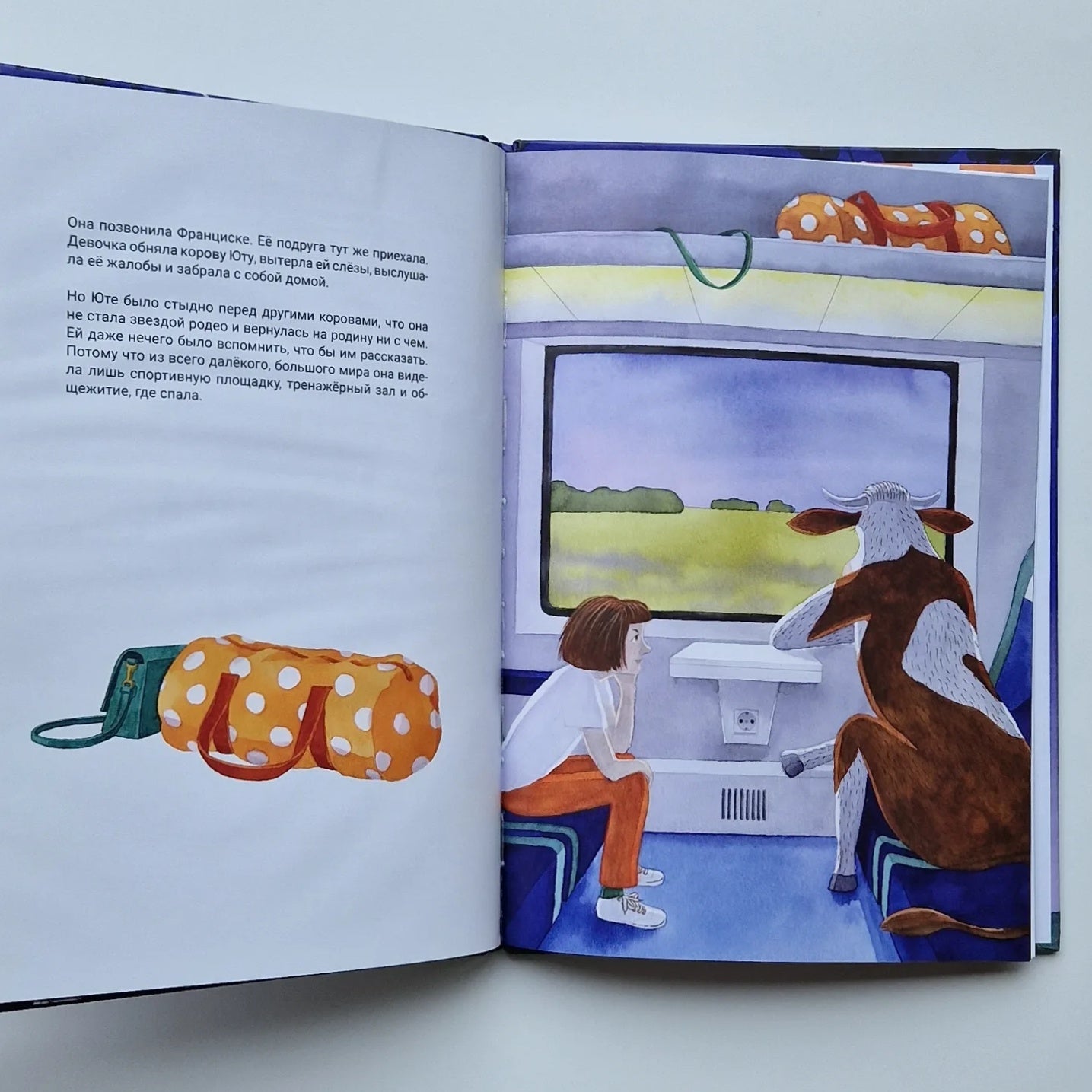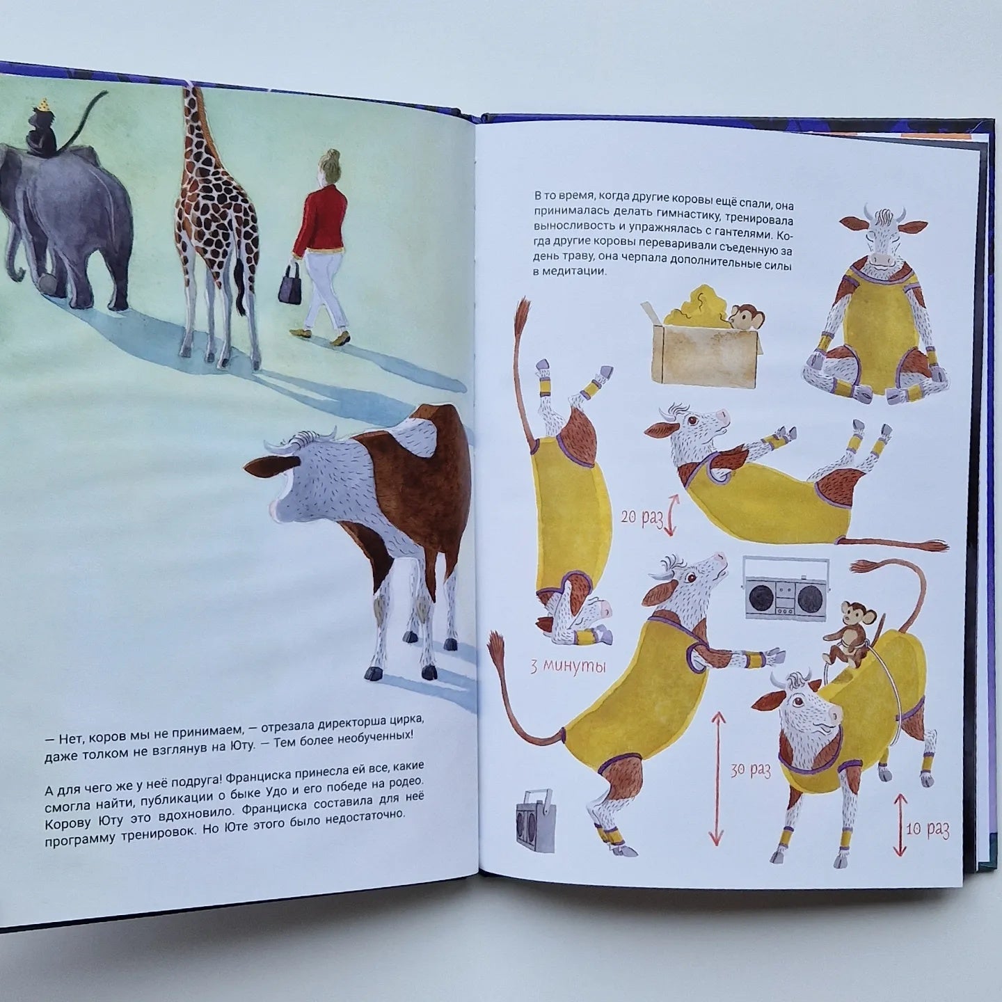 Корова Юта хочет стать прославленной цирковой артисткой и повидать весь мир — точно так же, как знаменитый бык Удо, звезда родео! В конце концов она решает переехать из своей маленькой деревни Лугобург в большой город. Там она тренируется и занимается спортом с раннего утра до позднего вечера. До тех пор пока внезапно этого не становится слишком много. Лучшая подруга Юты, девочка Франциска, решает забрать её и вернуть в деревню. Поначалу Юта разочарована. Но после того, как она регулярно показывала своим друзьям дома все акробатические трюки, которым научилась, слух о «любопытной корове» быстро распространяется. Не успеет она оглянуться, как станет знаменитой у себя в родном краю, — и весь мир приедет в Лугобург! Лиричная и жизненная история, в которой именитый современный немецкий писатель Инго Шульце вместе с отмеченной наградами художницей Ханной Цекау подводят читателей-дошкольников к мысли о том, как важно уметь ценить своё скромное счастье, ведь оно ничем не уступает громкой славе.