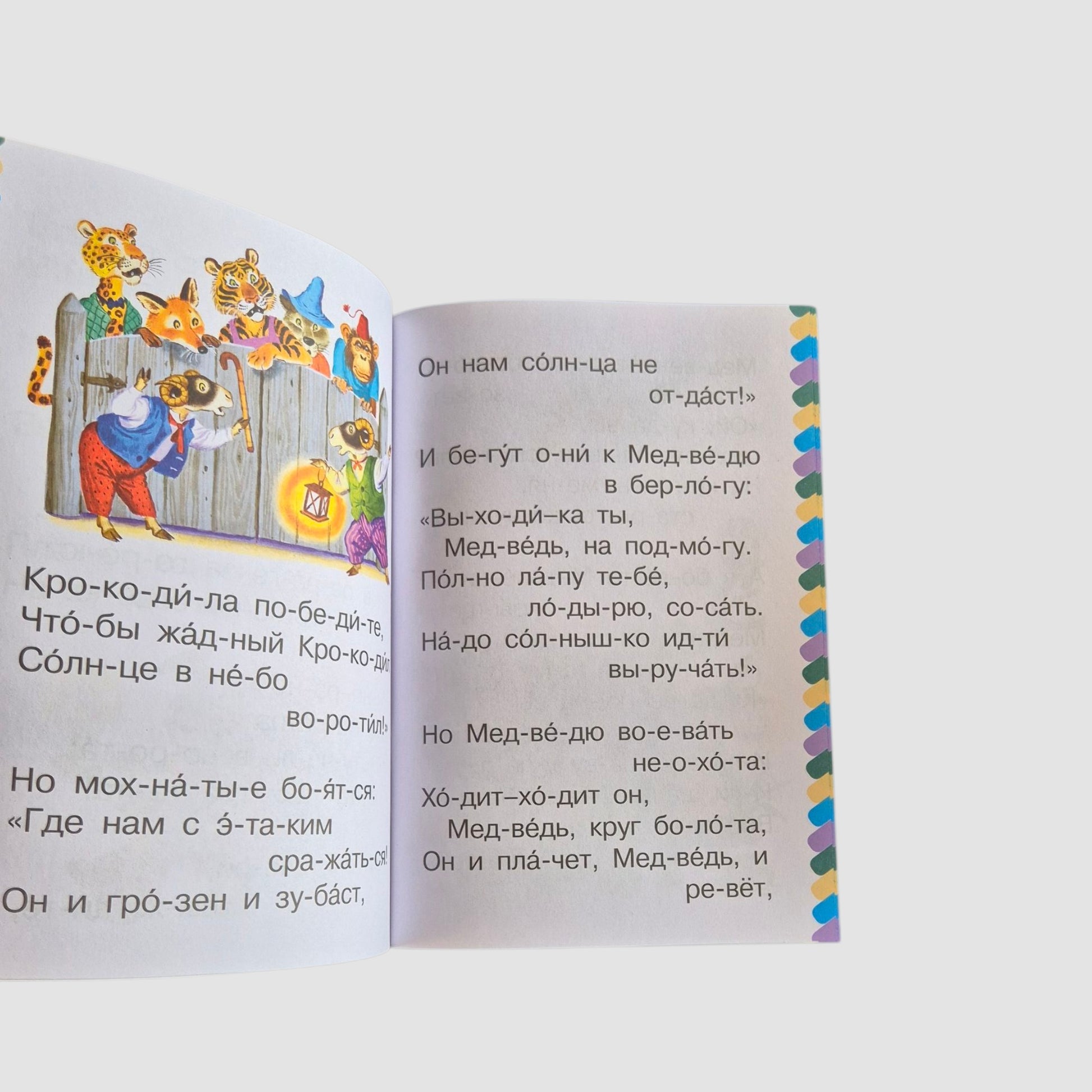 Ваш малыш уже знает буквы и его ручки тянутся к книжкам? Покажите ему серию "Сам читаю по слогам". Это книжки небольшого формата, с большими буквами, и все слова разбиты на слоги с ударениями. В этой серии собраны лучшие произведения современных авторов и классиков детской литературы — С. Маршака, С. Михалкова, Э. Успенского, Г. Остера, В. Сутеева и других знаменитых писателей и поэтов. Каждую книгу маленькие мальчики и девочки смогут прочитать САМИ от начала и до конца. А потом будут гордо говорить: "Вот мои первые прочитанные книжки. Хочу читать ещё!" В этой книге малыши прочитают увлекательную сказку знаменитого детского писателя К. Чуковского "Краденое солнце".