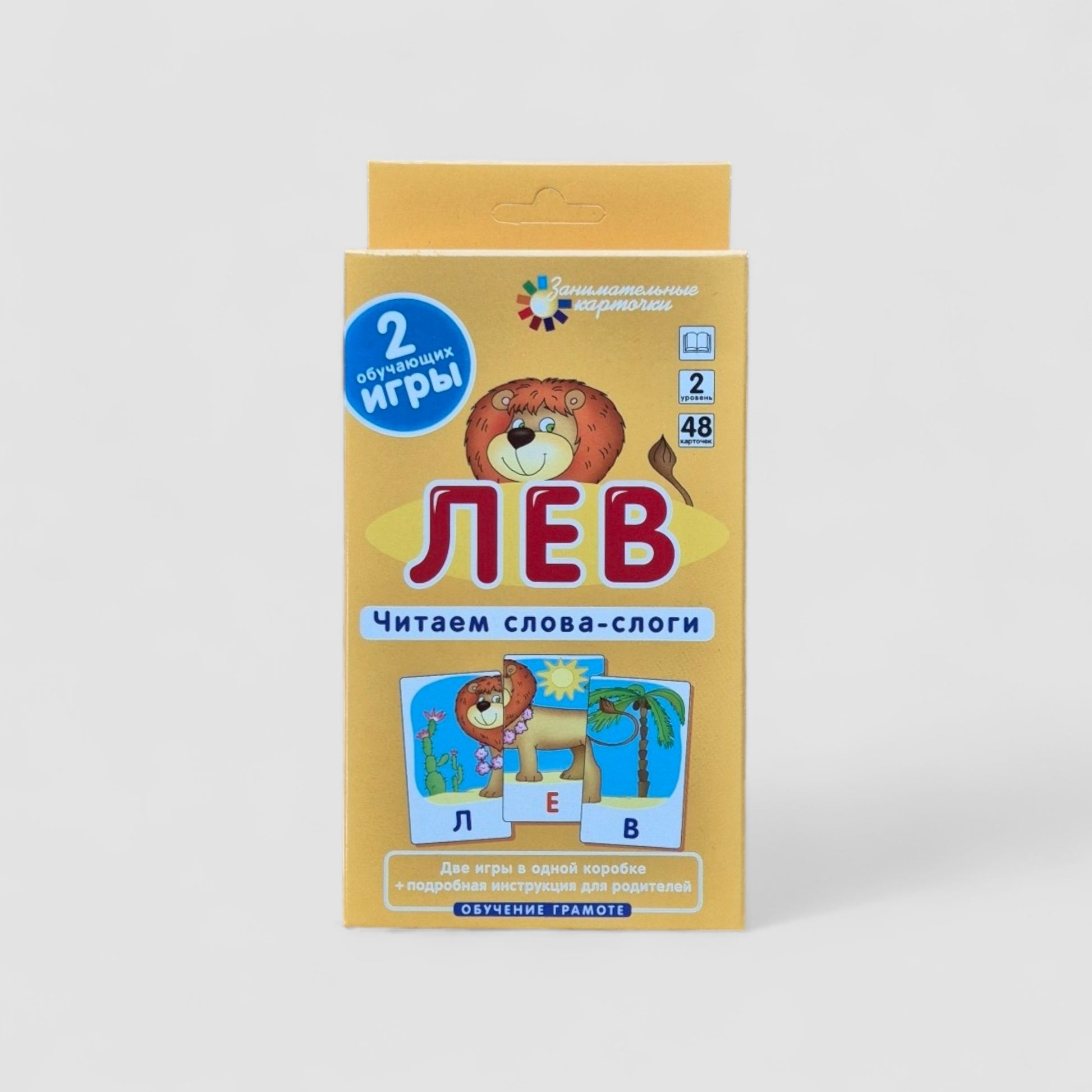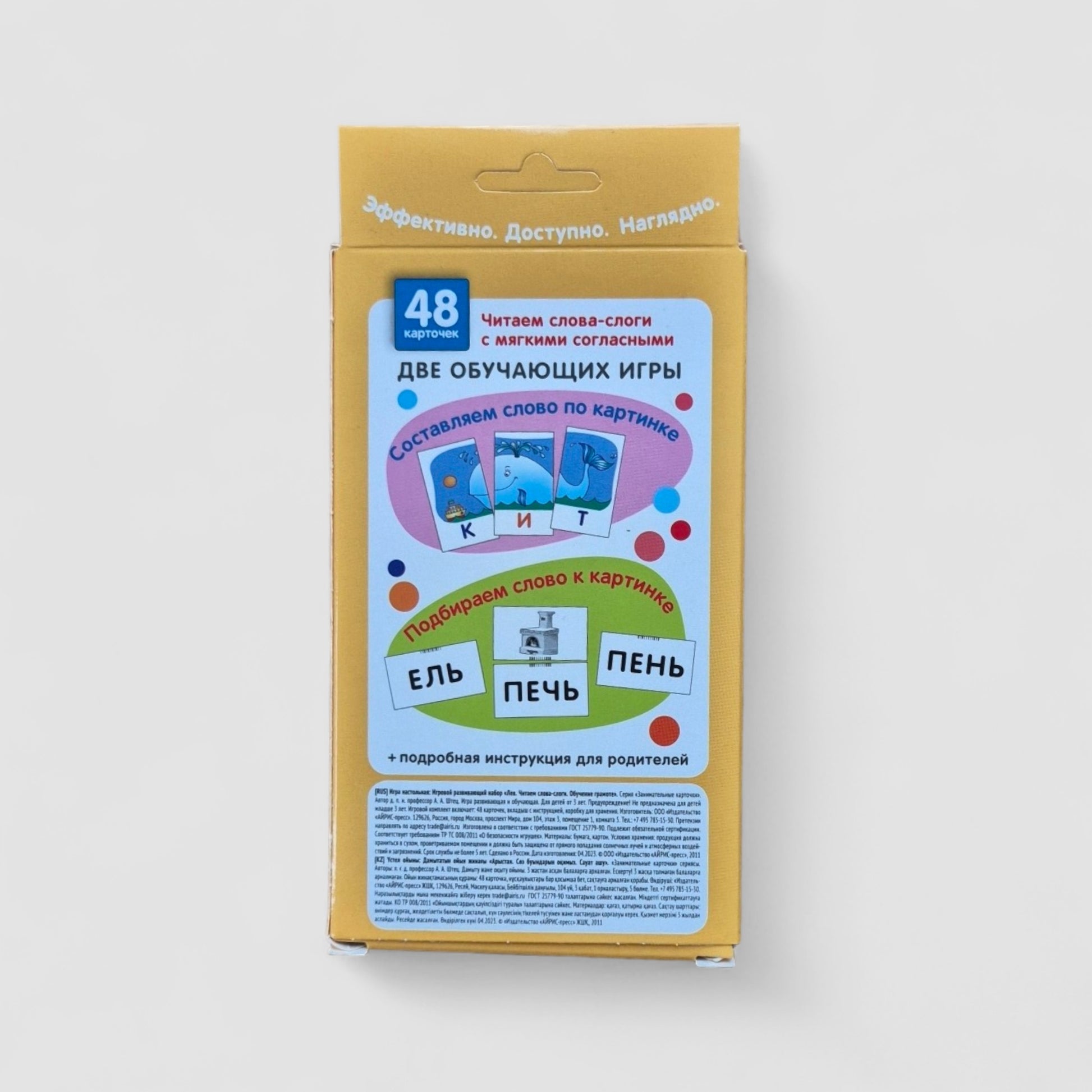 Набор карточек с картинками из серии "Занимательные карточки" входит в состав комплекта по обучению ребенка грамоте. Общее количество карточек в комплекте обеспечивает становление у ребёнка полноценной техники первоначального чтения. Играя с карточками - составляя слова, ребёнок учится читать, запоминает графический образ слова. В данный набор входят 48 карточек, из которых можно составить 16 картинок. Если правильно собрать картинку, получится односложное слово. В игре используется как лицевая сторона карточки, так и оборотная, что позволяет повысить эффективность обучения чтению. Пособие предназначено для занятий с детьми дошкольного и младшего школьного возраста. Используется на втором этапе обучения - чтение односложных слов с твердыми и мягкими согласными.