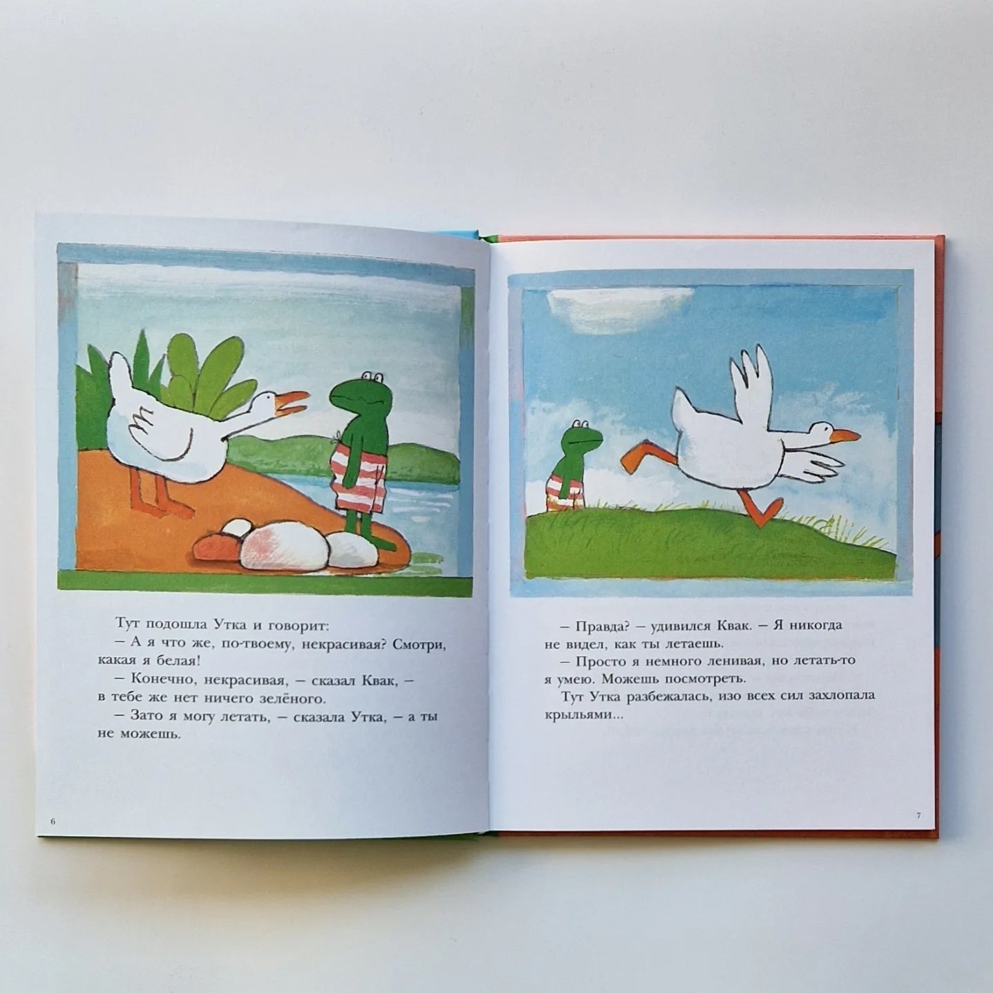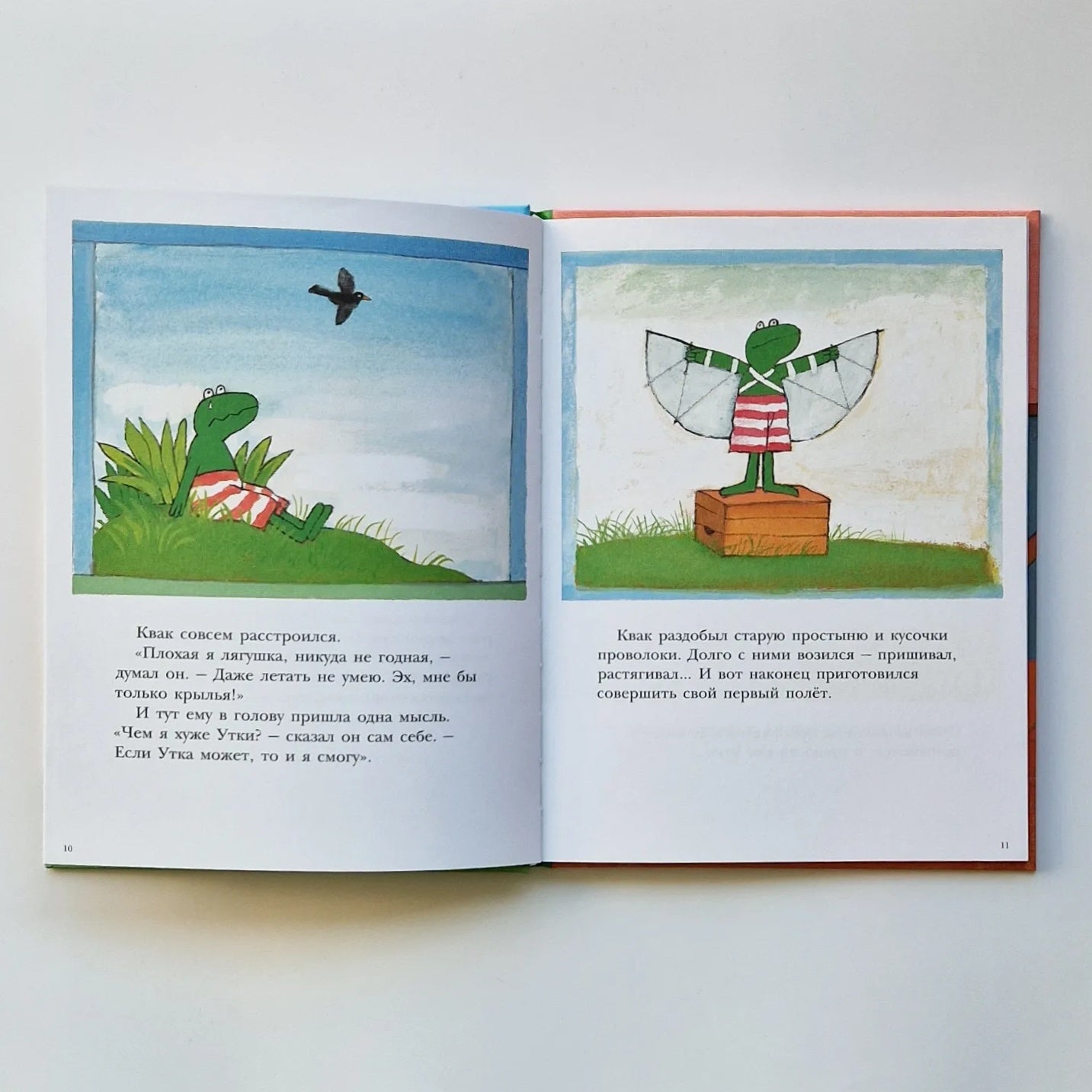 Квак очень рад, что родился на свет зелёной лягушкой. Он гордится тем, что лучше всех плавает и прыгает. Квак уверен, что ему в жизни очень повезло. Но однажды к нему приходит понимание собственного несовершенства: он не умеет летать, как Утка; не умеет печь пироги, как Поросёнок, не умеет мастерить, как Крыс и читать, как Заяц. "Я всего-навсего никудышный глупый лягушонок", - горюет он. К счастью, друзьям удаётся убедить Квака, что они любят его именно таким, какой он есть.