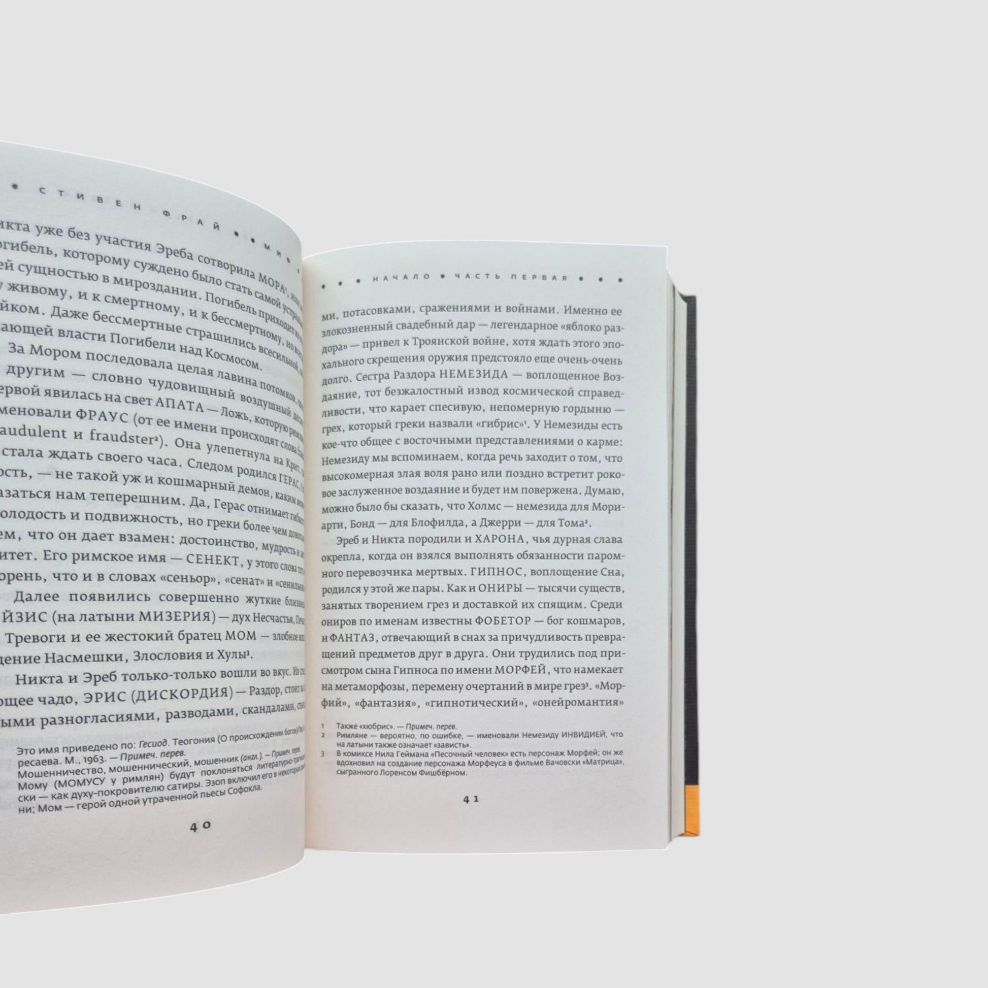 Кто-то спросит, дескать, зачем нам очередное переложение греческих мифов и сказаний? Во-первых, старые истории живут в пересказах, то есть не каменеют и не превращаются в догму. Во-вторых, греческая мифология богата на материал, который вплоть до второй половины ХХ века даже у воспевателей античности - художников, скульпторов, поэтов - порой вызывал девичью стыдливость. Сейчас наконец пришло время по-взрослому, с интересом и здорoво воспринимать мифы древних греков - без купюр и отведенных в сторону глаз. И кому, как не Стивену Фраю, сделать это? В-третьих, Фрай вовсе не пытается толковать пересказываемые им истории. И не потому, что у него нет мнения о них, - он просто честно пересказывает, а копаться в смыслах предоставляет антропологам и философам. В-четвертых, да, все эти сюжеты можно найти в сотнях книг, посвященных Древней Греции. Но Фрай заново составляет из них букет, его книга - это своего рода икебана. На цветы, ветки, палки и вазы можно глядеть в цветочном магазине по отдельности, но человечество по-прежнему составляет и покупает букеты. Читать эту книгу, помимо очевидной развлекательной и отдыхательной ценности, стоит и ради того, чтобы стряхнуть пыль с детских воспоминаний о Куне и его "Легендах и мифах Древней Греции", привести в порядок фамильные древа богов и героев, наверняка давно перепутавшиеся у вас в голове, а также вспомнить мифогенную географию Греции: где что находилось, кто куда бегал и где прятался. Книга Фрая - это прекрасный способ попасть в Древнюю Грецию, а заодно и как следует повеселиться: стиль Фрая - неизменная гарантия настоящего читательского приключения.