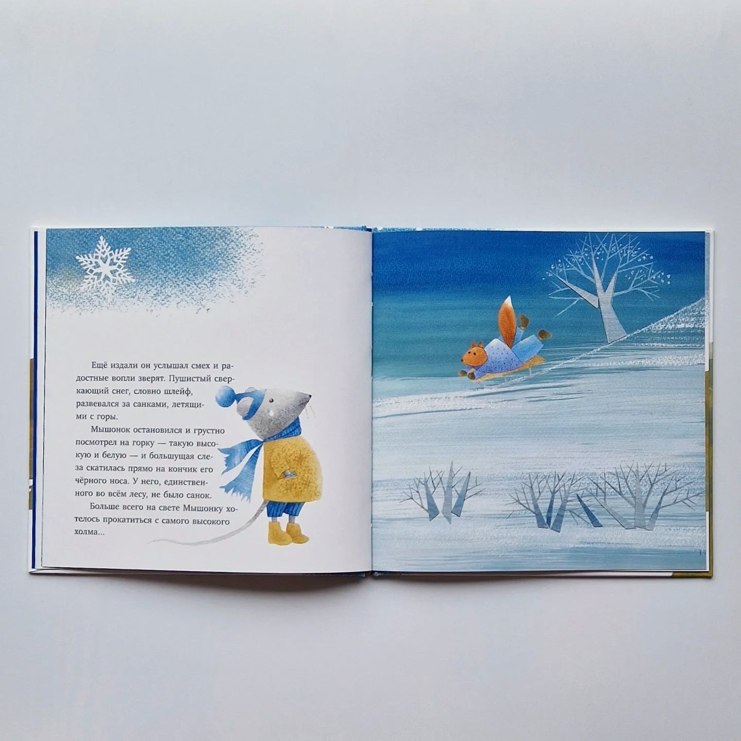 Один лишь маленький Мышонок грустит и печалится. Он единственный во всём лесу, у которого нет санок. Что же ему делать? И тут к нему на помощь приходит старая Черепаха…