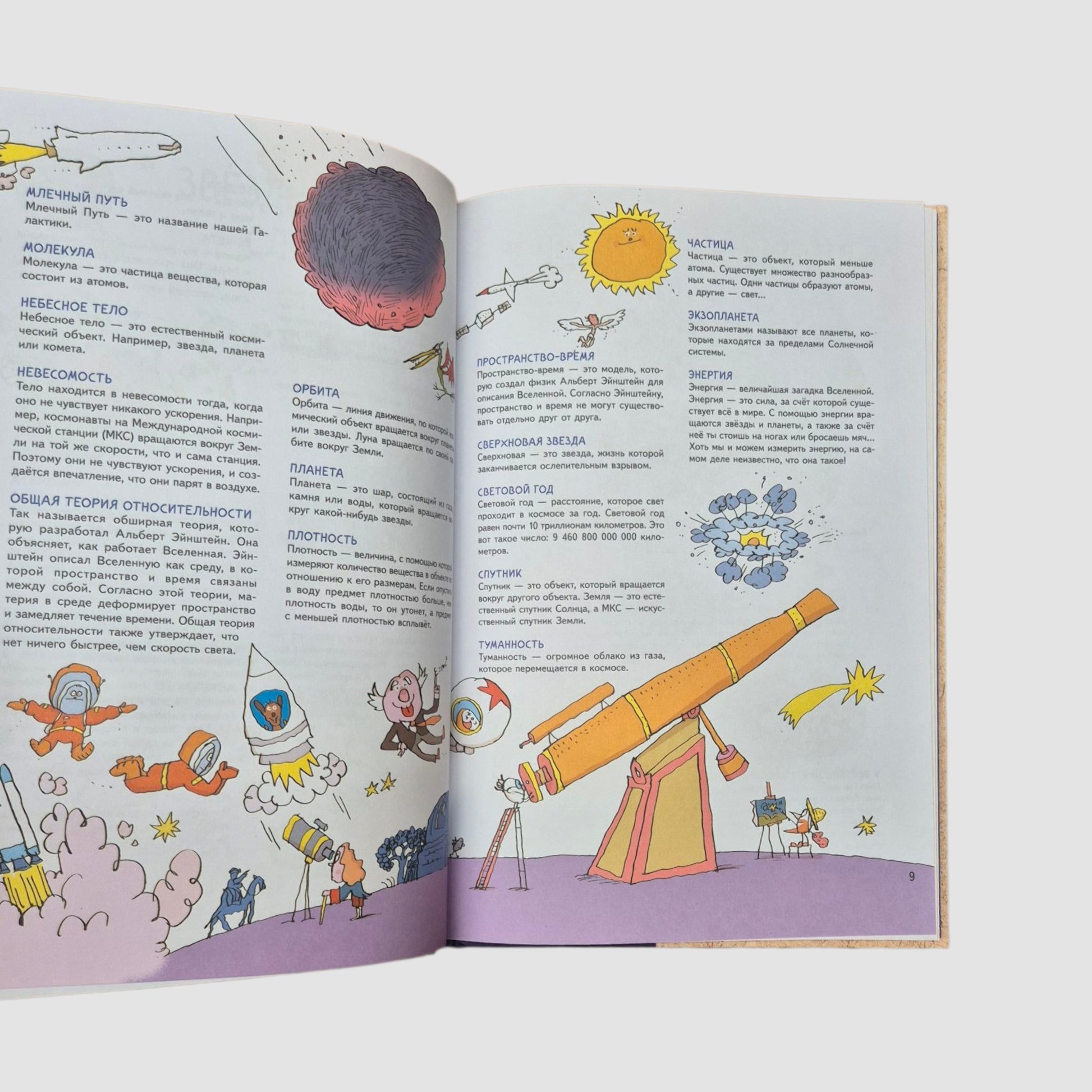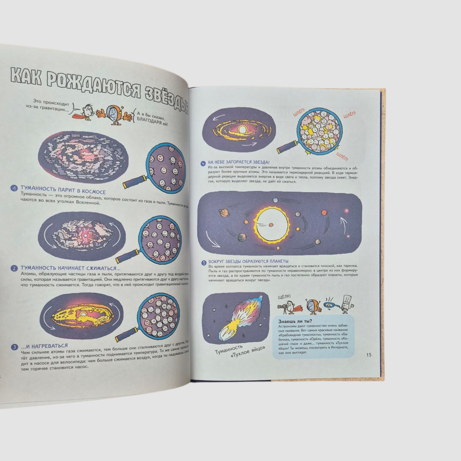 Смешные и подробные иллюстрации Паскаля Леметра не дадут заскучать и подробно пояснят все загадки нашей нескучной Вселенной! Вы готовы к нашему космическому путешествию?