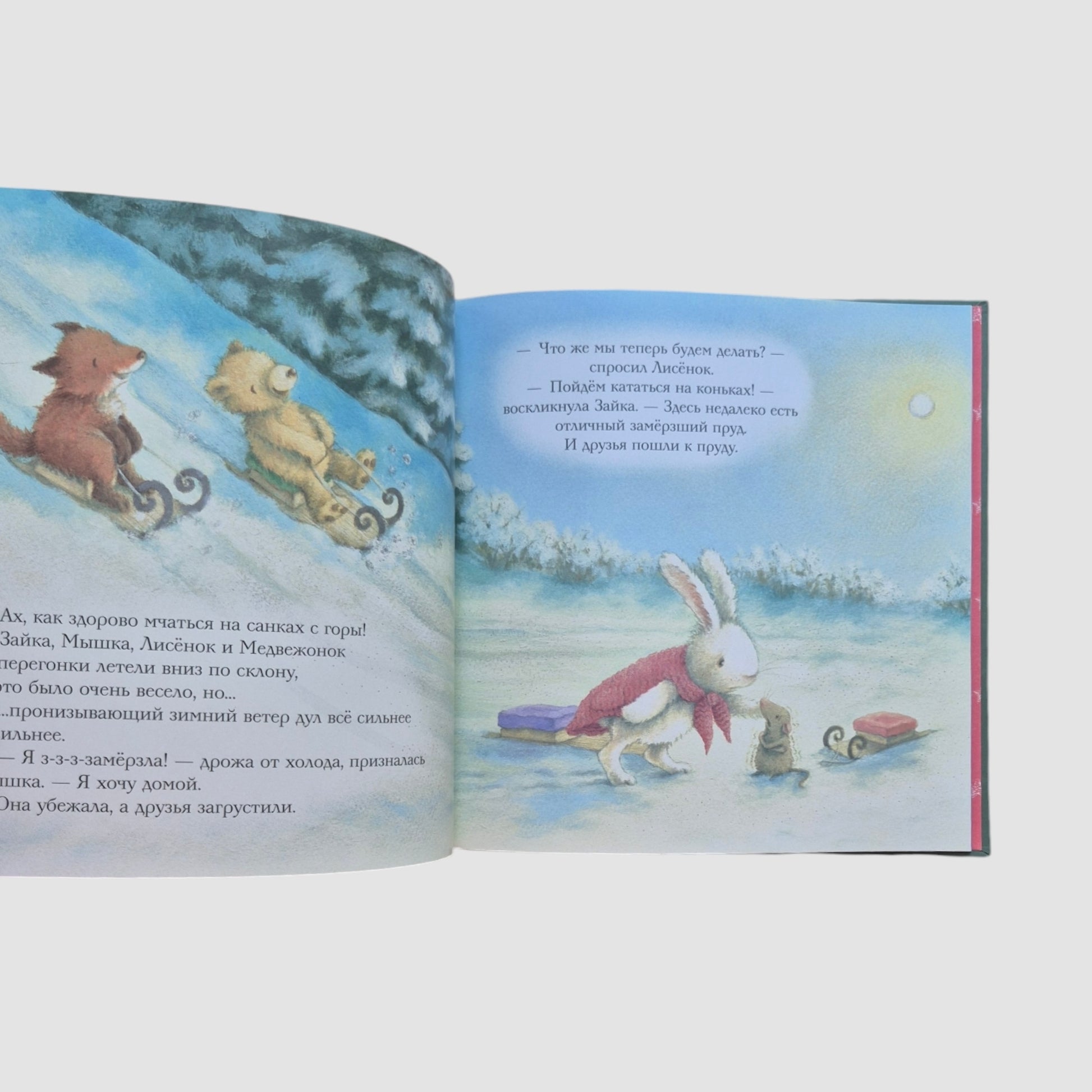 Как весело играть с друзьями в снежки, кататься на коньках и на санках! Но как же быть, если твоим друзьям холодно зимой и они убегают по домам? Маленькая Снежная Зайка обязательно что-нибудь придумает, чтобы никто не скучал в одиночестве!