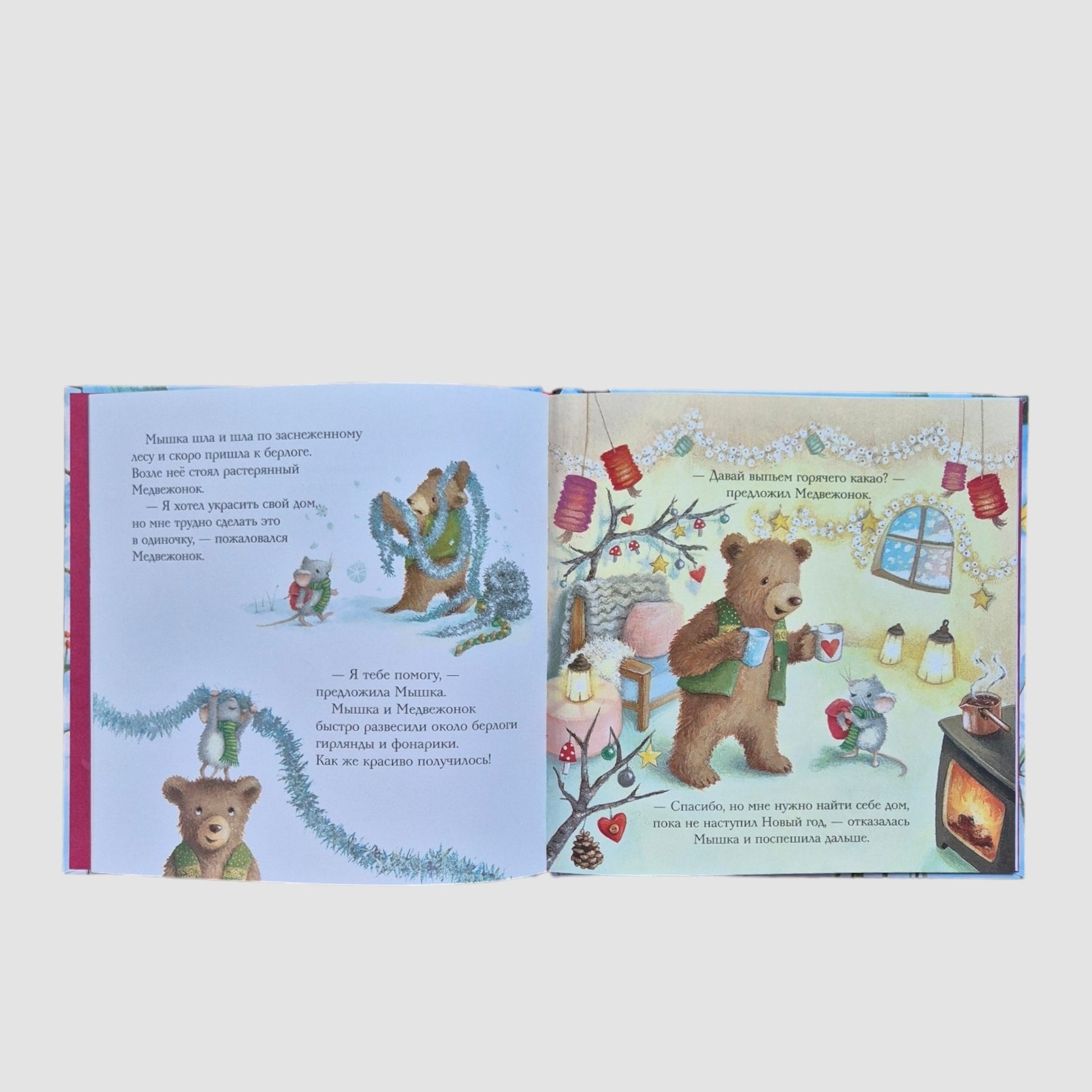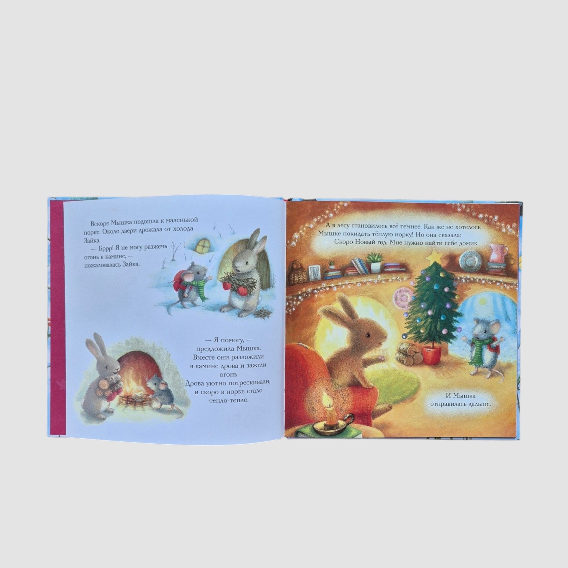 В зимнем лесу все зверята готовятся встретить Новый год. Они украшают свои домики, пекут вкусные пироги и наряжают ёлочки. И только у маленькой Мышки ещё нет своего домика. Кто же ей поможет весело встретить самый чудесный праздник?