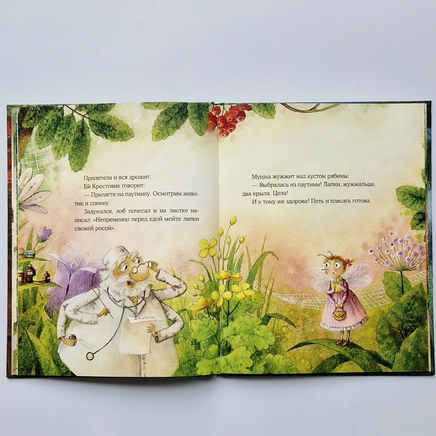 Герой этой замечательной истории - учёный паук. Он открыл свою ПАУКлинику на лесной поляне и всех-всех-всех зовёт на приём. Вот только букашки и жучки боятся идти лечиться к пауку! Но однажды у маленькой мушки разболелось мохнатое брюшко - и как она ни боялась, как ни сопротивлялась, а к доктору лететь пришлось-