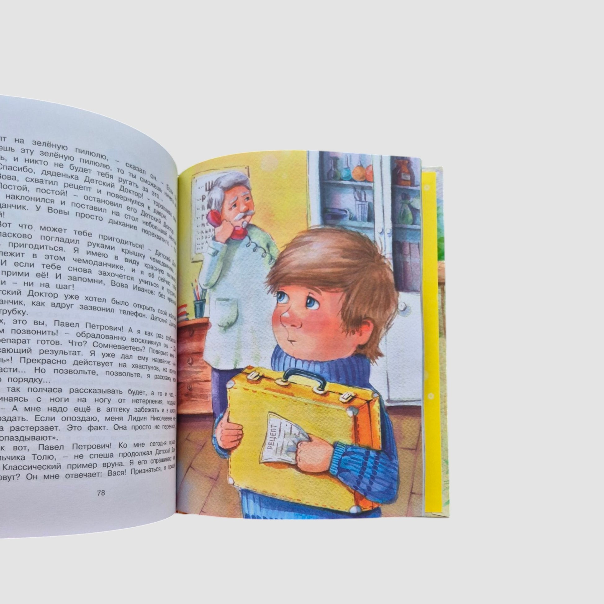 В книгу вошли две сказочные повести замечательной писательницы Софьи Прокофьевой: «Приключения жёлтого чемоданчика» и «Приключения жёлтого чемоданчика-2, или Волшебная пилюля». Они о том, как можно излечить от страха и печали, злости и коварства, глупости и вранья с помощью чудесных конфет, которые хранятся в жёлтом чемоданчике. В творческом багаже писательницы более тридцати книг, они постоянно переиздаются и получили читательское признание не только в нашей стране, но и за рубежом – они переведены более чем на двадцать языков мира.