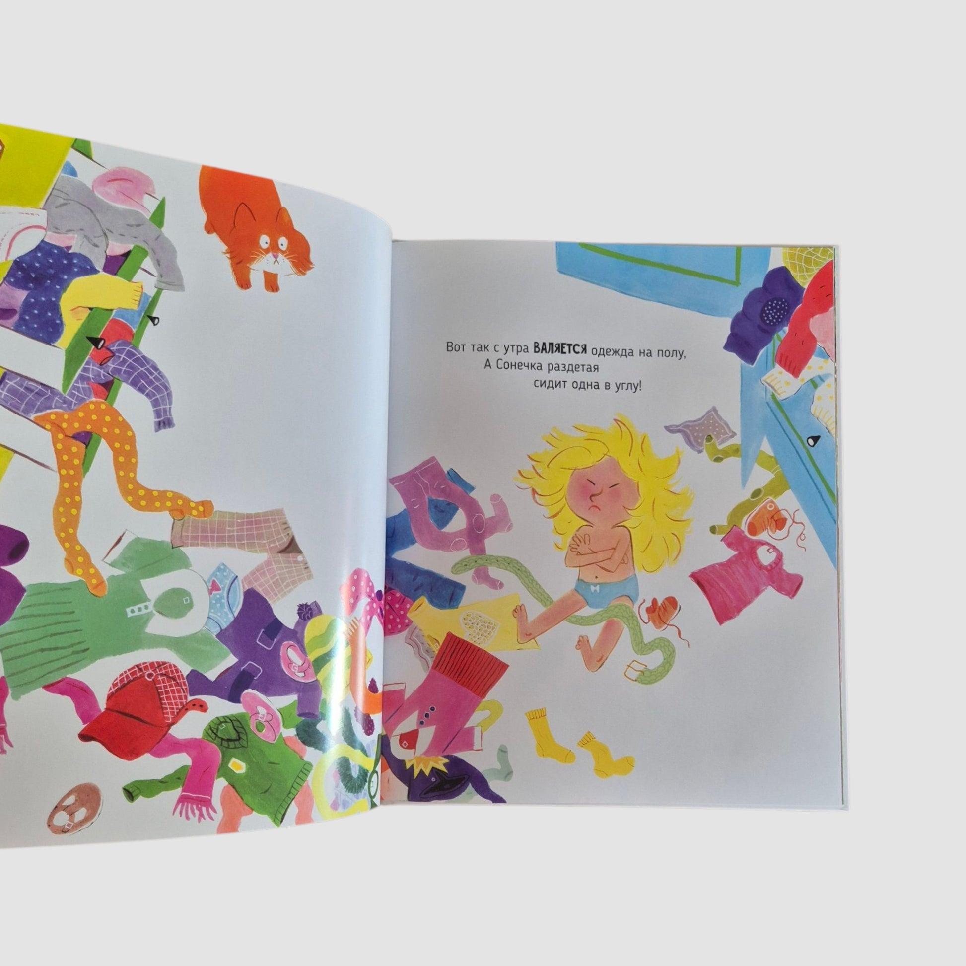 "Сбежавшая одежда" — увлекательная история о том, как вещи могут обидетьсяКаждое утро Сонечка ругает свою одежду. Она совсем не любит ее надевать! Однажды платьица, юбочки, брючки и все-все-все остальные вещи очень обиделись на хозяйку. Ведь девчушка очень плохо обращается с ними! Что будет, если они решат проучить Сонечку?