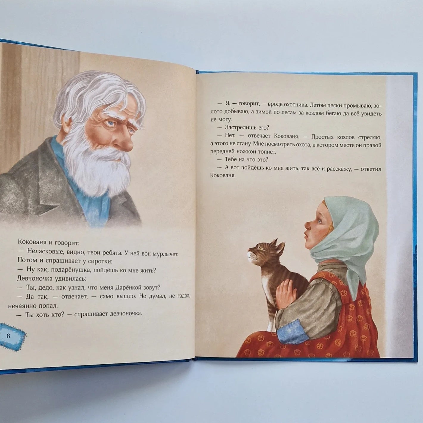 Павел Петрович Бажов (1879-1950) родился на Урале в заводском поселке Сысерть, в семье горного мастера. Детство провел среди старателей и мастеров, добывающих и обрабатывающих малахит и слюду. После окончания духовной семинарии преподавал русский язык в Екатеринбурге, много путешествовал по Уралу, собирал народные былички, легенды и сказки. На этом материале и были созданы знаменитые Бажовские сказы, произведения, в которых неразрывно переплетены правда и вымысел. "Серебряное копытце" - один из самых известных сказов, это история о дружбе маленькой девочки Дарёнки, ее кошки Мурёнки и волшебного существа, имеющего особый дар открывать природные сокровища.