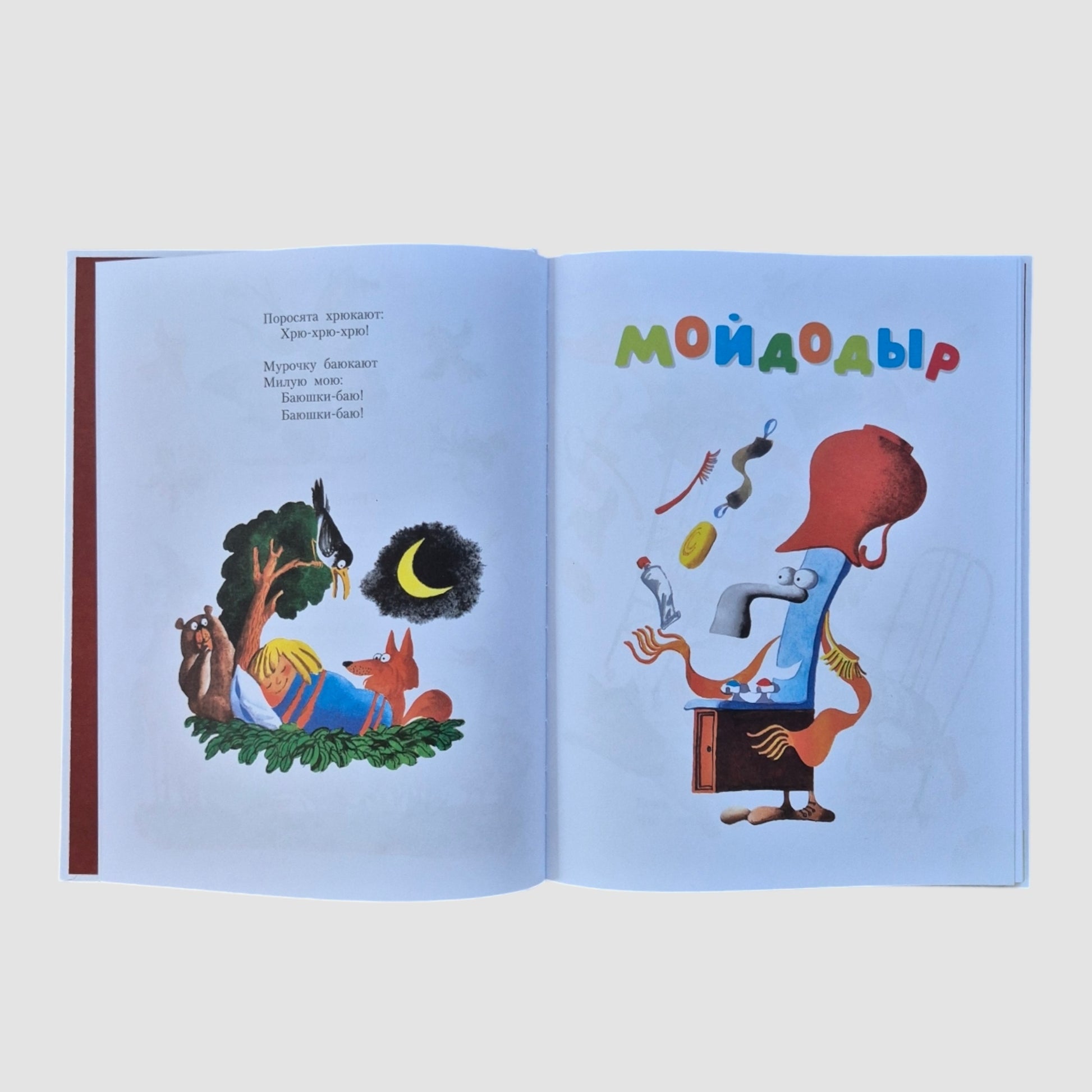 Ты слышал когда-нибудь, как хрюкают котята или мычит воробей? А как кукарекает медведь? Тоже нет? Тогда тебе обязательно нужно прочитать эту книжку. В ней собраны самые лучшие, самые озорные сказки Корнея Ивановича Чуковского — "Путаница", "Телефон", "Айболит", "Муха-Цокотуха" и другие. Иллюстрации к сказкам нарисовал Сергей Алимов. Он — художник-постановщик множества советских и российских мультфильмов. Поэтому и наша книжка получилась такой яркой, весёлой и динамичной — как самый настоящий мультик!