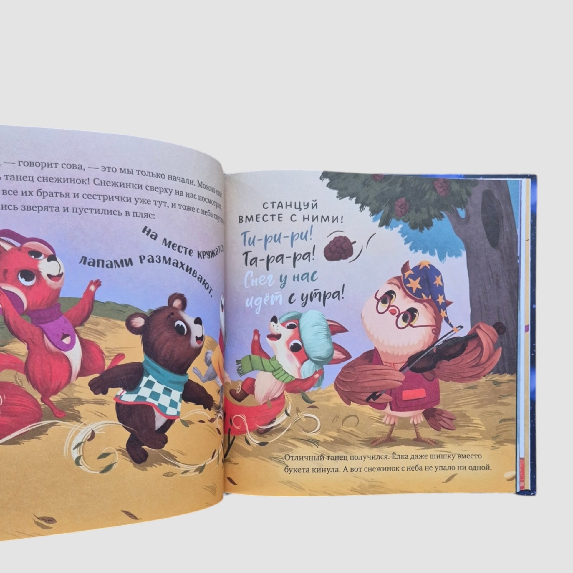 Новый год уже почти наступил, а снег в лесу так и не выпал! Чтобы помочь зверятам, маленькому читателю нужно будет спеть песенку про снег, станцевать танец снежинки и даже пощекотать тучку. А потом, конечно, порадоваться долгожданному снегопаду!