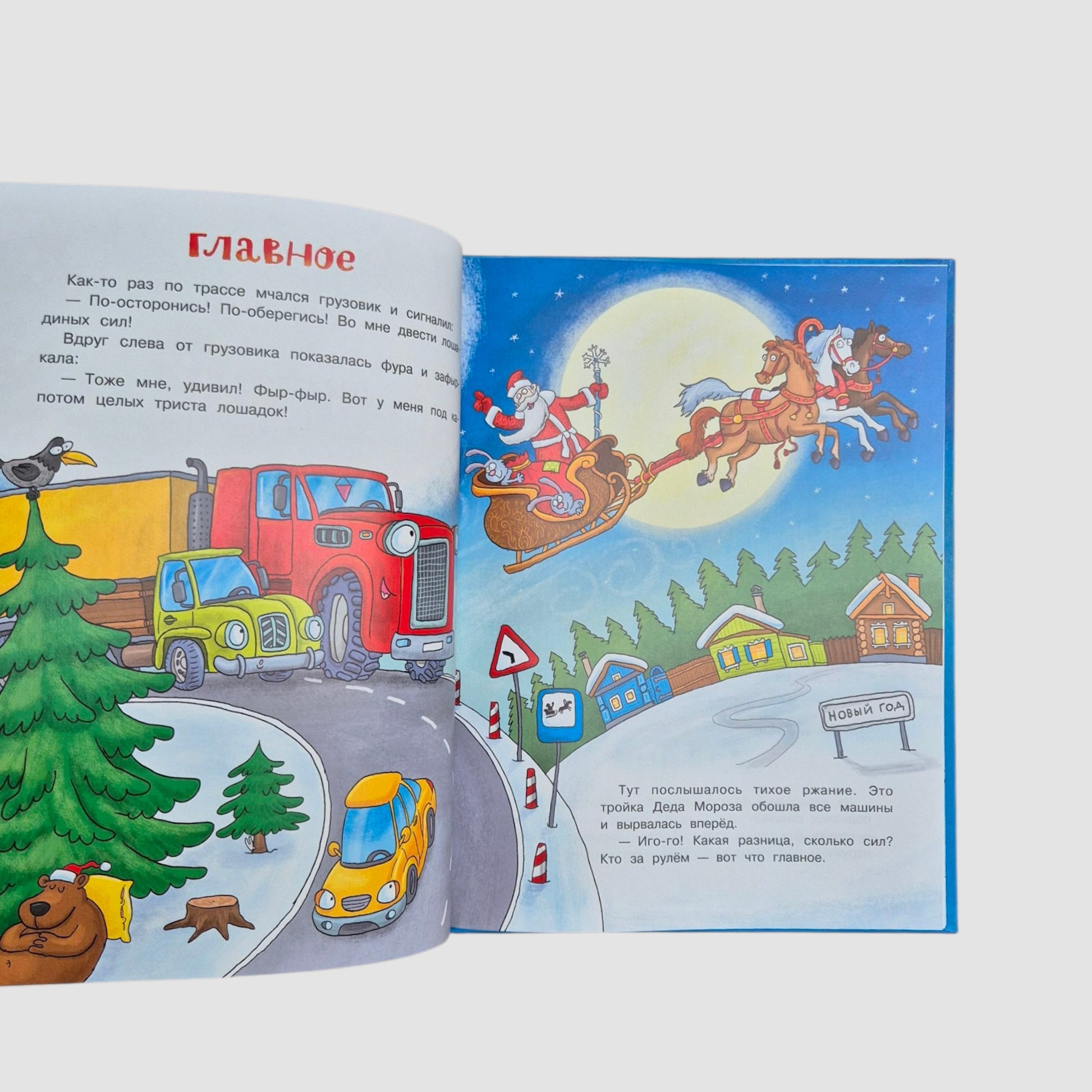 Встречают ли машинки Новый год? Конечно! Почтовая машина возит письма Деду Морозу, автокран украшает елку, а тягач помогает развезти гору подарков. Впереди зимние каникулы - а значит, утренник, маскарад и даже дискотека! Машинки наряжаются в мишуру и - на старт, внимание, марш! Кто быстрее доедет до Нового года?