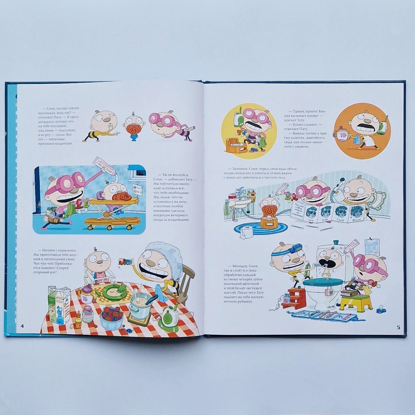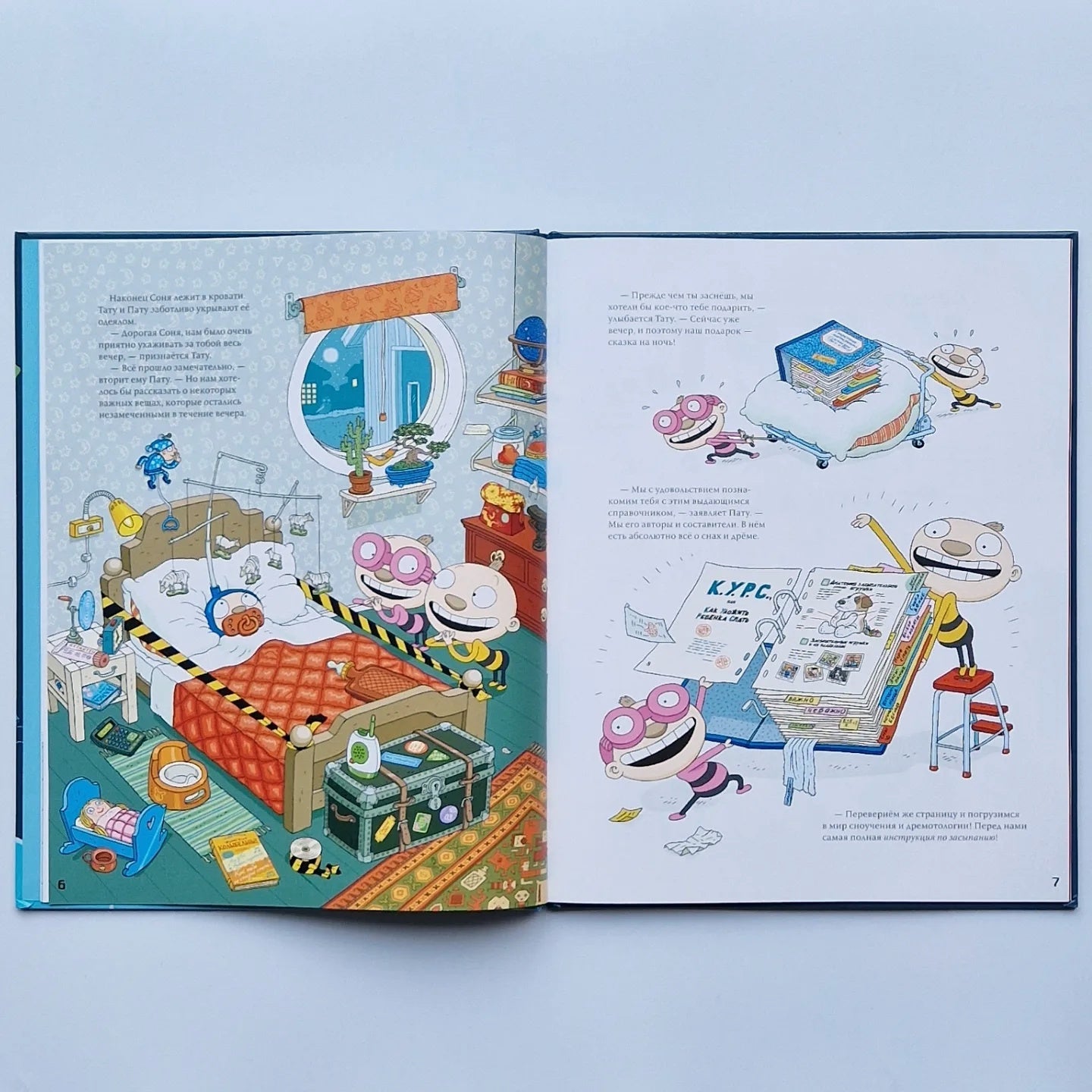 В гости к Тату и Пату приходит племянница Соня, и братья придумывают тысячу разных способов, как уложить малышку спать. Они даже составили специальный справочник: в нём рассказано, как выбрать идеальную игрушку для засыпания, что произойдёт, если долго не ложиться спать, почему родителям можно не спать до поздней ночи, а детям - нет, и многое другое.