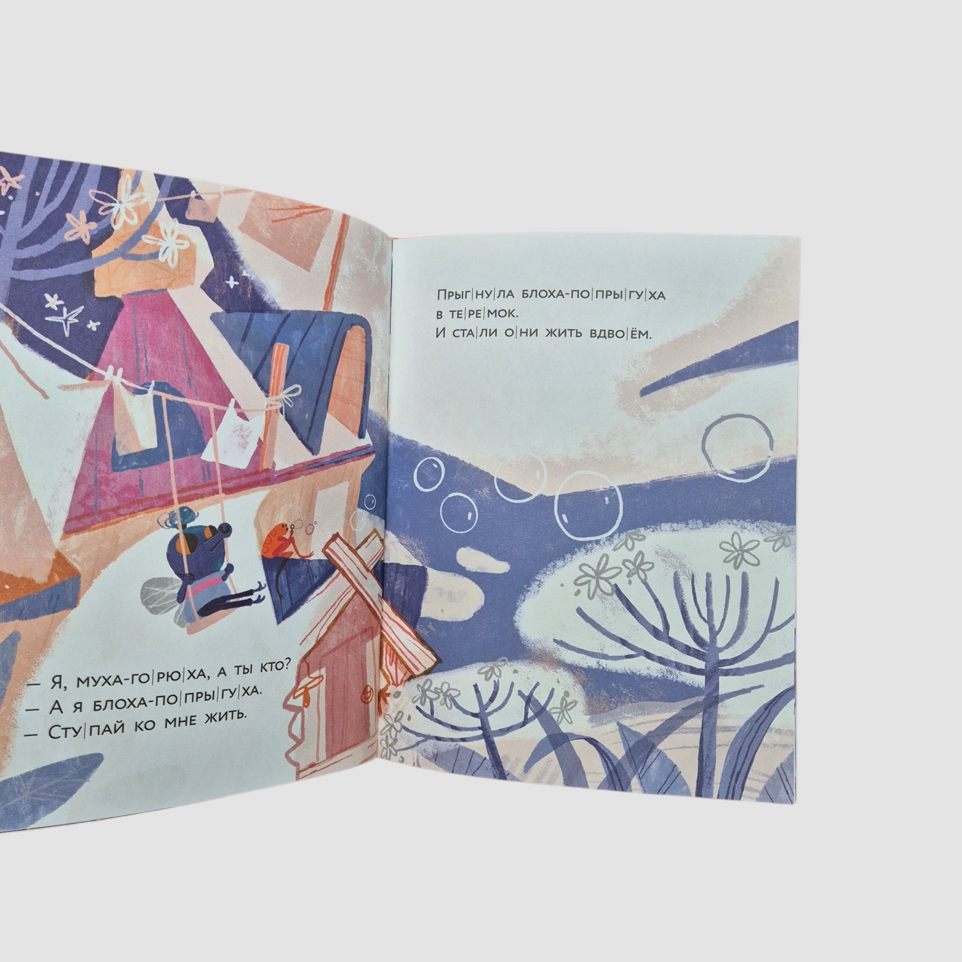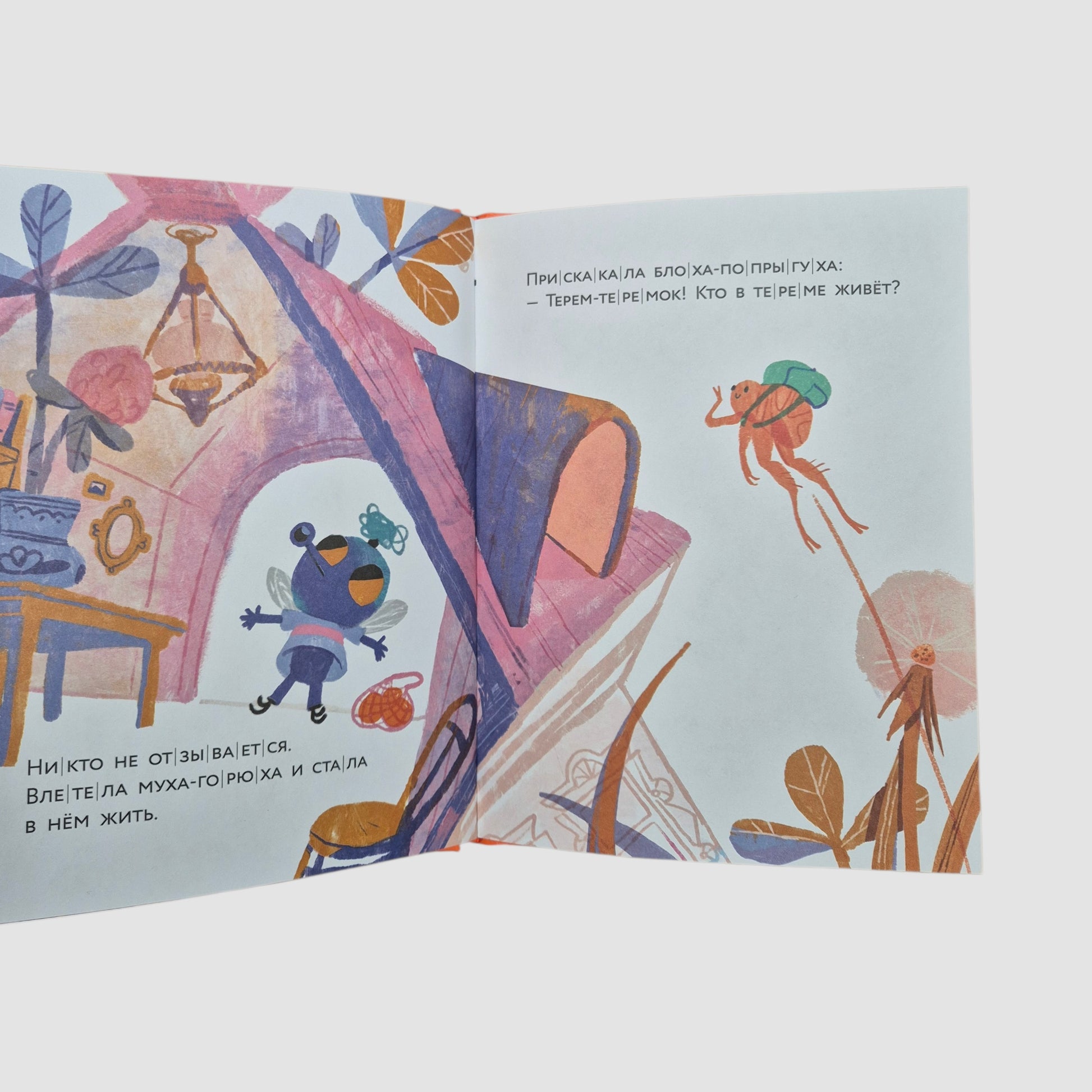Это сказка о том, как в маленьком теремке поселились самые разные животные: муха, блоха, комар, мышка, зайчик, лягушка и даже лиса с волком. И жили они дружно и весело, пока не пришёл медведь...
