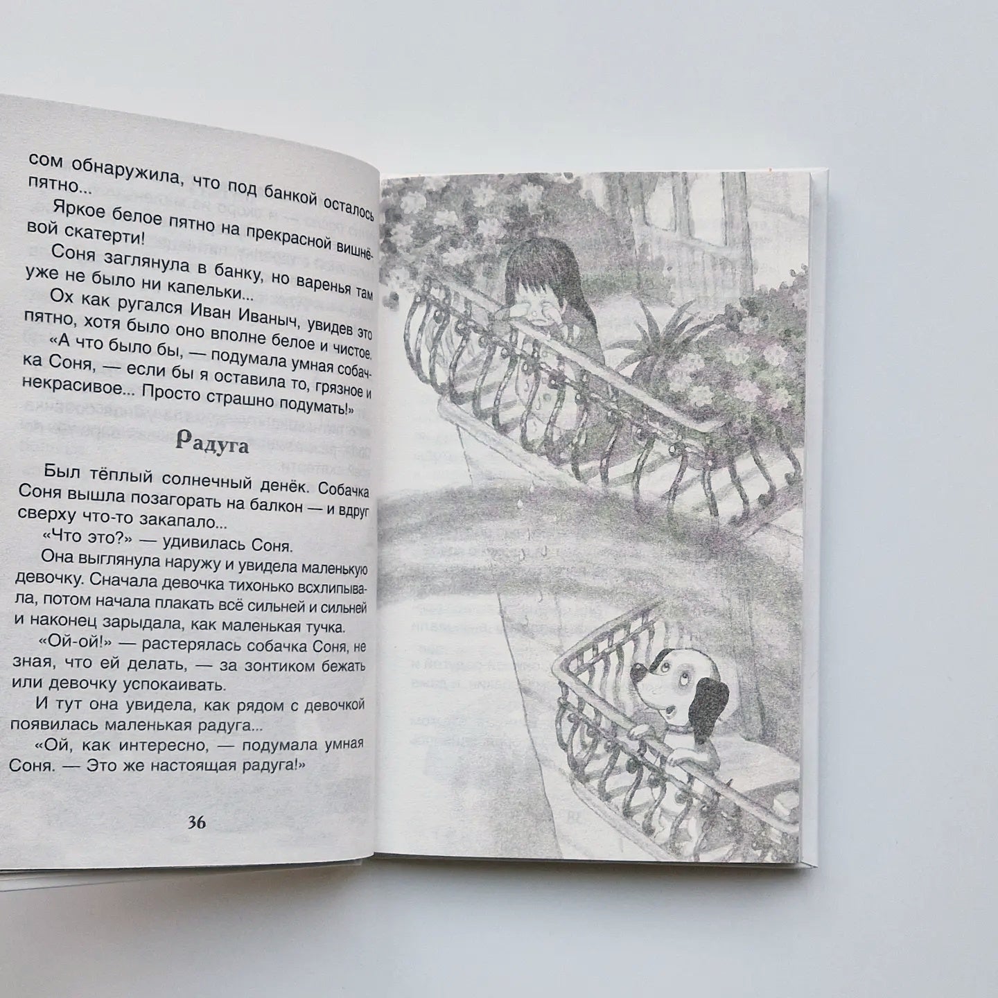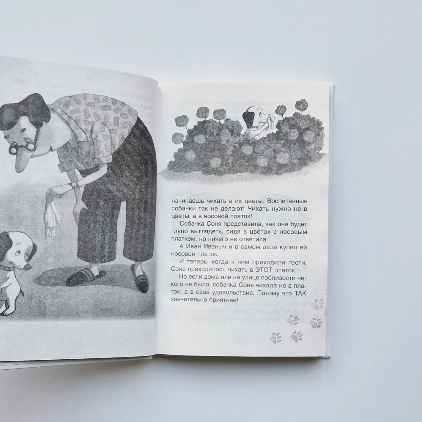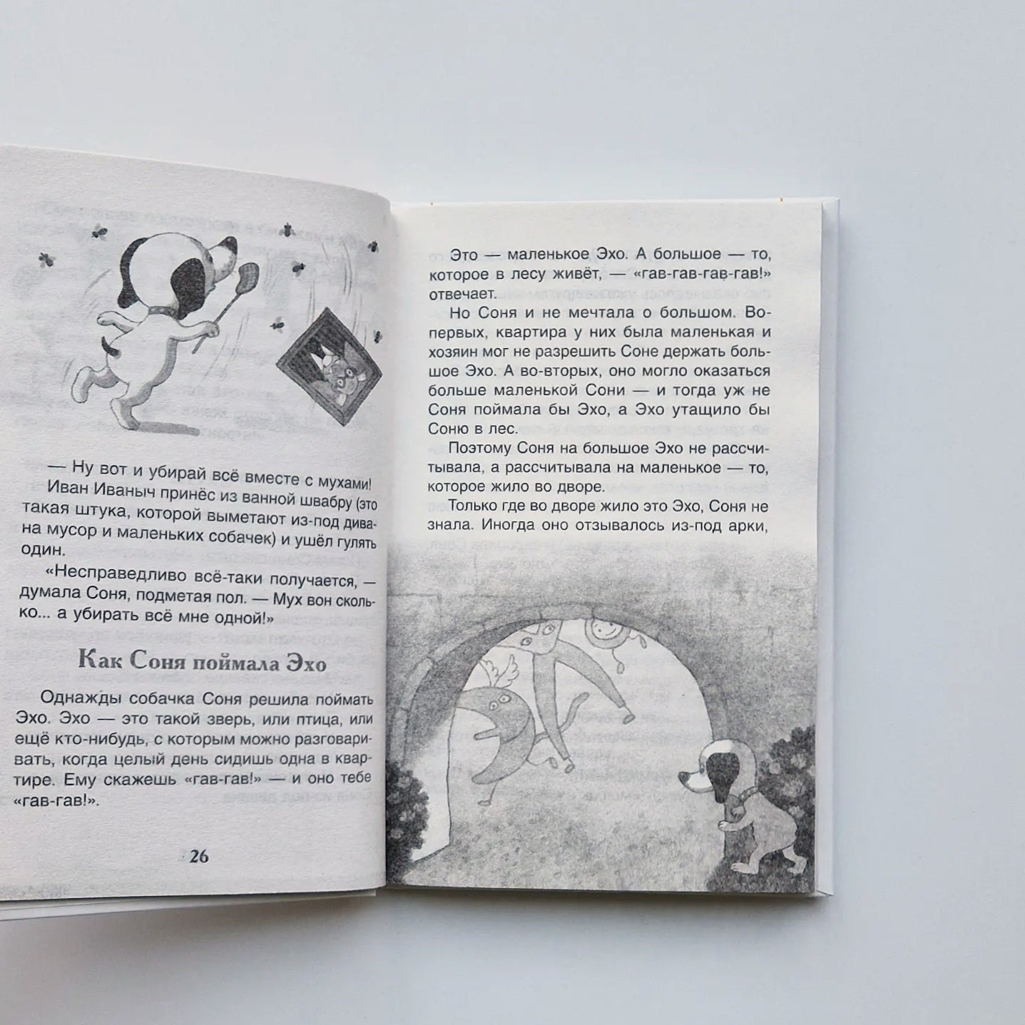 Собачка Соня очень умная собачка. Почему? Да потому, что она обо всем раздумывает, а если много думать, то непременно станешь умным. Но несмотря на ее раздумья, а может, из-за них, она постоянно попадает в самые забавные ситуации. В книгу вошли: «Умная собачка Соня» и «Знаменитая собачка Соня».