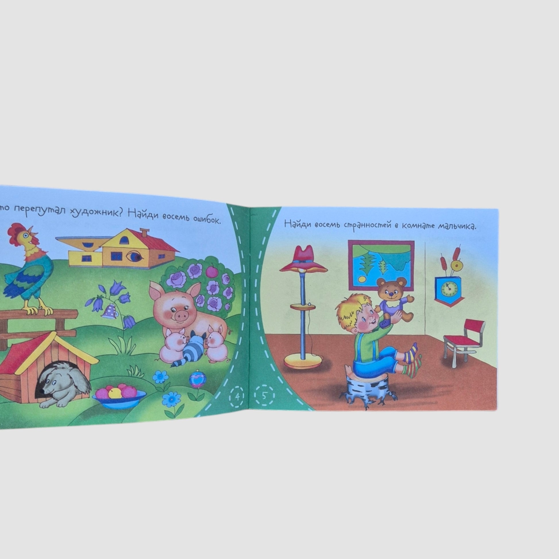 В этой книжке собраны весёлые рисунки, в которых художник допустил ошибки. Вооружившись карандашами или ручкой, ребёнок сможет исправить их прямо в книге.