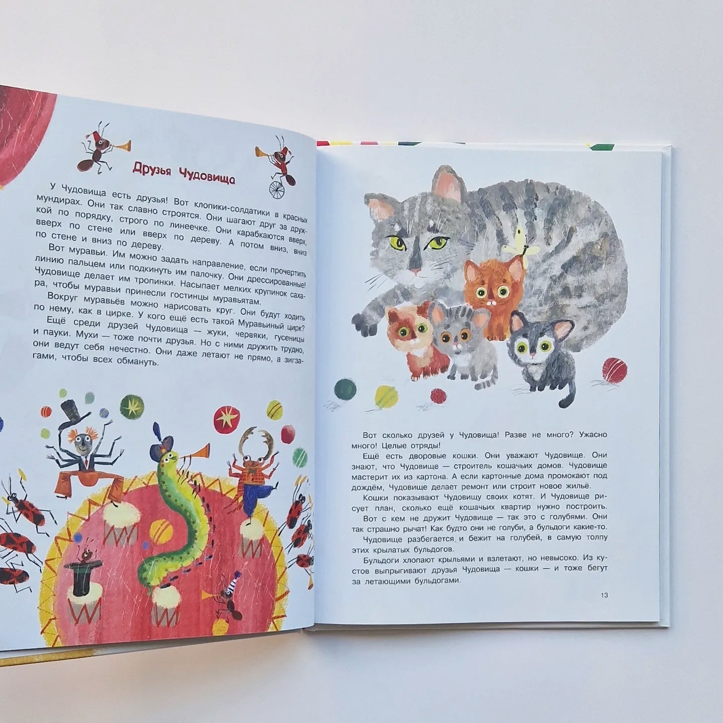 Когда раздается топот, и гром, и треск! Когда пол ходит ходуном, стулья ломаются сами собой, а ковры сворачиваются в трубочку! Когда в ванной разливается настоящее море, дедушка спасается бегством, а соседи покрепче прикручивают люстру к потолку! Тогда в квартире номер пять начинается большой тарарам или обычное утро небольшого пятилетнего Чудовища. Хорошо, что бабушка у него самая храбрая: только она знает, как совладать с чудовищными порядками. Но даже ей иногда очень хочется, чтобы Чудовище научилось вести себя прилично. Для начала всего-то и нужно - попробовать улыбнуться!Веселые, жизнерадостные и мудрые истории Кристины Стрельниковой и невероятно обаятельные и озорные рисунки Ирины Гавриловой расскажут о том, что в детстве надо быть чудовищно счастливым - и никак иначе. Рукопись Кристины Стрельниковой “Чудовище улыбается” получила специальный приз в Открытом читательском голосовании конкурса “Новая детская книга”.