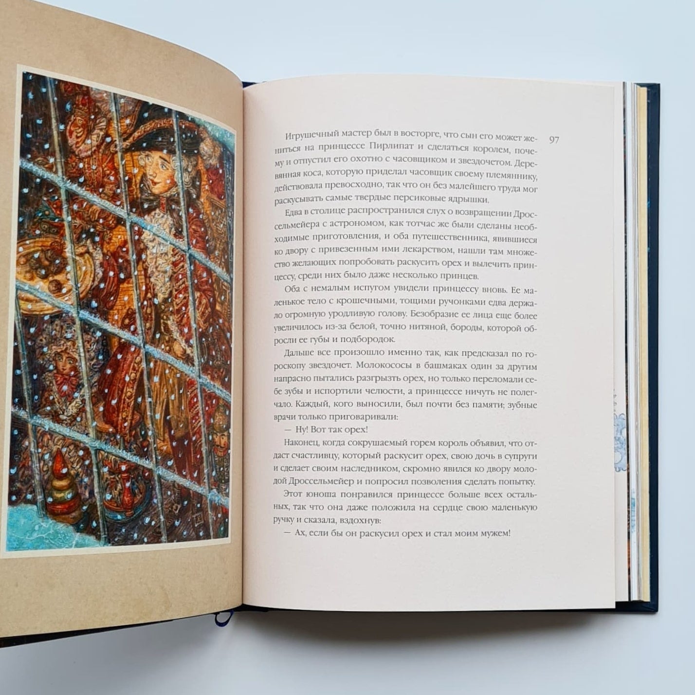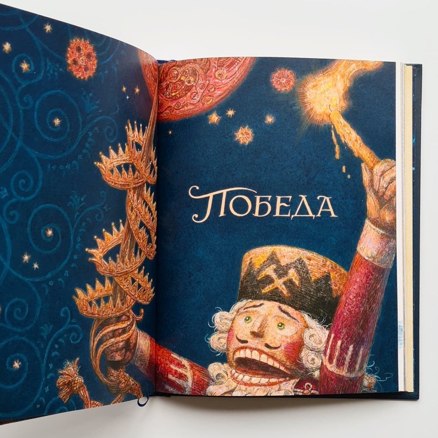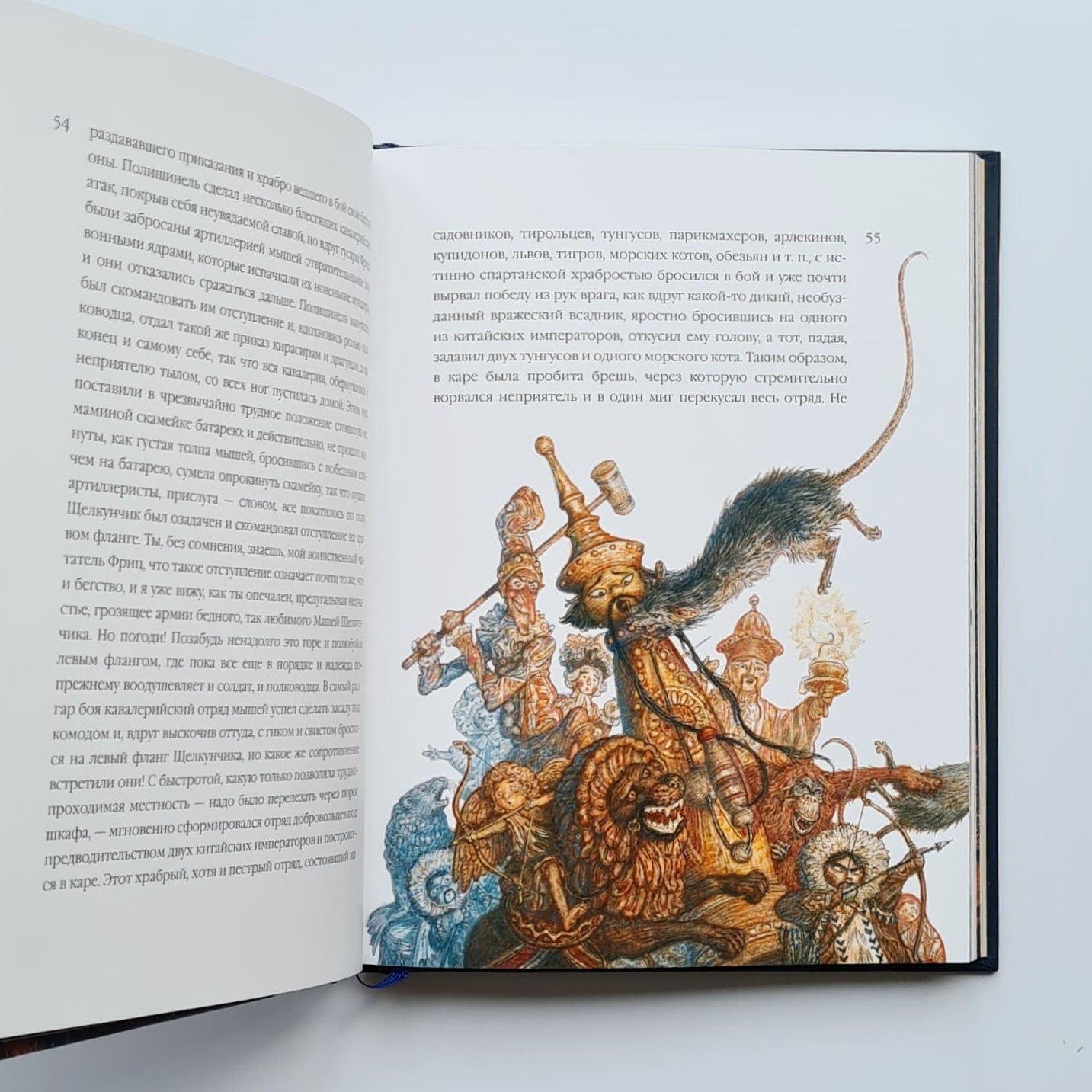 Два века назад увидела свет чудесная рождественская сказка о девочке Мари, ее кукле Щелкунчике и коварном мышином короле. Для детей «Щелкунчик» — это повесть о прекрасном принце и волшебной стране, для взрослых — история взросления. За два столетия краски гофмановской истории ничуть не потускнели, и книга, которую вы держите в руках, — ярчайшее тому подтверждение. Добрая и преданная Мари, чудаковатый крестный Дроссельмейер, доблестный Щелкунчик и гадкий мышиный король — все они обретают новую жизнь, подаренную им талантливым иллюстратором Антоном Ломаевым. Золотистое пламя рождественских свечей и бархатистые зимние сумерки, фантастические наряды, кружащиеся снежинки, симпатичные и мрачноватые лица, множество крошечных деталей, создающих мистическую и праздничную атмосферу, — эти иллюстрации завораживают, и от них невозможно отвести взгляд. Неповторимый и узнаваемый стиль Антона Ломаева словно создан для великого немецкого романтика — фантазия художника, сплетаясь с фантазией автора, рождает новое произведение, одинаково близкое и детям, и взрослым.