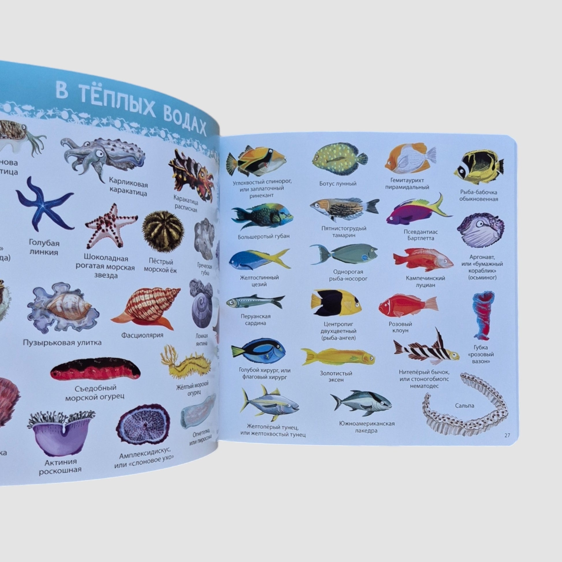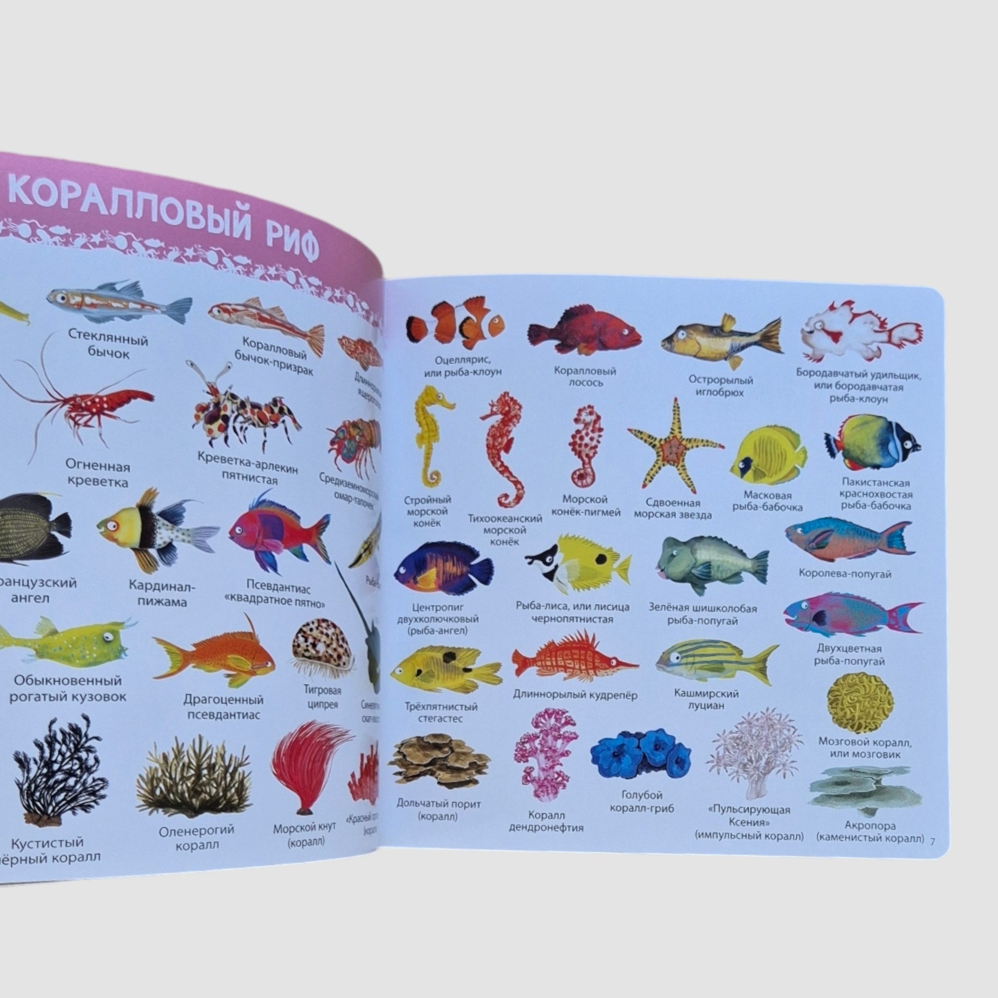 Иллюстрированный словарь из серии «1000 картинок» – находка для юных почемучек! Дельфины и киты, медузы и скаты, акулы и красочные тропические рыбки, коралловые рифы и морские водоросли, а также сокровища кораблекрушений и глубоководные аппараты. Количество и разнообразие изображений потрясает!