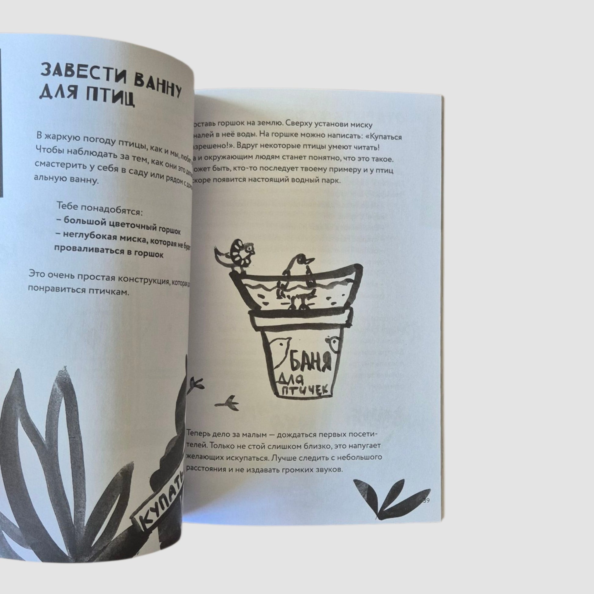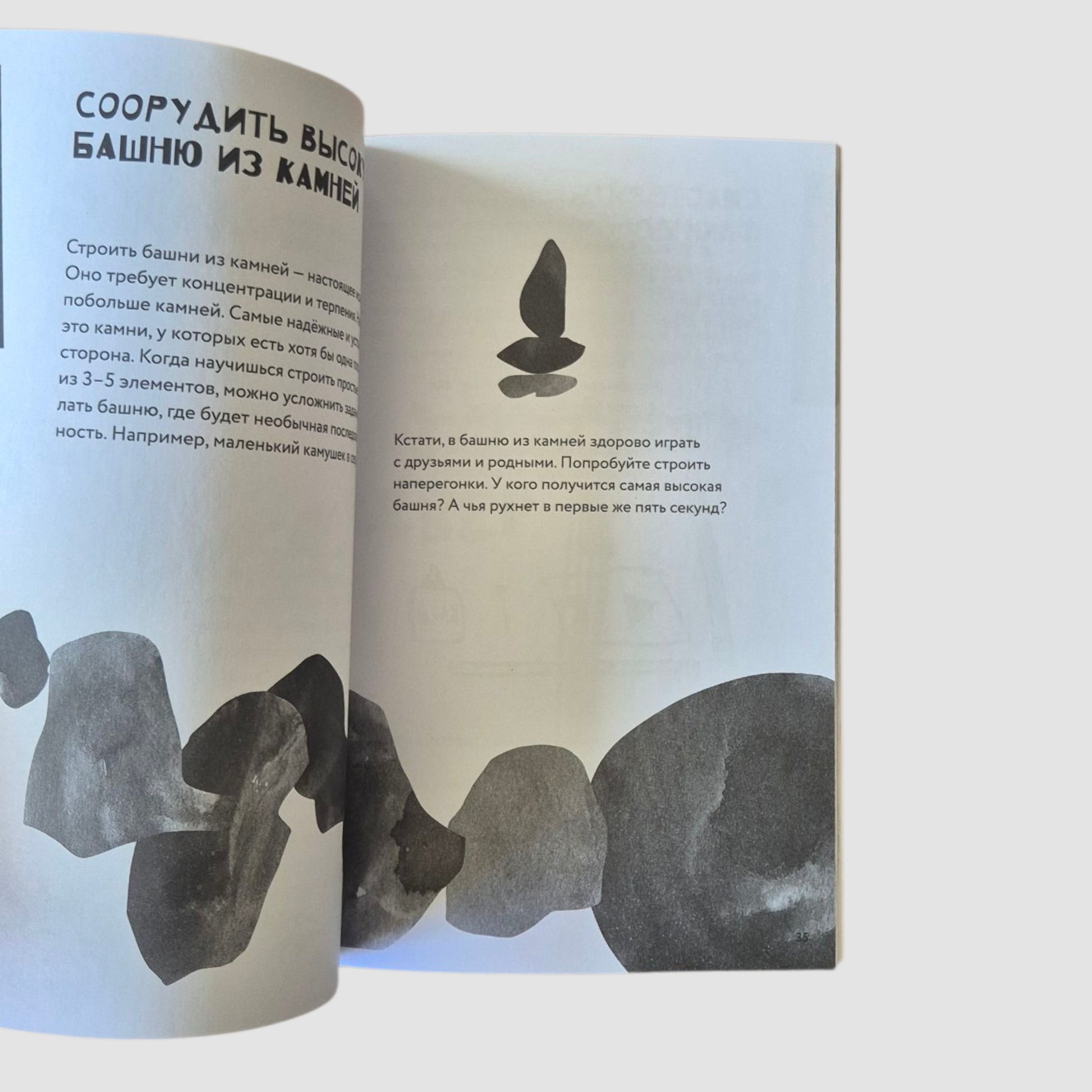 Книга поделена на несколько тематических глав, чтобы была возможно выбрать занятие по душе в зависимости от того, чего хочет ребенок: помузицировать, подружиться с ботаникой, изучать животных, заниматься творчеством или настоящим строительством (ну почти настоящим), стать дизайнером, собрать коллекцию. Для любого времени года найдется масса увлекательных идей, которые можно смело воплотить на природе!
