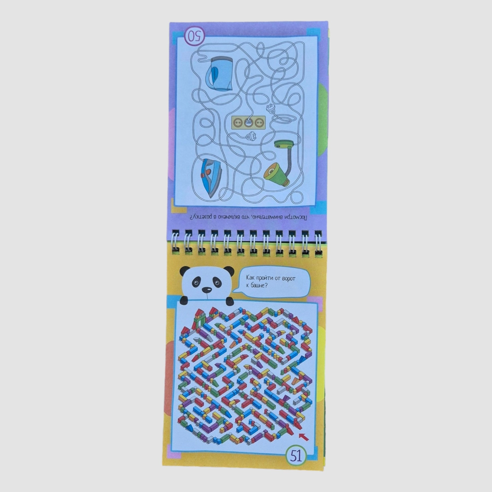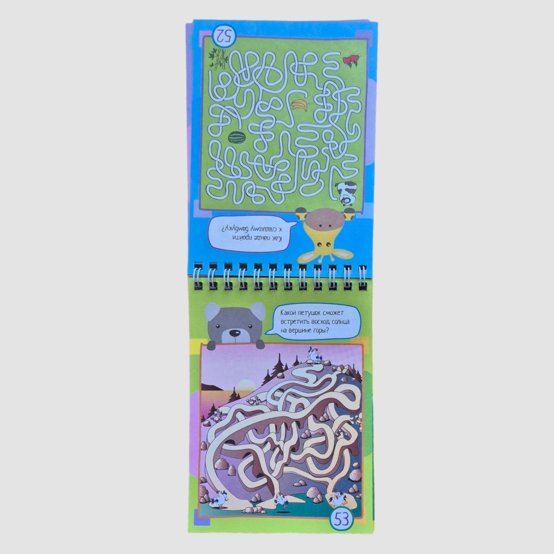 Открыв этот блокнот, ребёнок попадёт в волшебную страну мегалабиринтов. Вооружившись карандашом, он будет искать выходы из тупиков, распутывать переплетённые дорожки и одновременно развивать внимание, мелкую моторику и мышление. А в дороге или на отдыхе такой блокнот будет просто незаменим.